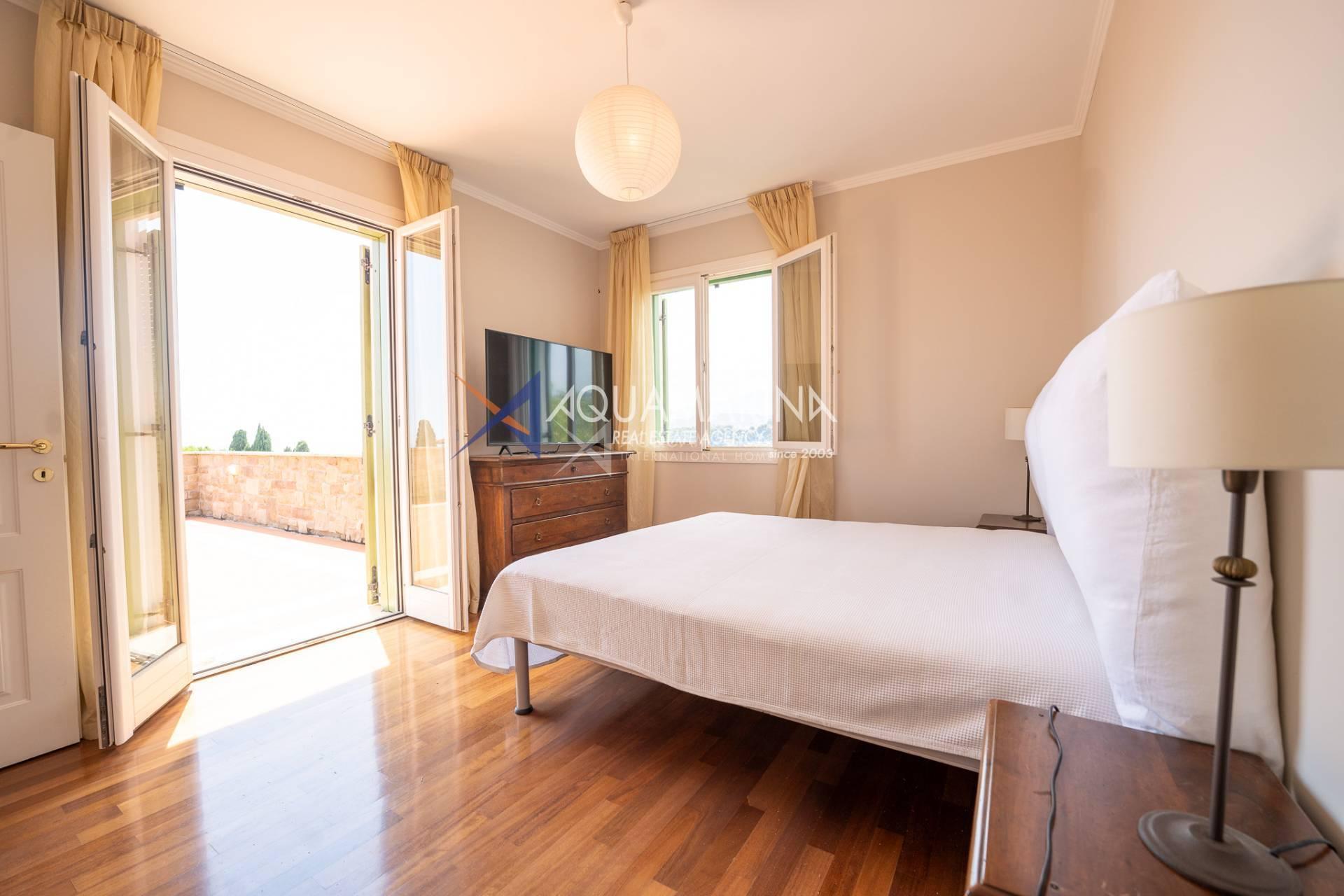 Das Anwesen besteht aus 2 Wohnungen mit separatem Eingang. Die erste Wohnung der Villa erstreckt sich über zwei Ebenen mit insgesamt ca. 200 Quadratmetern und verfügt über Gärten, Terrassen mit Meerblick und Whirlpool. Die zweite Wohnung erstreckt sich über eine Ebene von ca. 150 Quadratmetern mit einem Garten mit Säulengang und einem Swimmingpool.