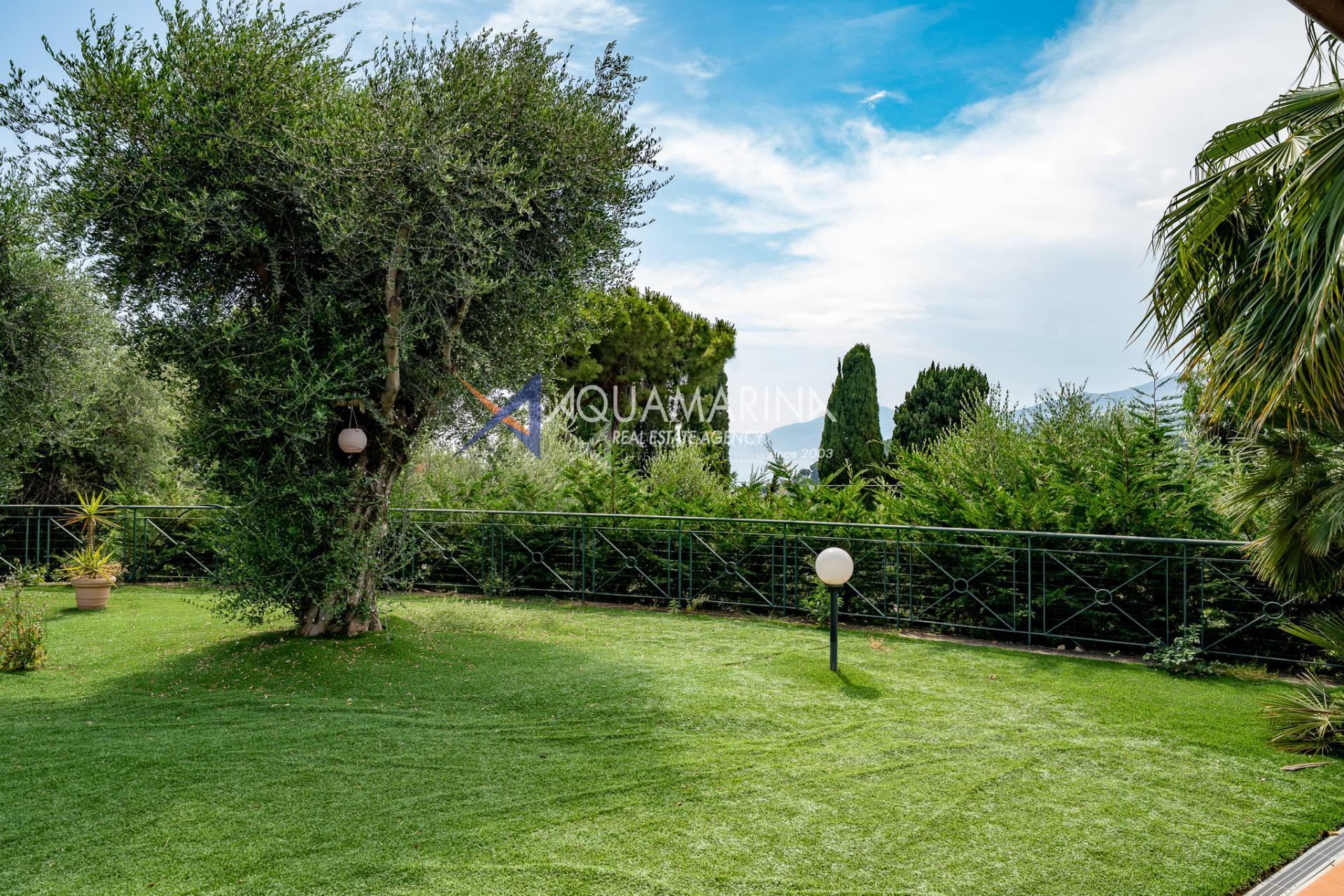 Dank ihrer Südausrichtung genießt die Villa den ganzen Tag über herrliches Tageslicht und bietet einen atemberaubenden Blick auf die umliegende Landschaft. Eine große Panoramaterrasse ermöglicht es Ihnen, das milde Klima der Riviera voll auszukosten, ideal für Momente der Entspannung im Freien.