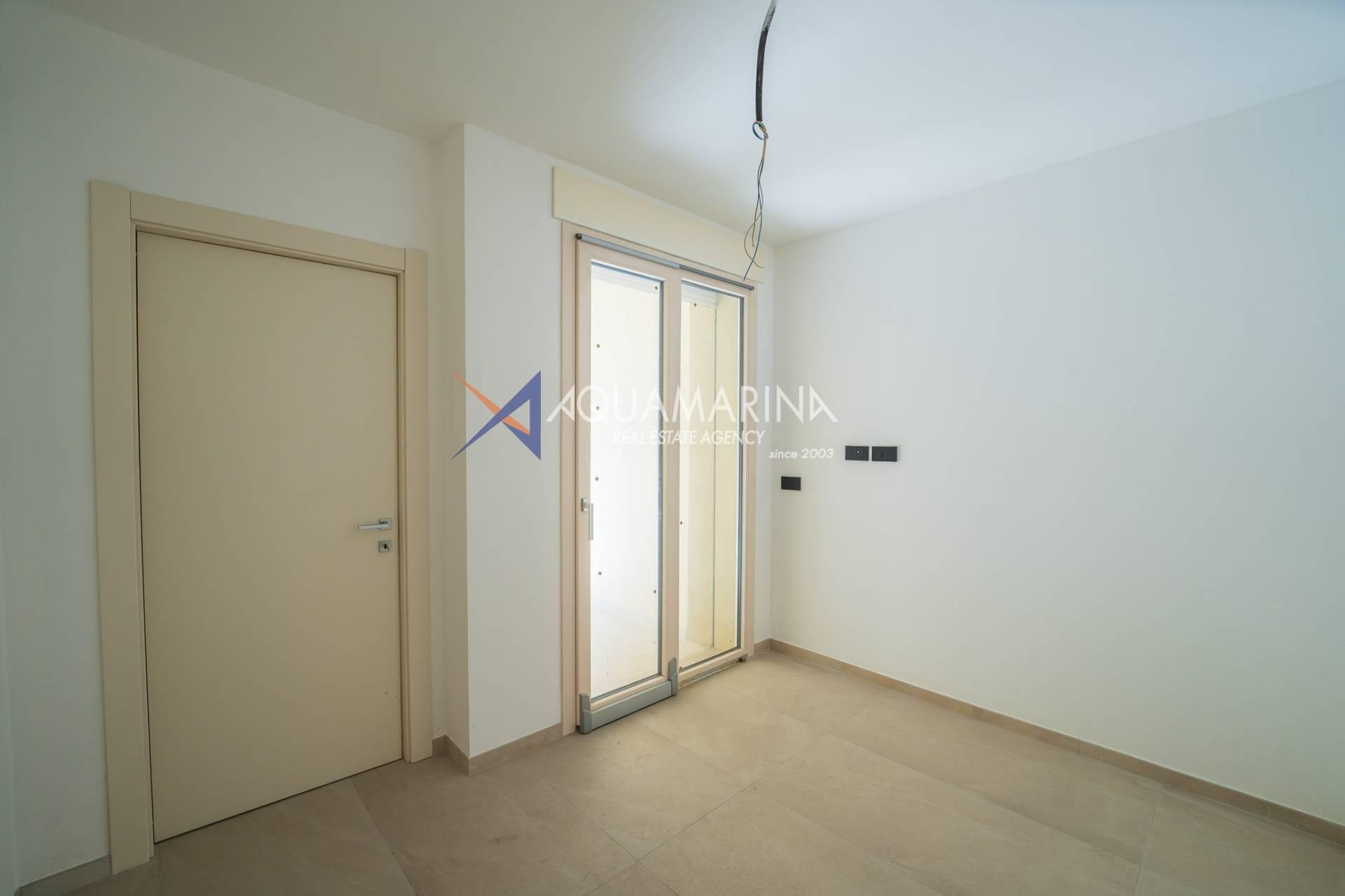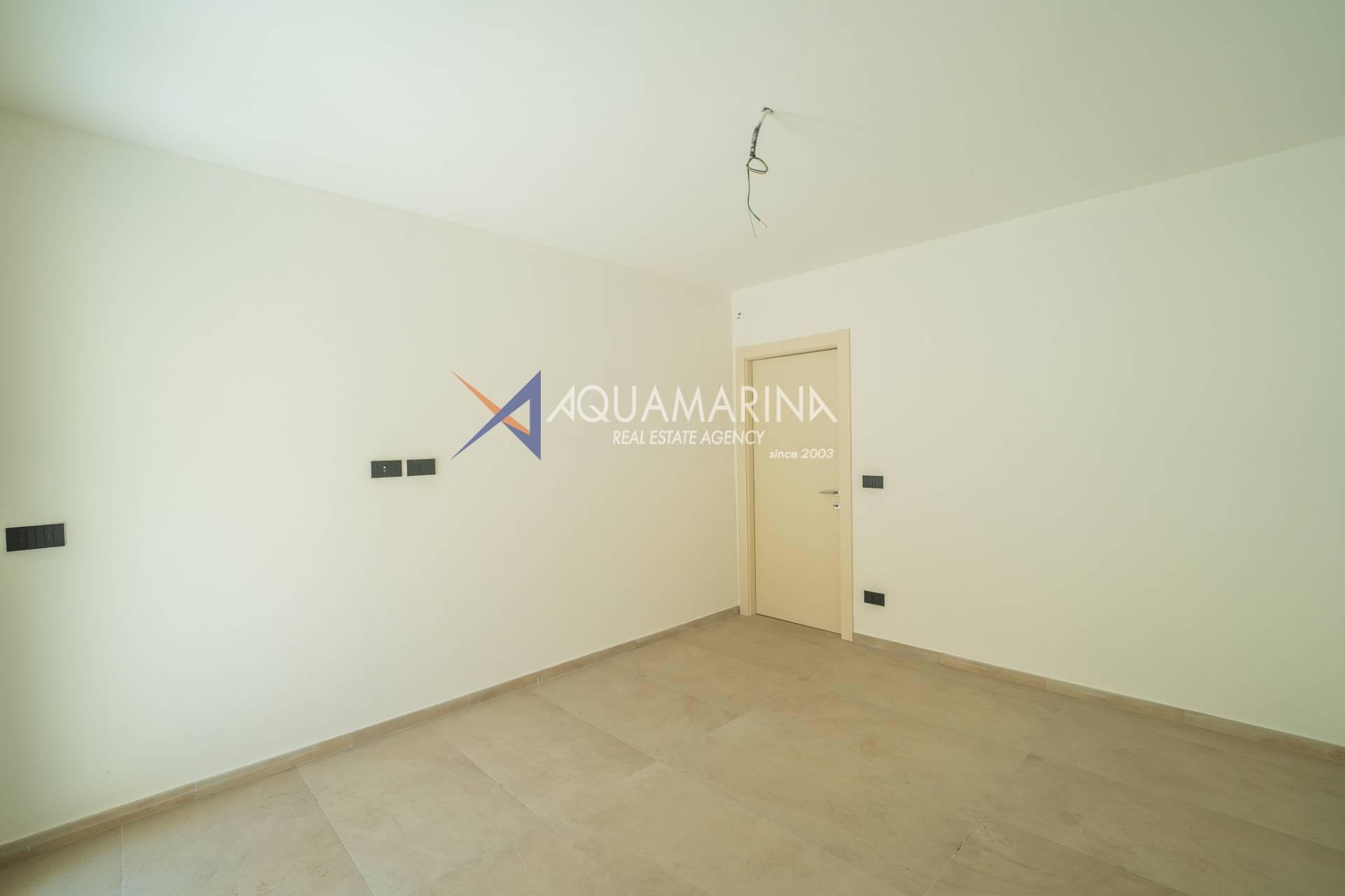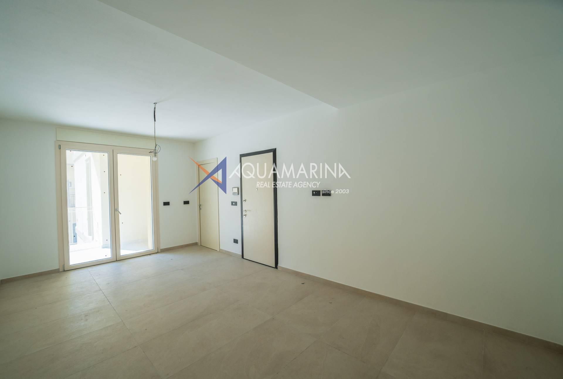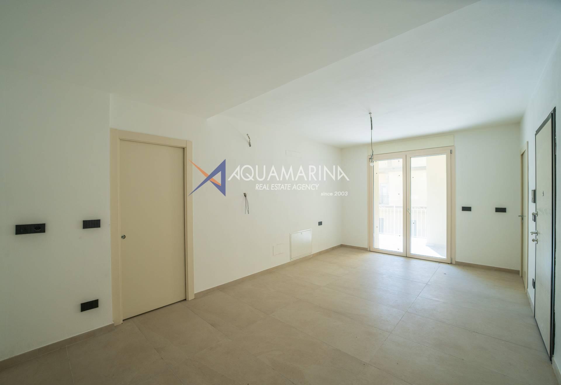 Wir bieten zum Verkauf eine große, neu gebaute Wohnung im zweiten Stock der modernen Wohnanlage „Perla di Mare" an, einer exklusiven Residenz nur wenige Schritte vom Meer entfernt. Das helle und gut aufgeteilte Anwesen besteht aus einem Eingang, der sich zu einem geräumigen Wohnbereich mit Kochnische öffnet, einem komfortablen Schlafzimmer mit Doppelbett, einem Schlafzimmer, das sich ideal für Kinder oder als Arbeitszimmer eignet, einem modernen Badezimmer und einer großen Terrasse, die einen perfekten Platz im Freien zum Entspannen bietet.