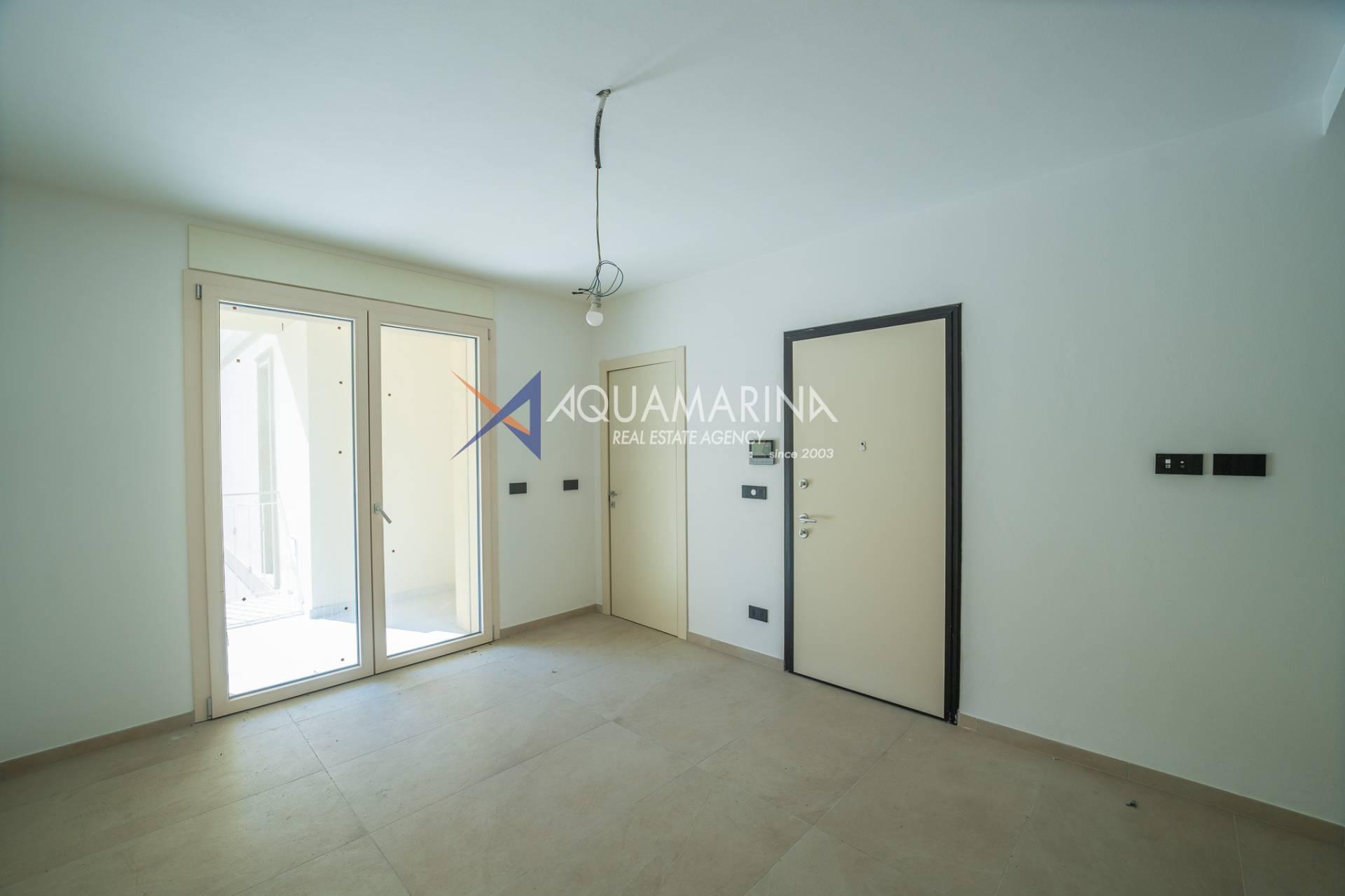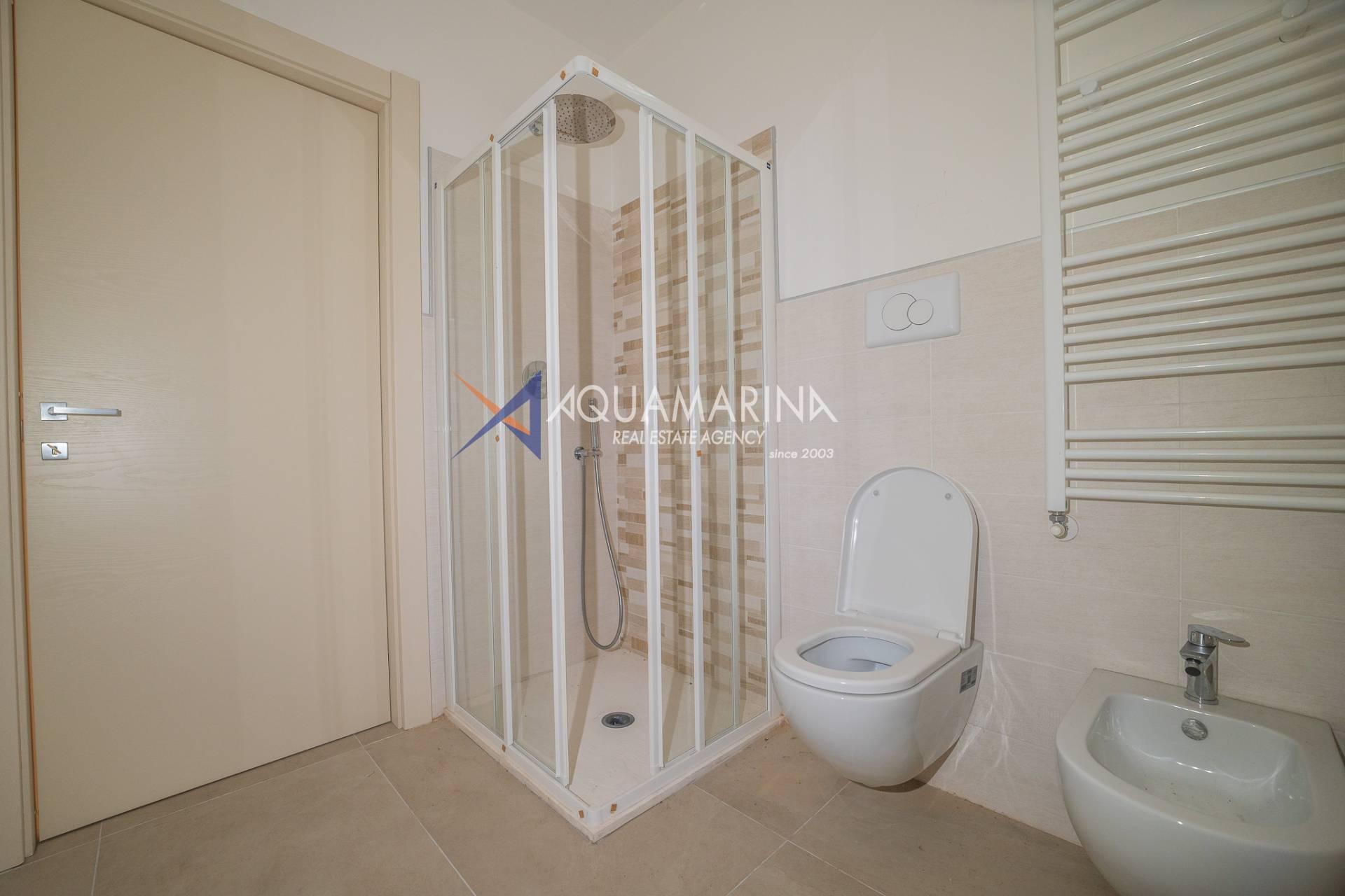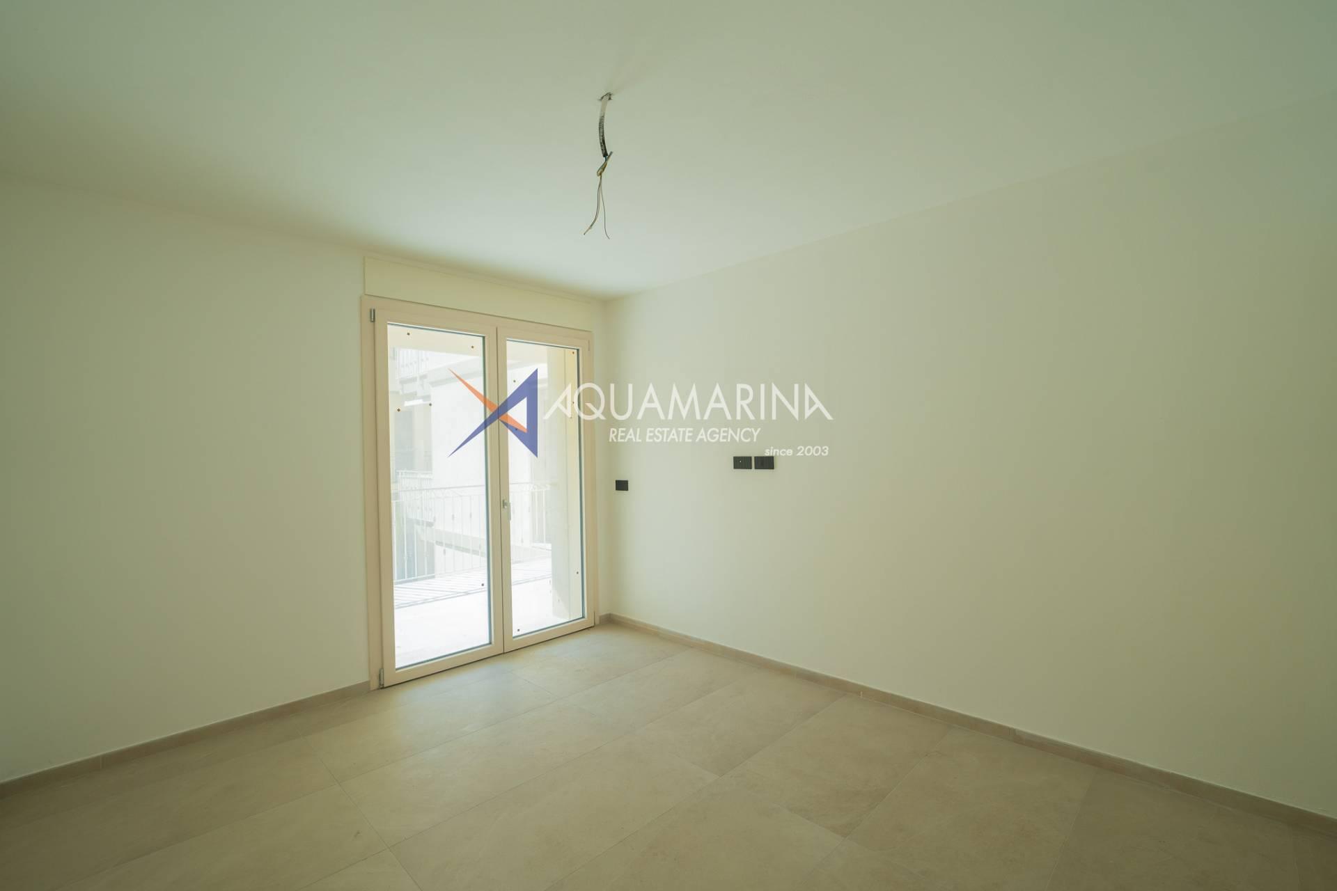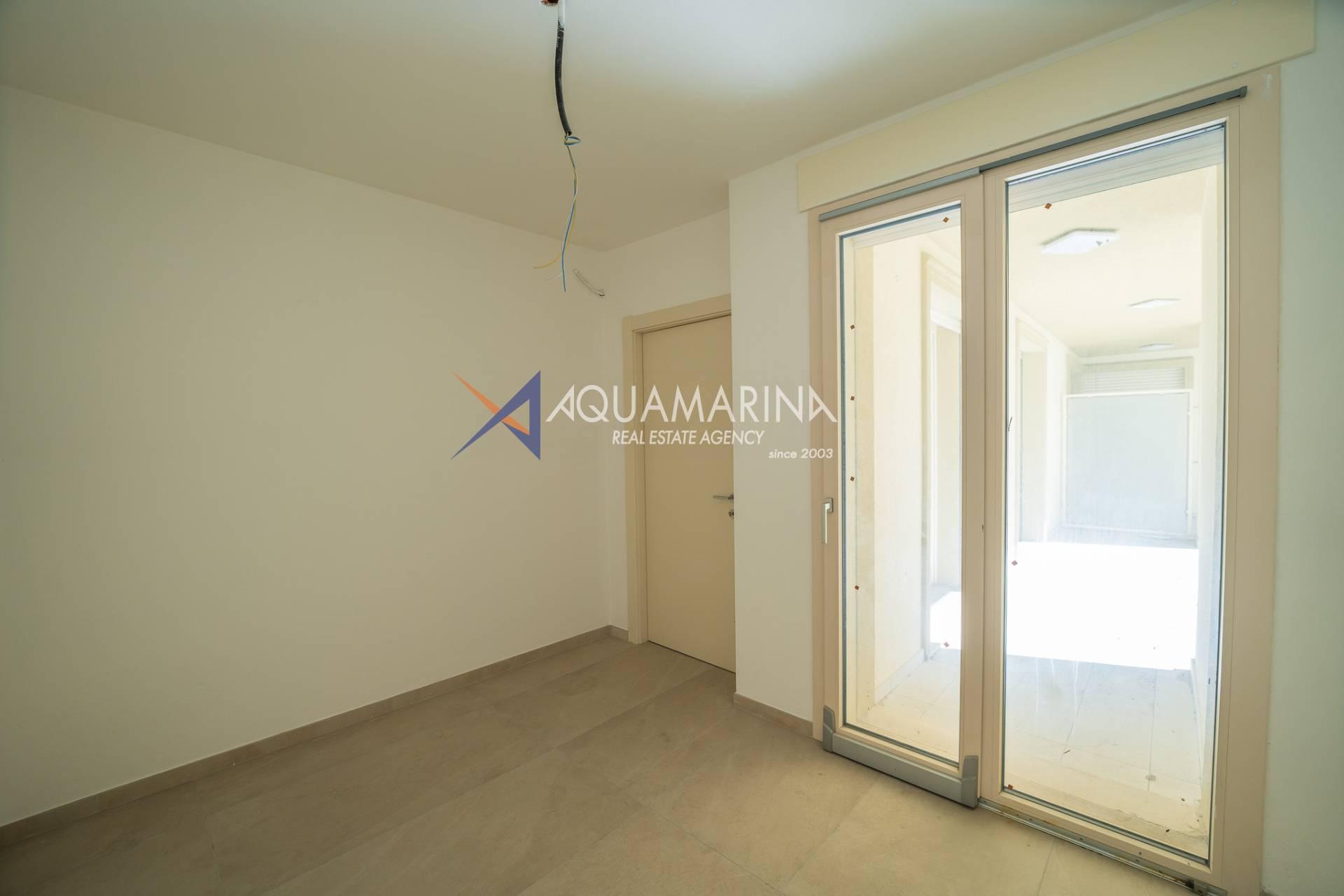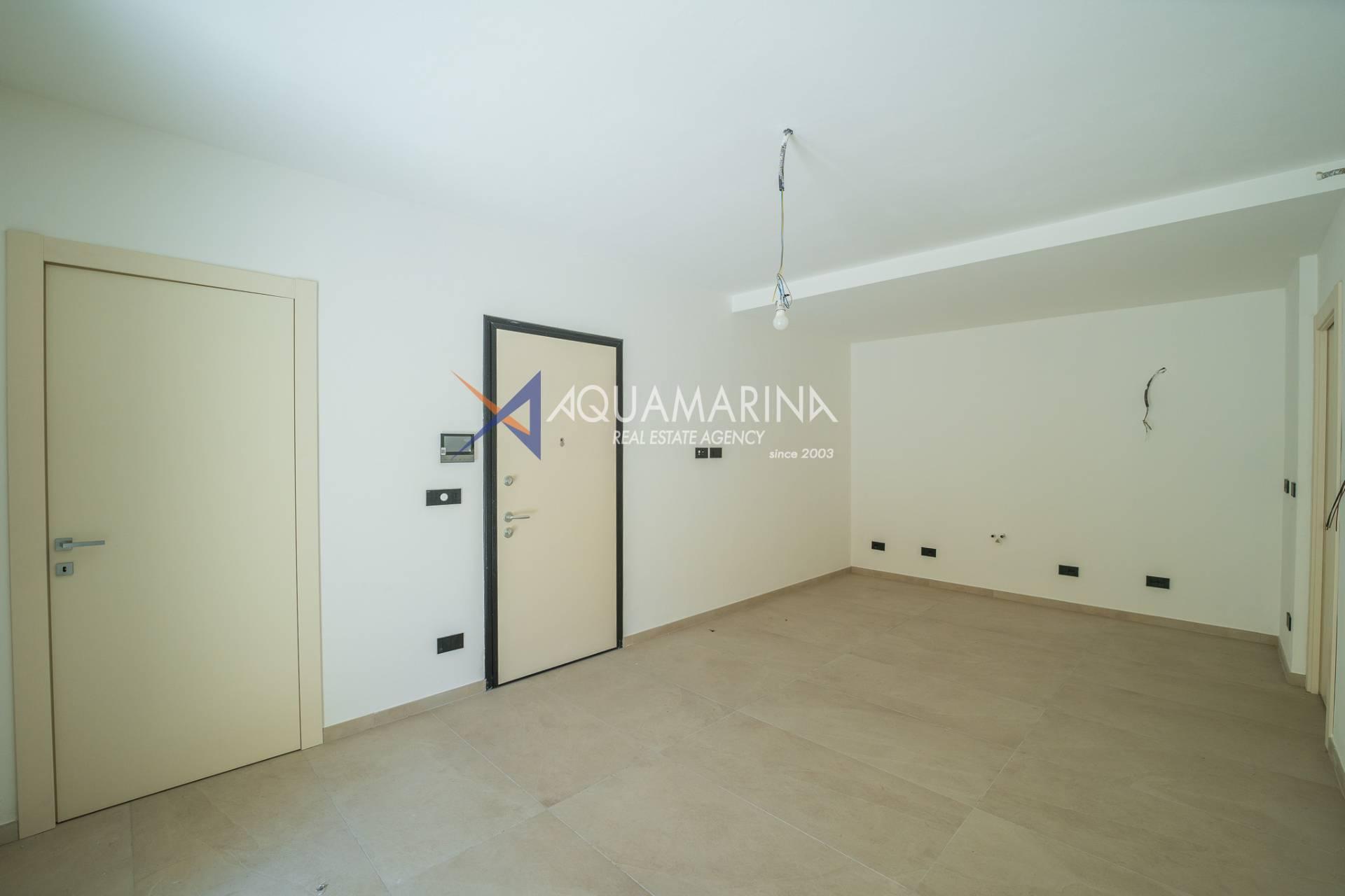 Wir bieten zum Verkauf eine große, neu gebaute Wohnung im zweiten Stock der modernen Wohnanlage „Perla di Mare" an, einer exklusiven Residenz nur wenige Schritte vom Meer entfernt. Das helle und gut aufgeteilte Anwesen besteht aus einem Eingang, der sich zu einem geräumigen Wohnbereich mit Kochnische öffnet, einem komfortablen Schlafzimmer mit Doppelbett, einem Schlafzimmer, das sich ideal für Kinder oder als Arbeitszimmer eignet, einem modernen Badezimmer und einer großen Terrasse, die einen perfekten Platz im Freien zum Entspannen bietet.