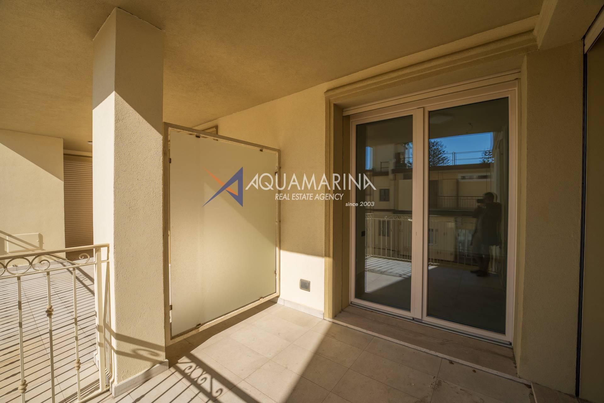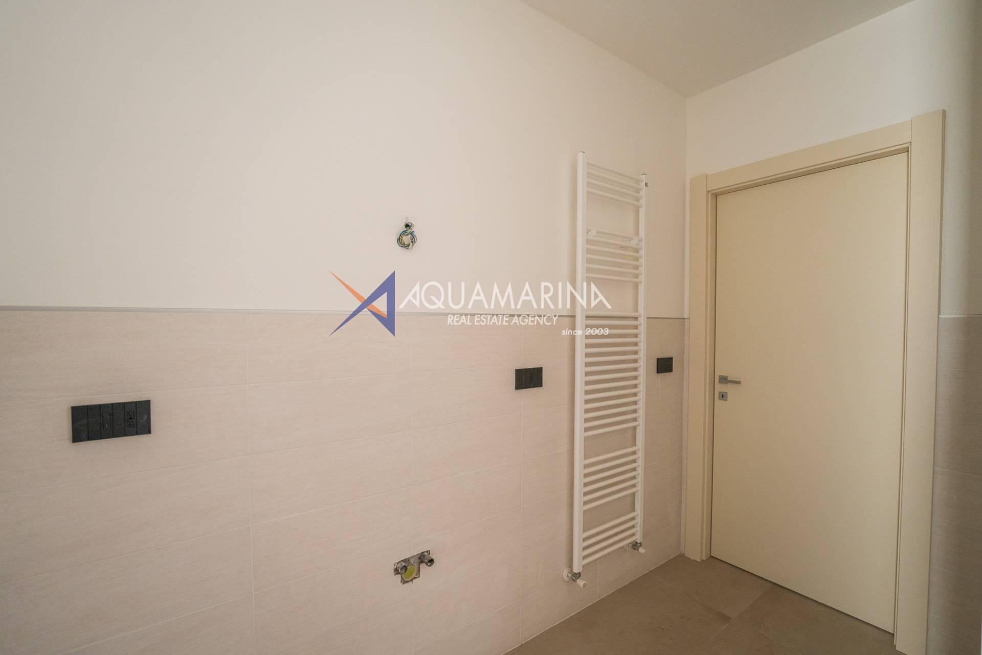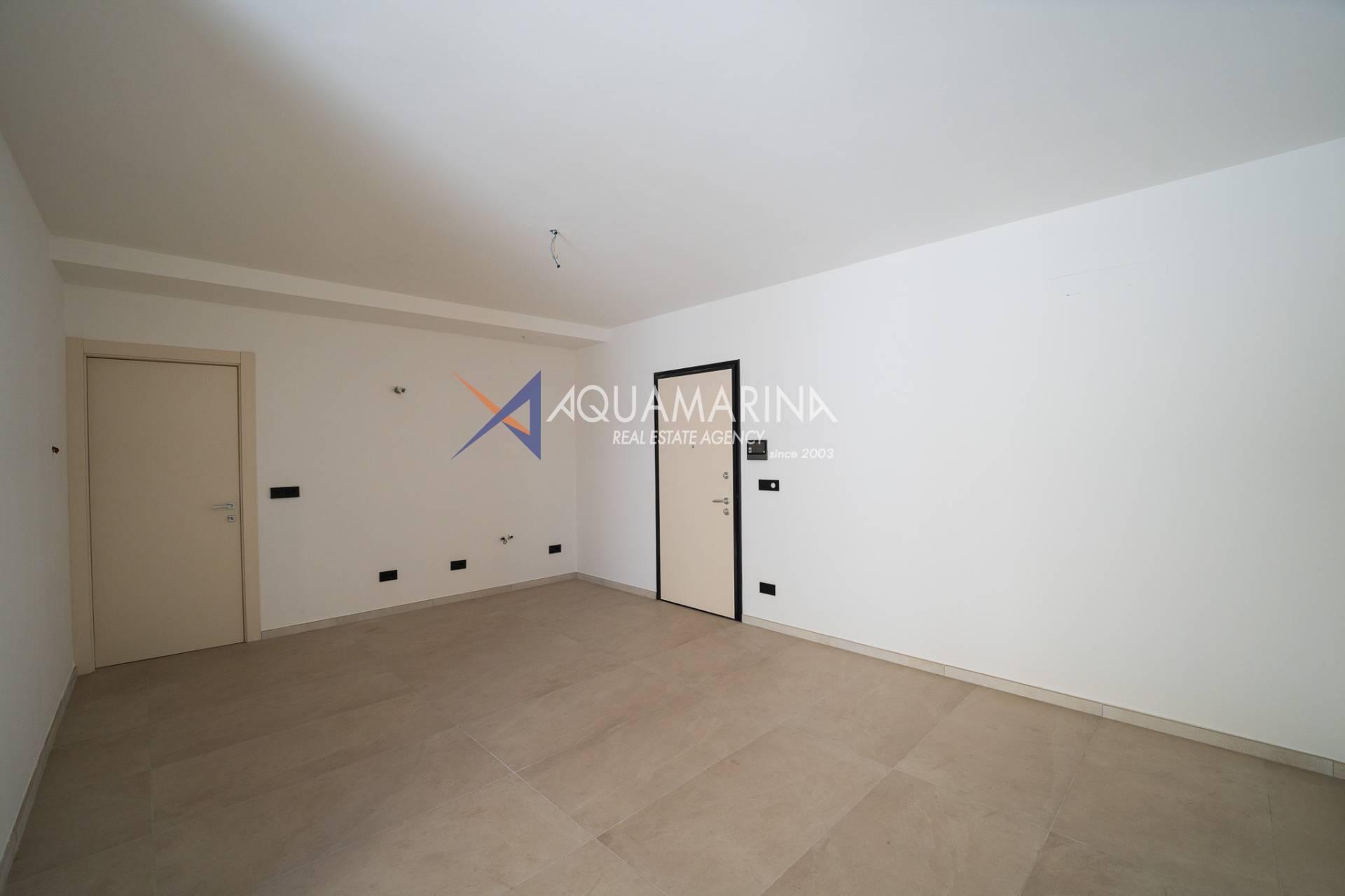 Wir bieten zum Verkauf eine große, neu gebaute Wohnung im dritten Stock der modernen Wohnanlage „Perla di Mare" an, einer exklusiven Residenz nur wenige Schritte vom Meer entfernt. Das helle und gut aufgeteilte Anwesen besteht aus einem Eingang, der sich zu einem geräumigen Wohnbereich mit Küchenzeile öffnet, einem komfortablen Doppelzimmer mit eigenem begehbaren Kleiderschrank, einem modernen Badezimmer und einer großen Terrasse, die einen perfekten Platz im Freien zum Entspannen bietet.