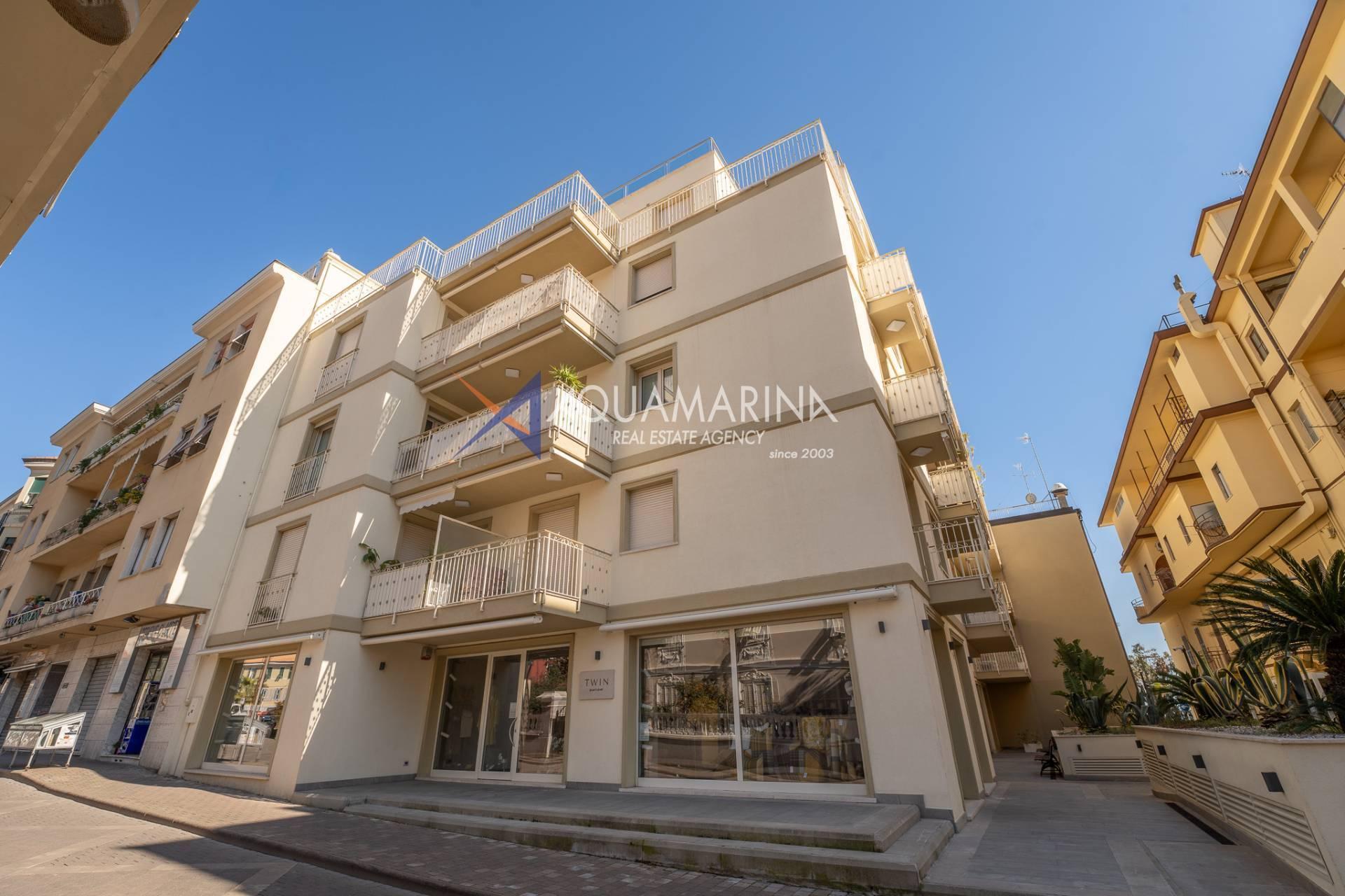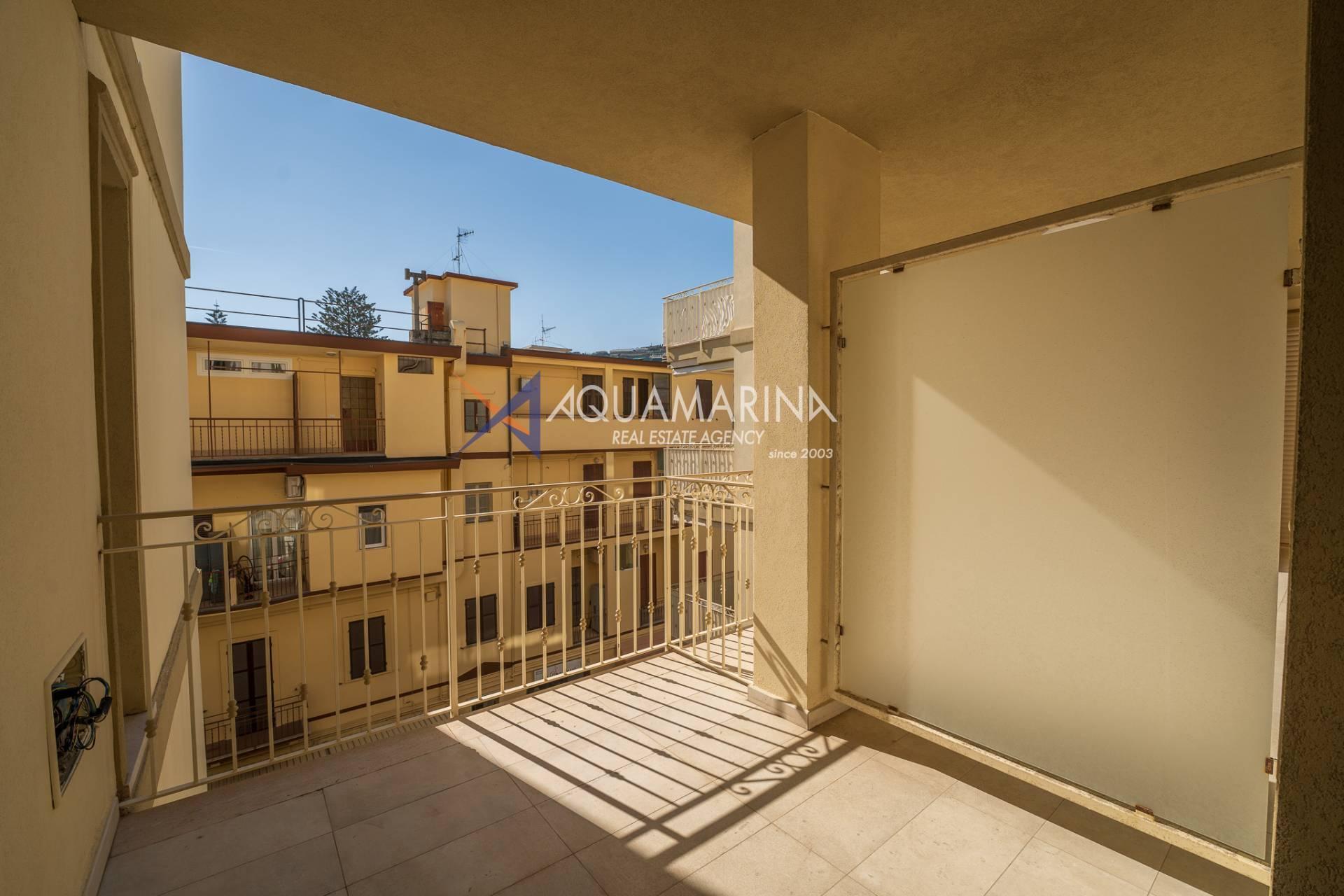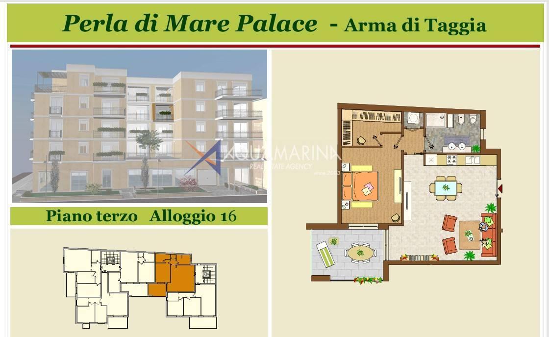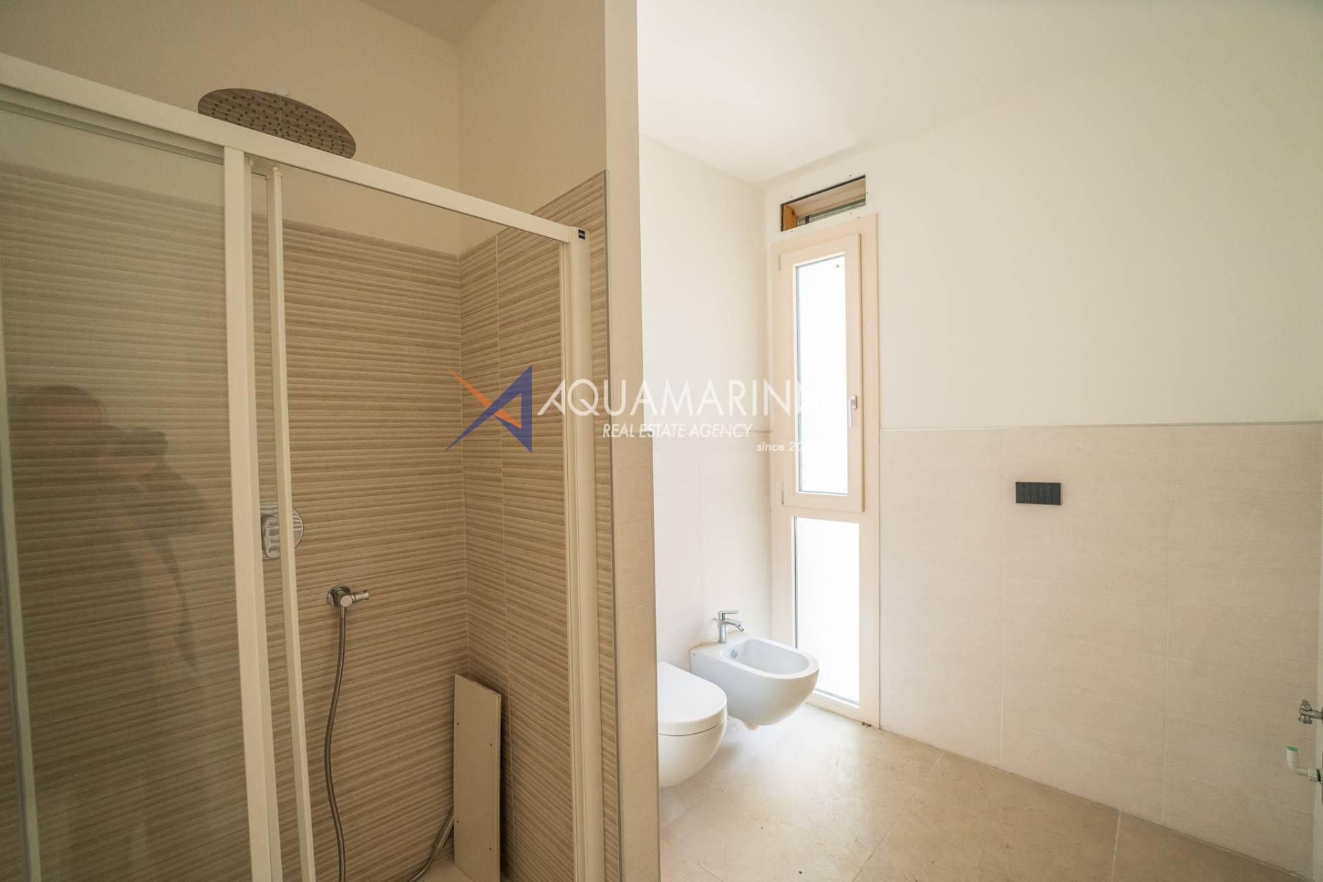 Wir bieten zum Verkauf eine große, neu gebaute Wohnung im dritten Stock der modernen Wohnanlage „Perla di Mare" an, einer exklusiven Residenz nur wenige Schritte vom Meer entfernt. Das helle und gut aufgeteilte Anwesen besteht aus einem Eingang, der sich zu einem geräumigen Wohnbereich mit Küchenzeile öffnet, einem komfortablen Doppelzimmer mit eigenem begehbaren Kleiderschrank, einem modernen Badezimmer und einer großen Terrasse, die einen perfekten Platz im Freien zum Entspannen bietet.