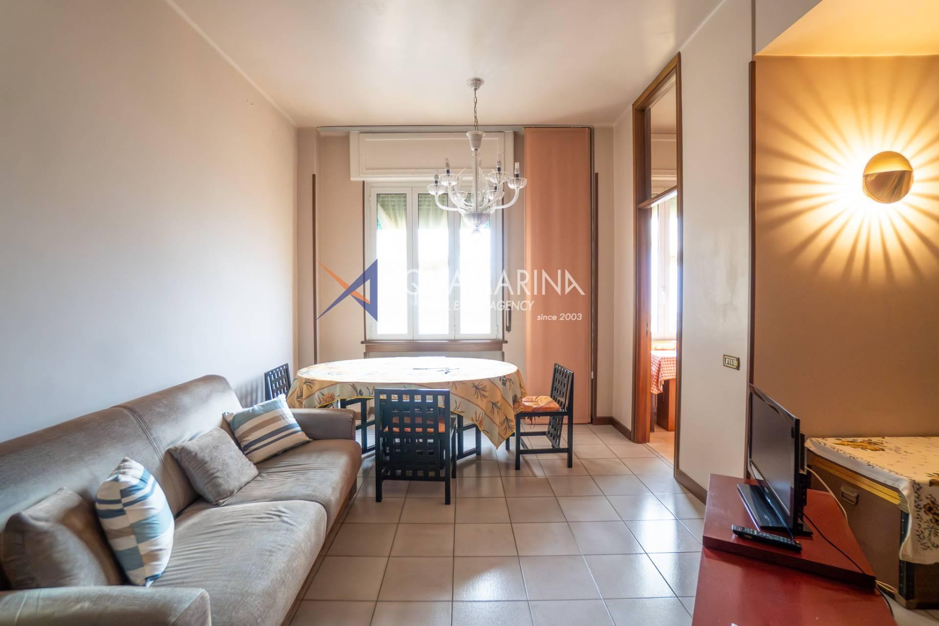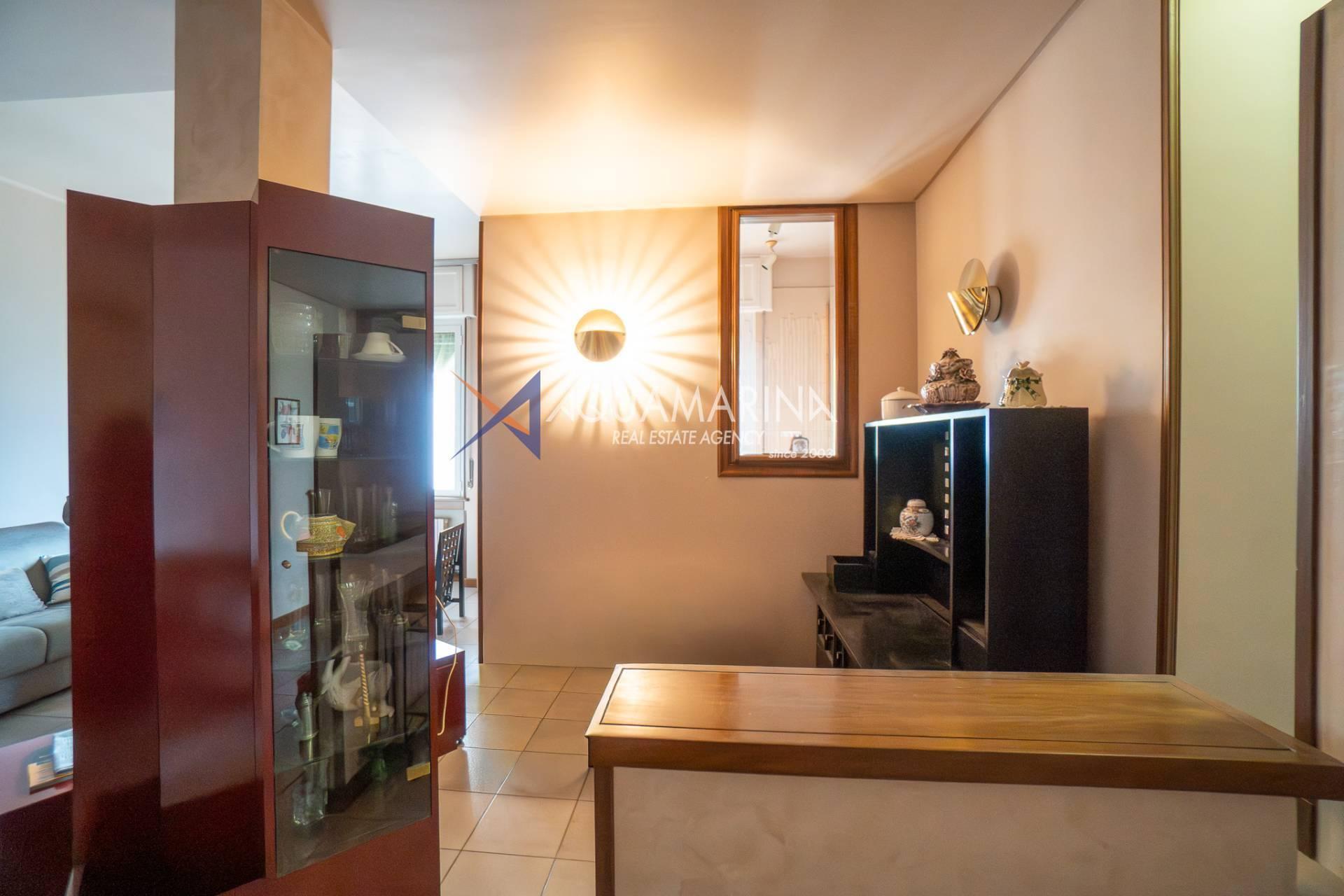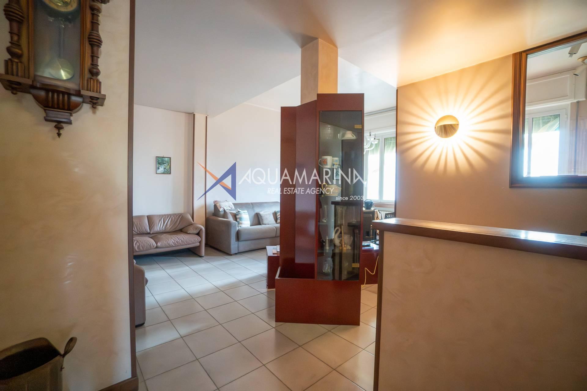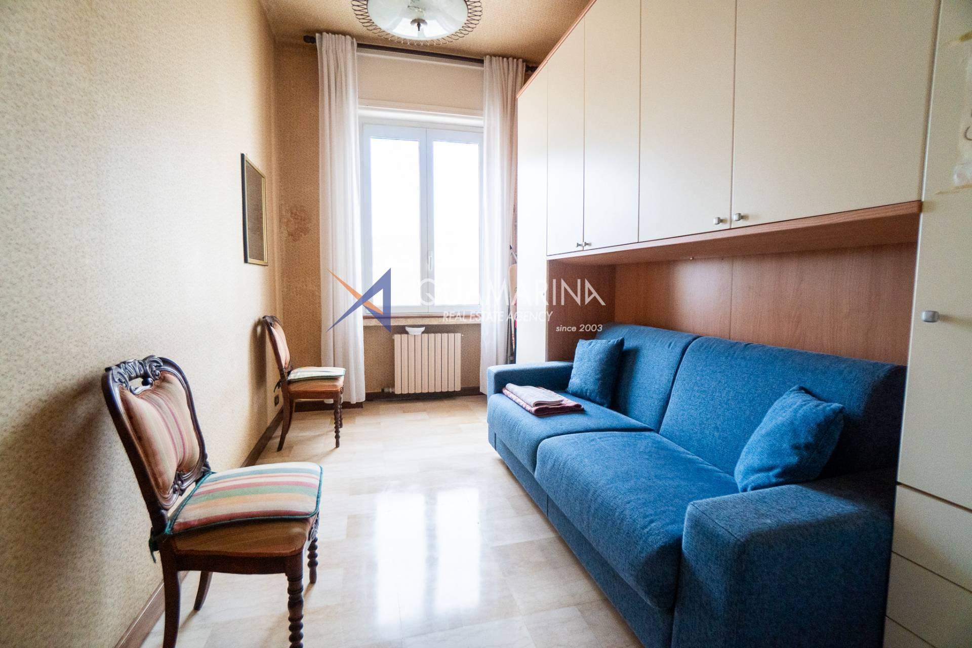 einem geräumigen Eingangsbereich,einem großen Wohnbereich mit Wohn- und Esszone, beide mit offenem Meerblick,einer halb bewohnbaren Küche,einem großzügigen Hauptschlafzimmer mit Meerblick,einem zweiten Schlafzimmer,einem Tageslichtbad.Dank der großzügigen Wohnfläche und der zentralen Lage eignet sich diese Wohnung ideal sowohl als Hauptwohnsitz für alle, die viel Platz und die Annehmlichkeiten des Stadtzentrums suchen, als auch als Ferienwohnung oder Kapitalanlage aufgrund der Nähe zum Meer und zu den wichtigsten Sehenswürdigkeiten.