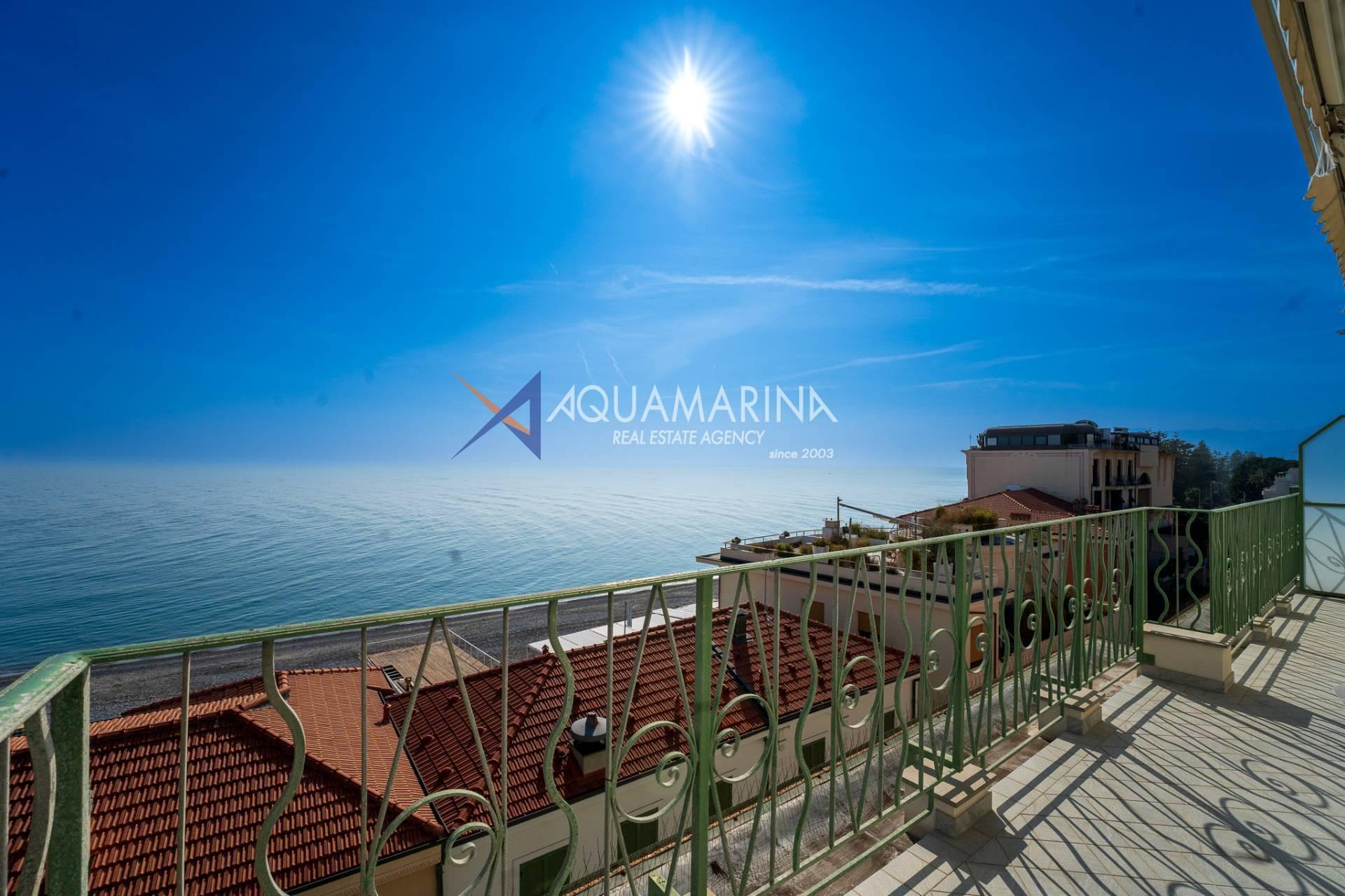Bordighera, große Wohnung mit Meerblick zu verkaufen, im Dachgeschoss eines Gebäudes in perfektem Zustand, nur wenige Meter von der Strandpromenade und wenige Schritte von der Kirche Sant'Ampelio entfernt.
