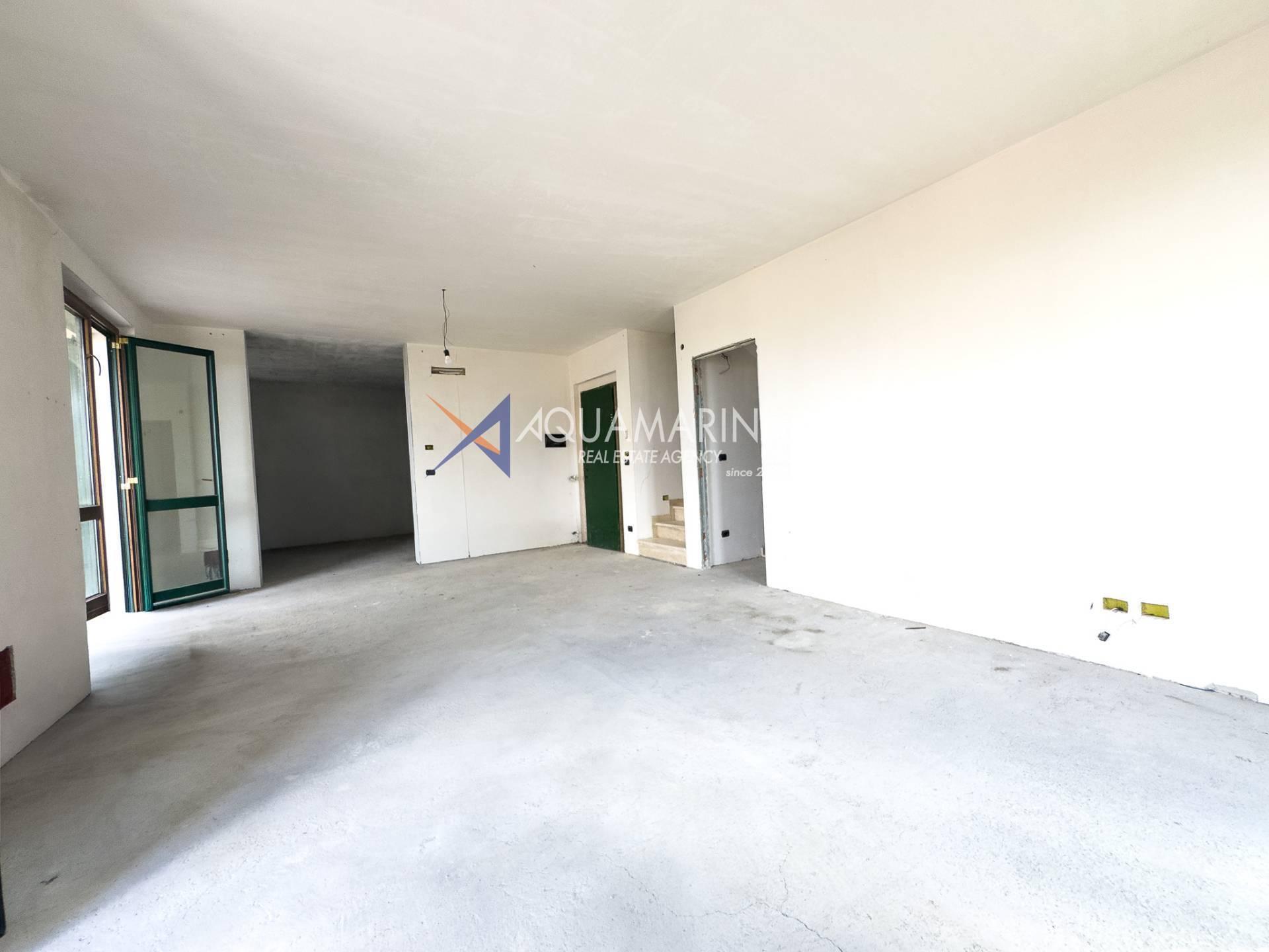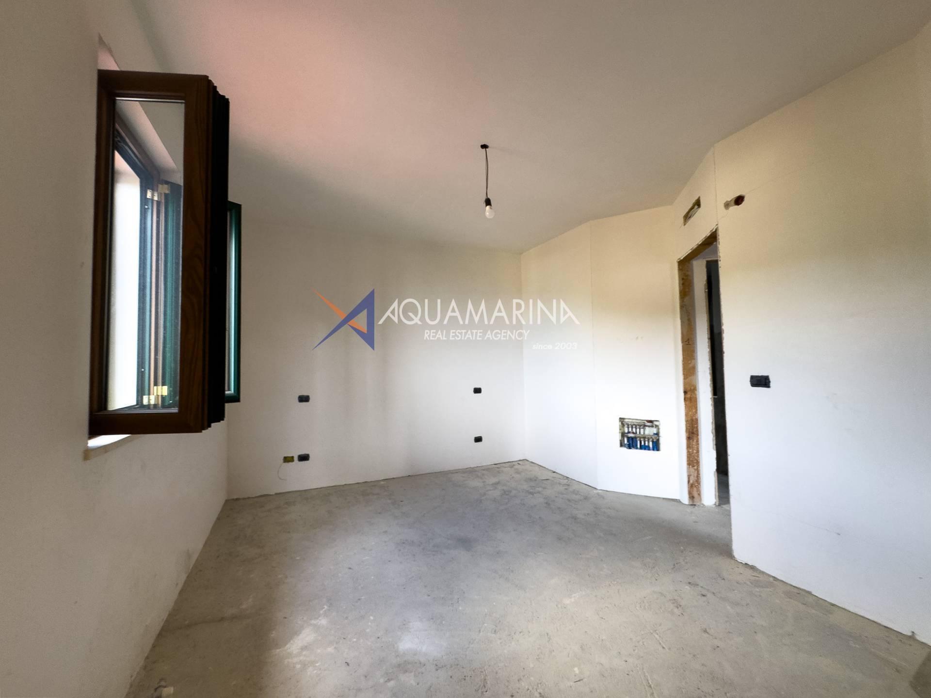 Erdgeschoss: Eingangshalle, Wohnzimmer mit Meerblick und Zugang zur Terrasse, Küche, Bad, Abstellraum, Veranda von ca. 20 m2;