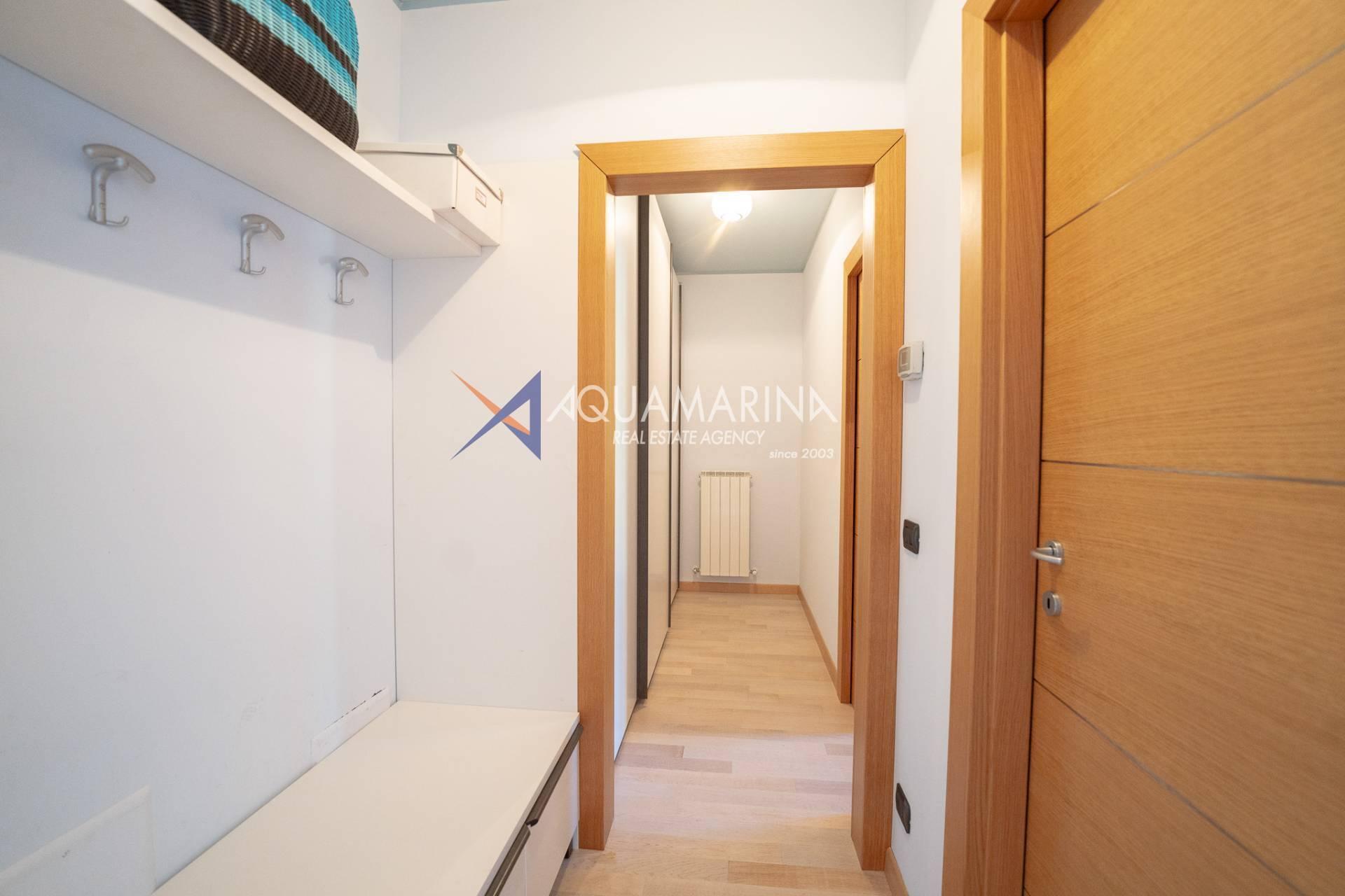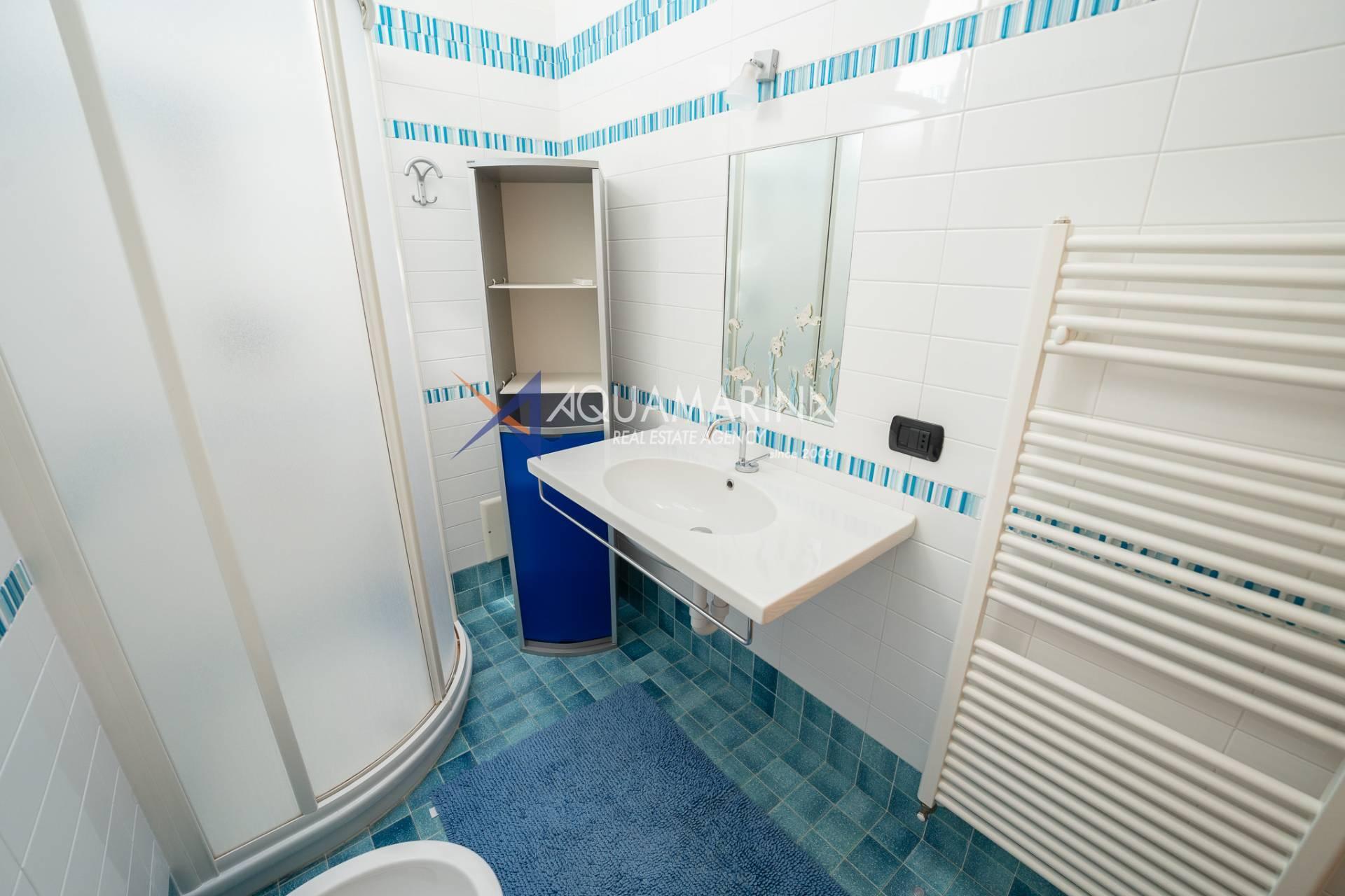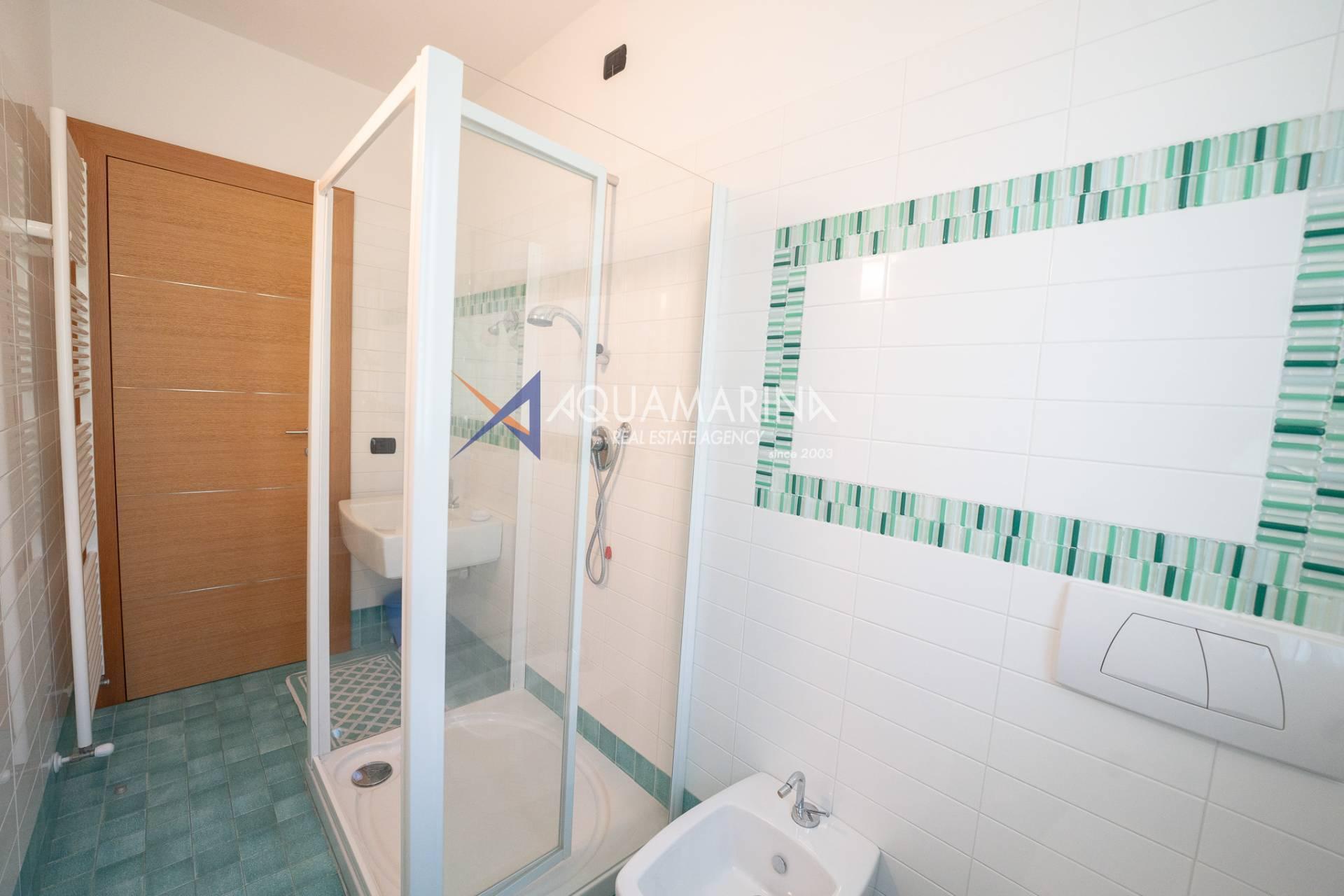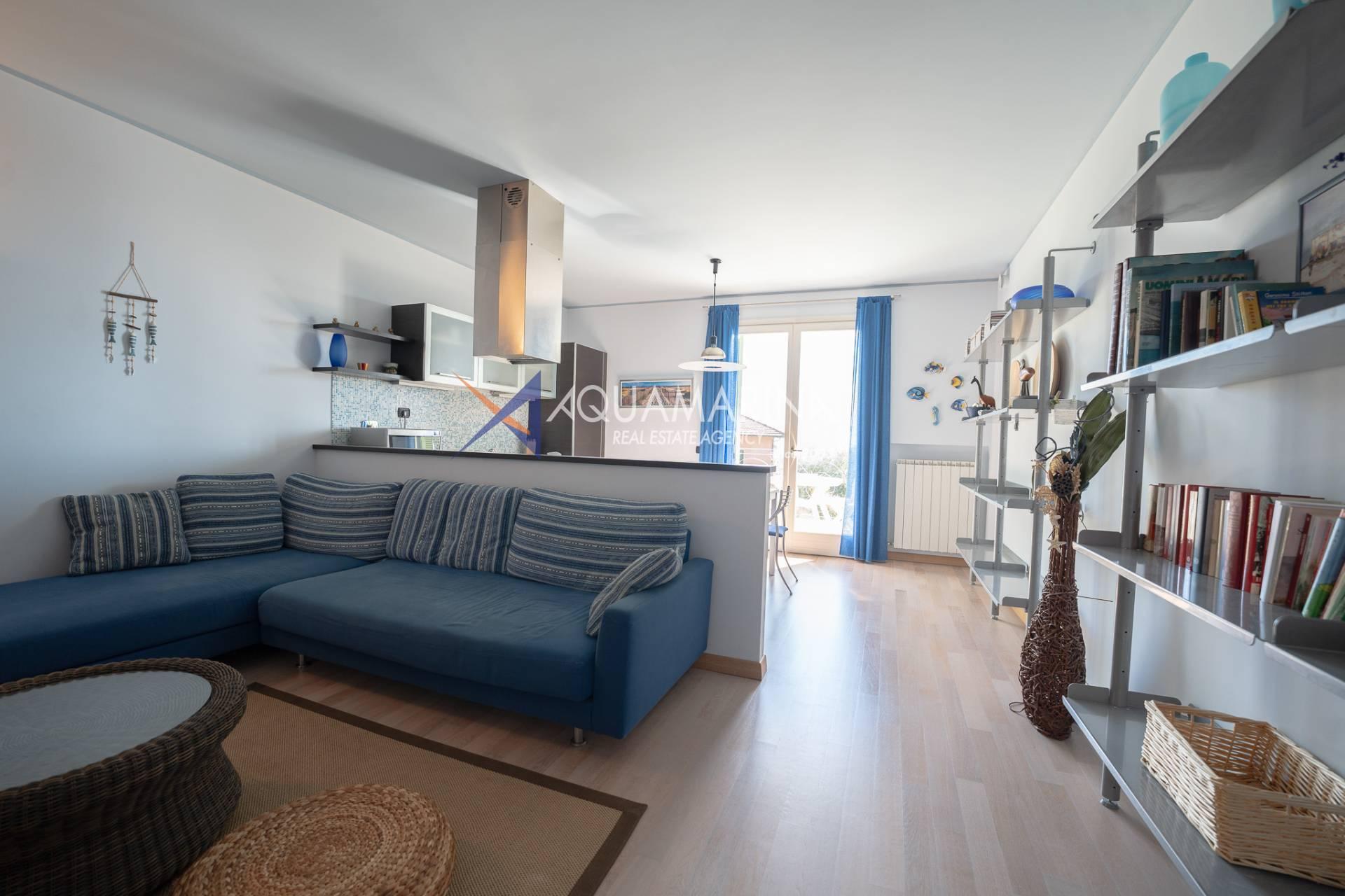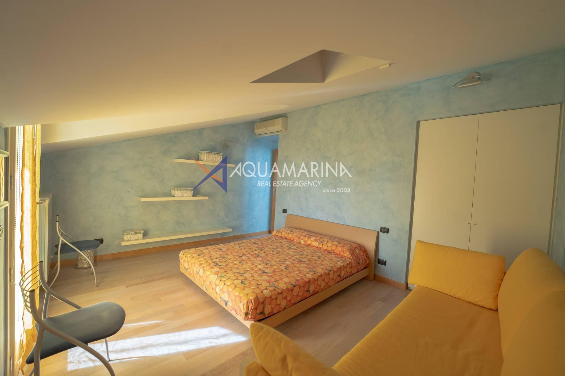 Die Wohnung ist ca. 110 Quadratmeter groß und erstreckt sich über zwei Ebenen, bestehend aus: Eingang mit angenehmem und einladendem Wohnzimmer, offener Küche, bewohnbarer Terrasse von ca. sieben Quadratmetern mit herrlichem Blick auf das Meer und die Stadt, Flur, Flur mit die Einbauschränke und das erste Schlafzimmer, Badezimmer mit Fenster und Dusche.