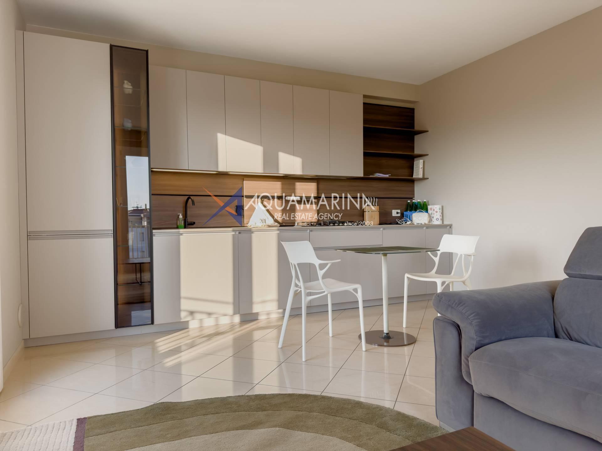 Es besteht aus einer Eingangshalle, einem Wohnzimmer mit Küchenzeile, zwei Terrassen mit herrlichem Blick auf das Grün der Palmenstadt, zwei Schlafzimmern mit Balkon und einem Badezimmer. Eine Klimaanlage und eine unabhängige Heizung sind vorhanden.