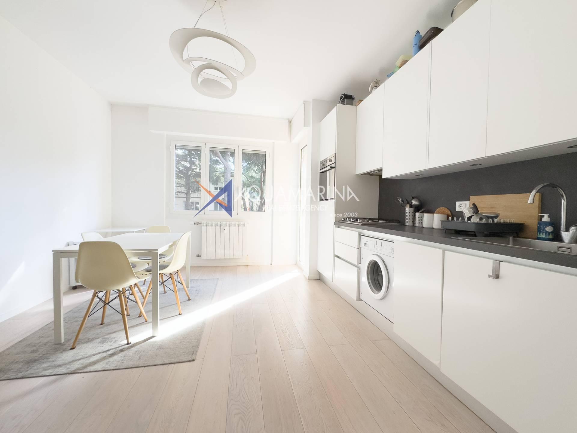 Die Wohnung befindet sich in einer sehr gepflegten eleganten Wohnanlage, mitten im Grünen in sehr ruhiger Lage nur wenige Schritte vom Meer, dem Zentrum und den Stränden entfernt.