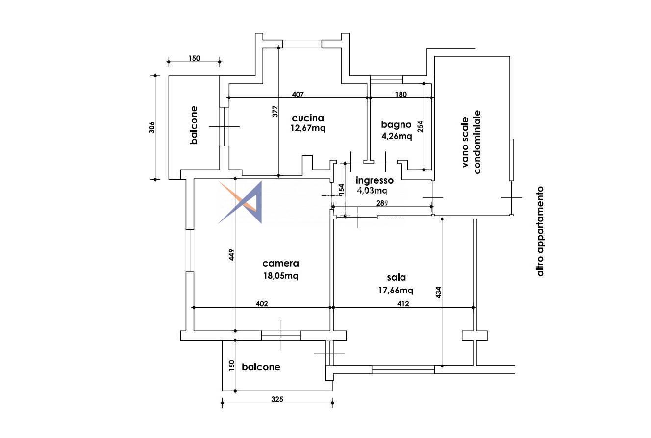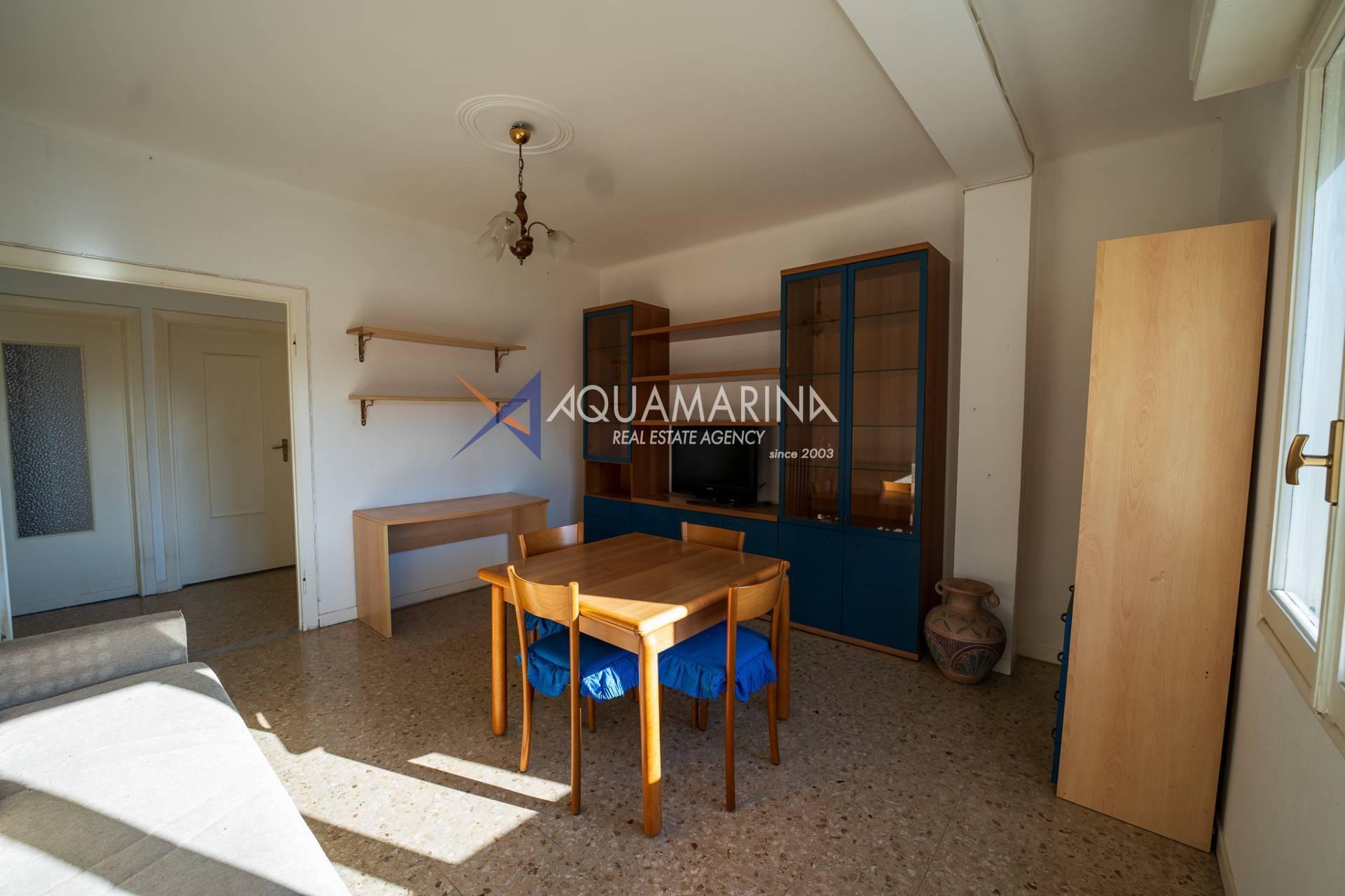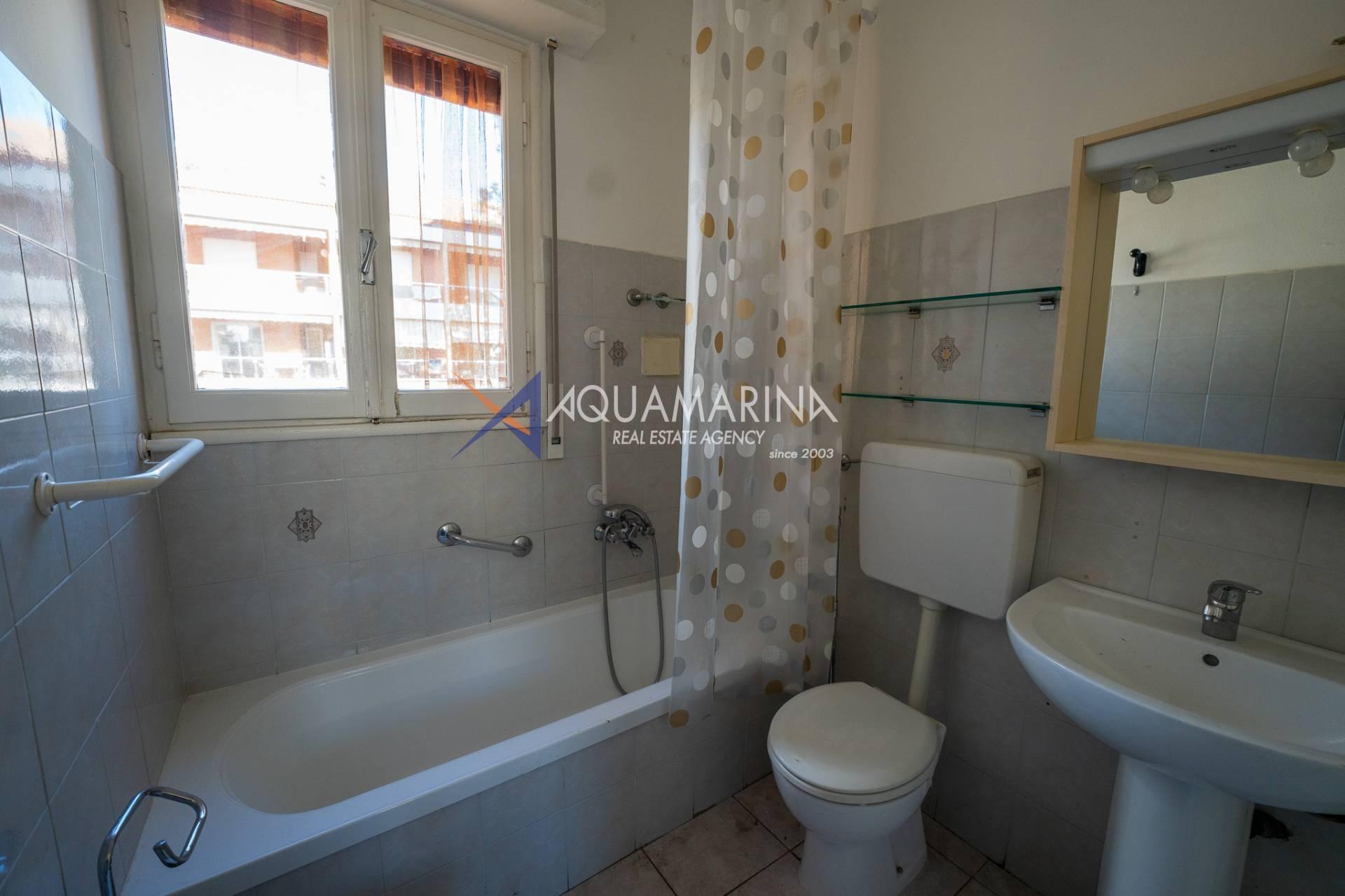 Die Wohnung besteht aus einem Eingangsbereich, einem Wohnzimmer, einer Wohnküche, einem Schlafzimmer, einem Badezimmer und zwei Balkonen. Eine eventuelle Renovierung der Innenräume würde dank der großzügigen Raumaufteilung die Schaffung eines zweiten Schlafzimmers ermöglichen.