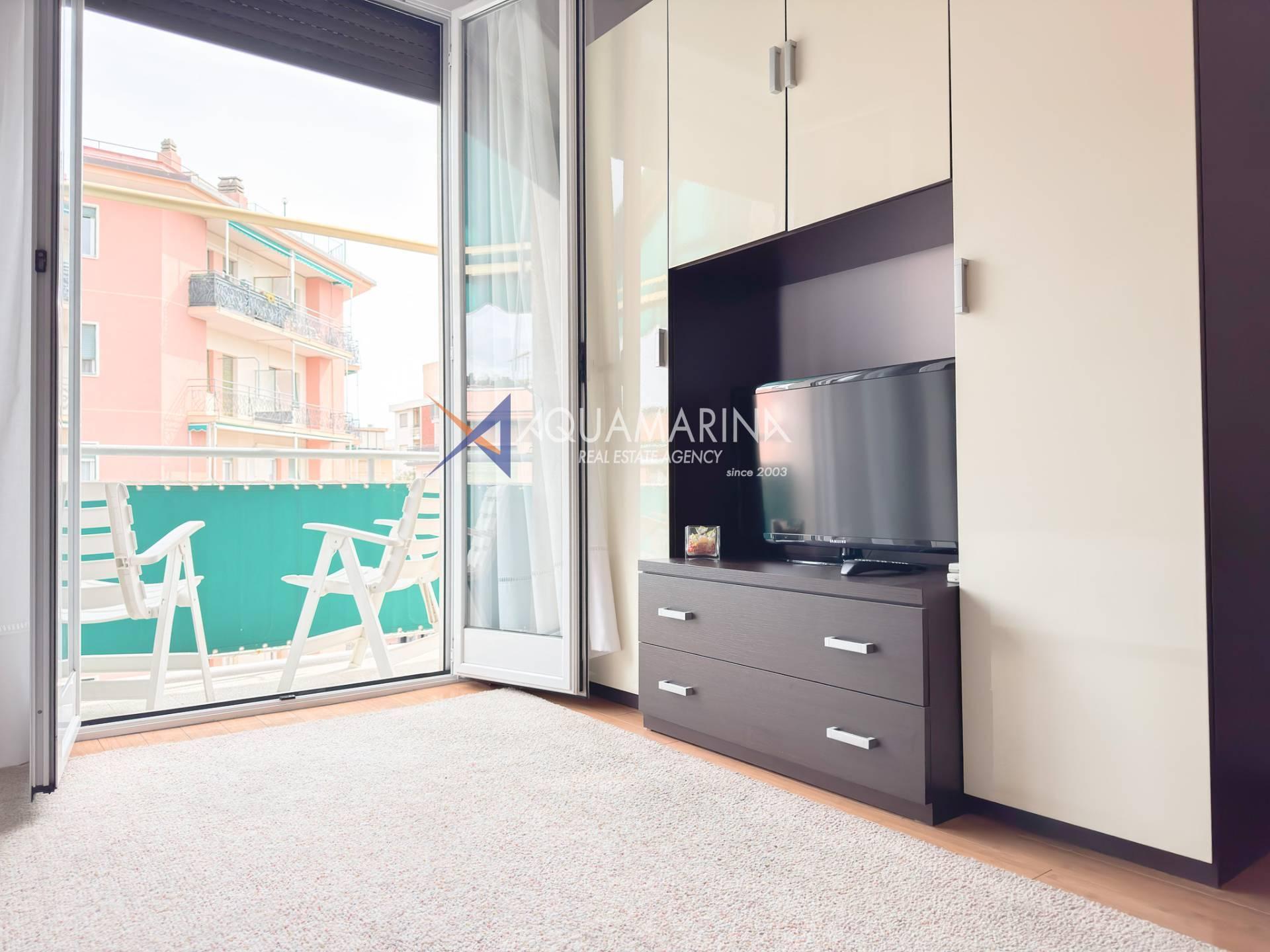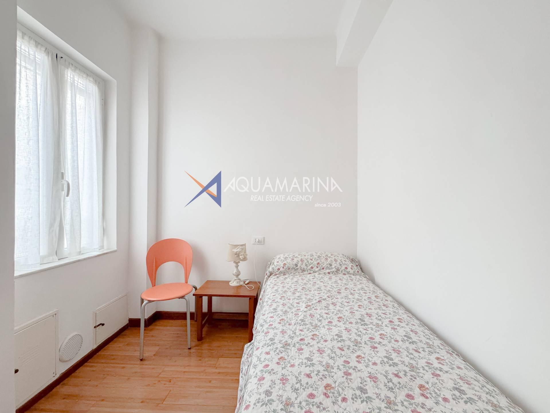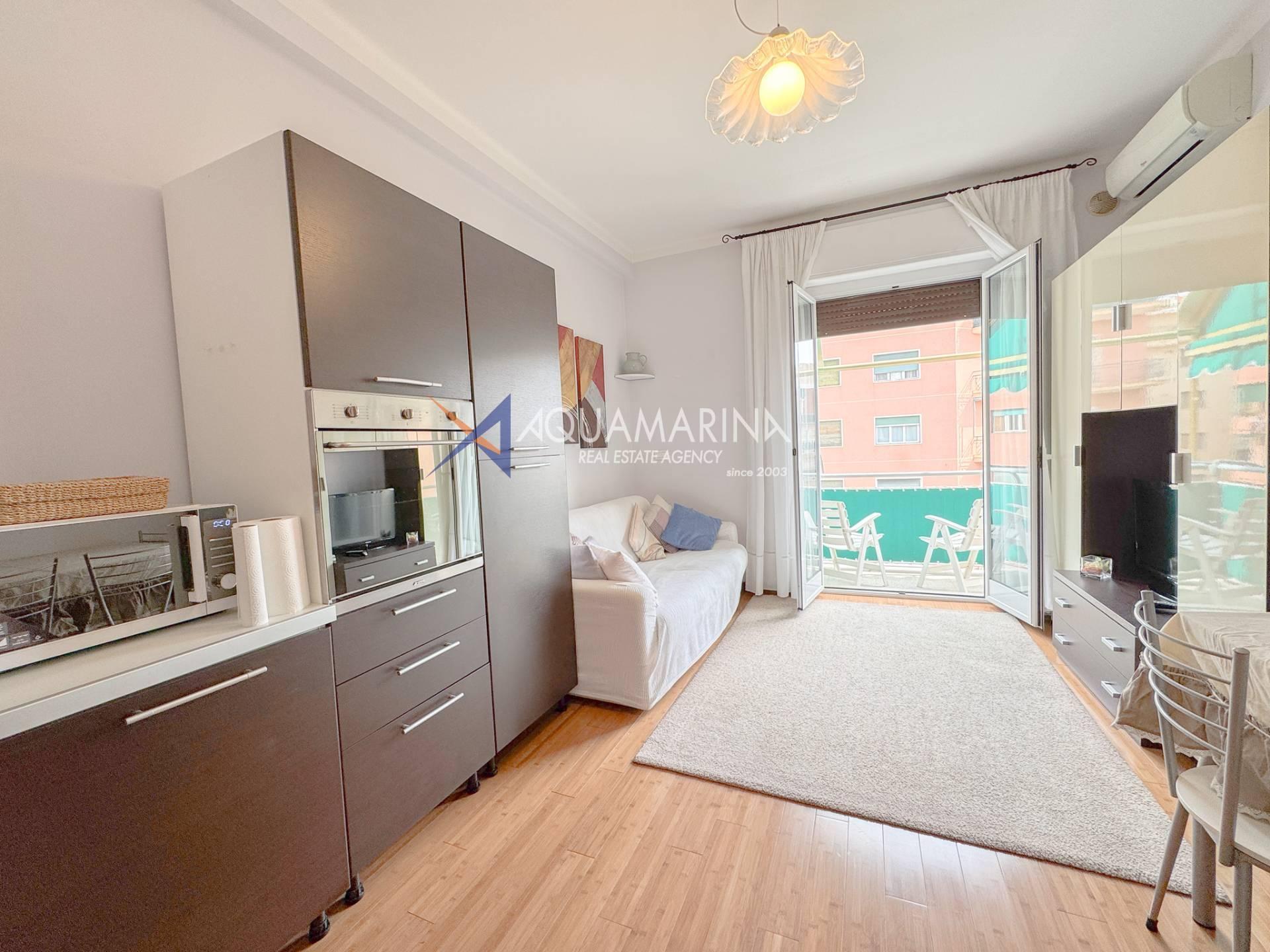 Nur wenige Schritte vom Meer entfernt, in einer ruhigen Gegend an der Via Cesare Balbo und in unmittelbarer Nähe zu allen Annehmlichkeiten, bieten wir eine 59 m² große Wohnung im dritten Stock eines Gebäudes mit Aufzug zur Miete an. Die Wohnung besteht aus einem Eingangsbereich, einem Wohnzimmer mit Schlafcouch und offener Küche, einem Schlafzimmer mit Doppelbett und begehbarem Kleiderschrank, einem Badezimmer mit Dusche und einer Terrasse. Ein Kellerraum steht ebenfalls zur Verfügung.
