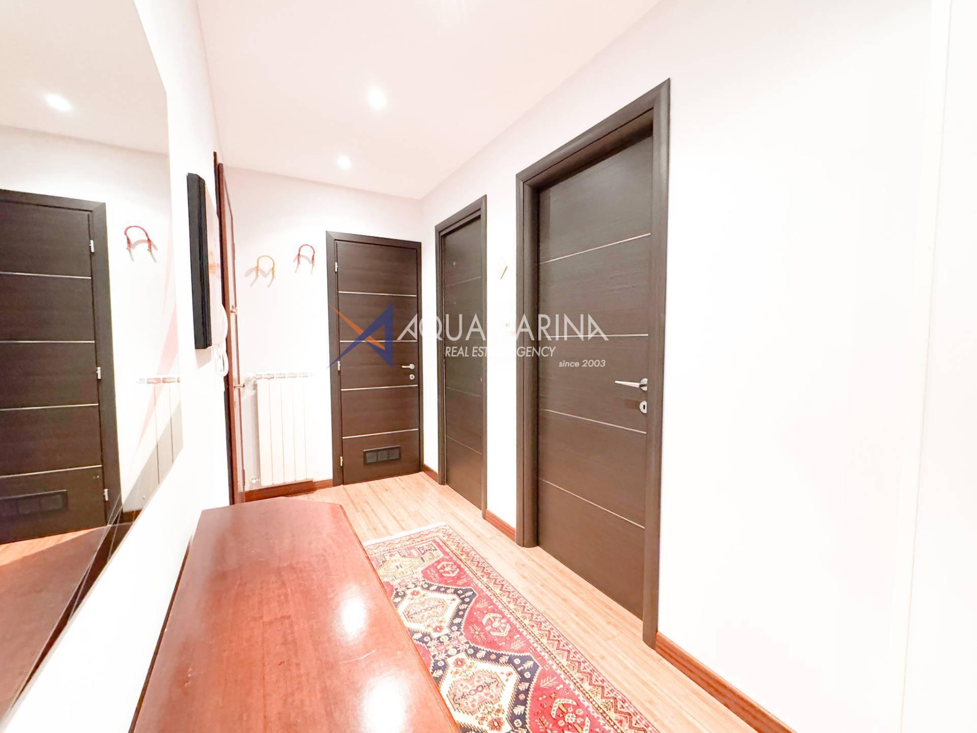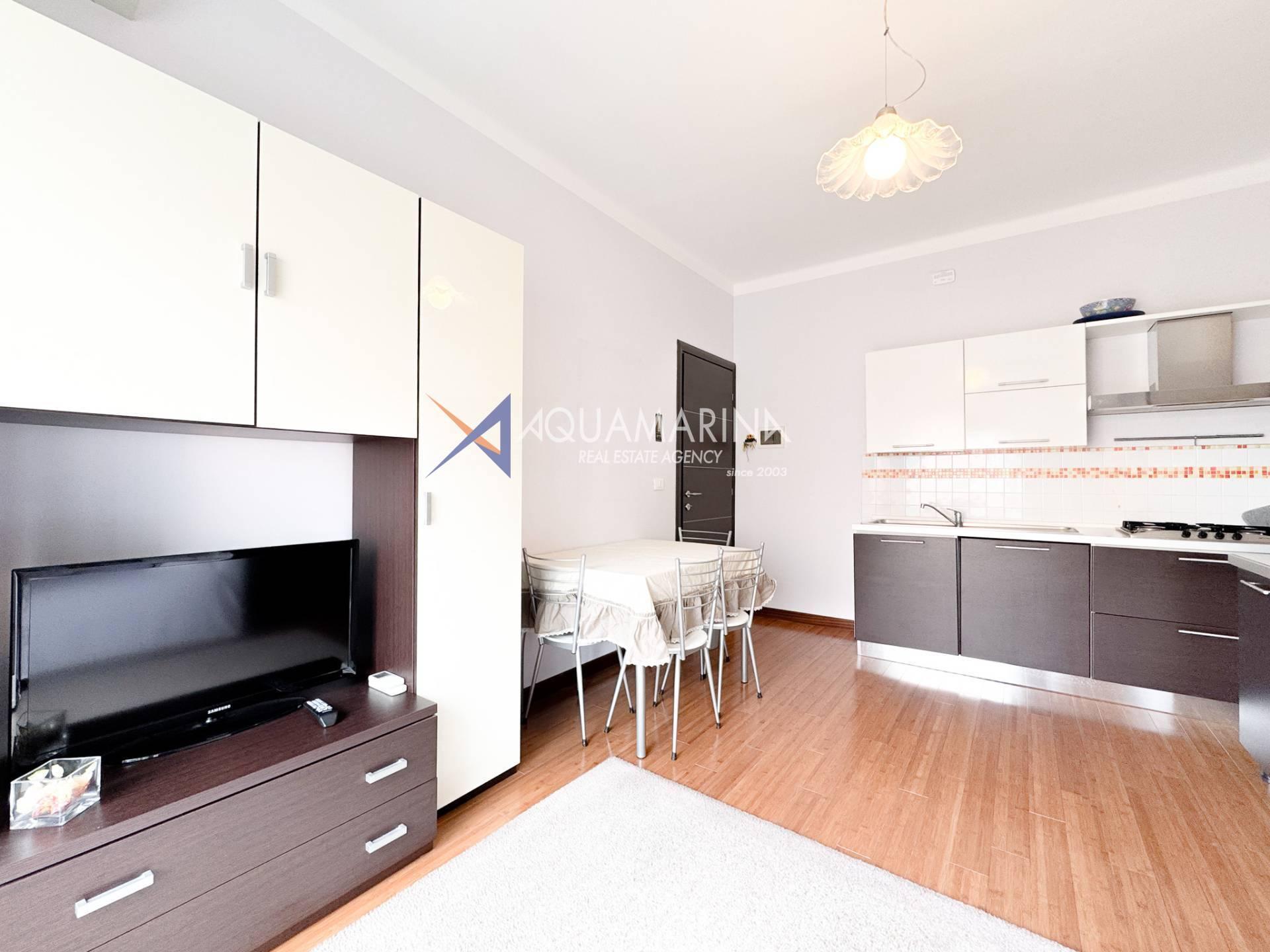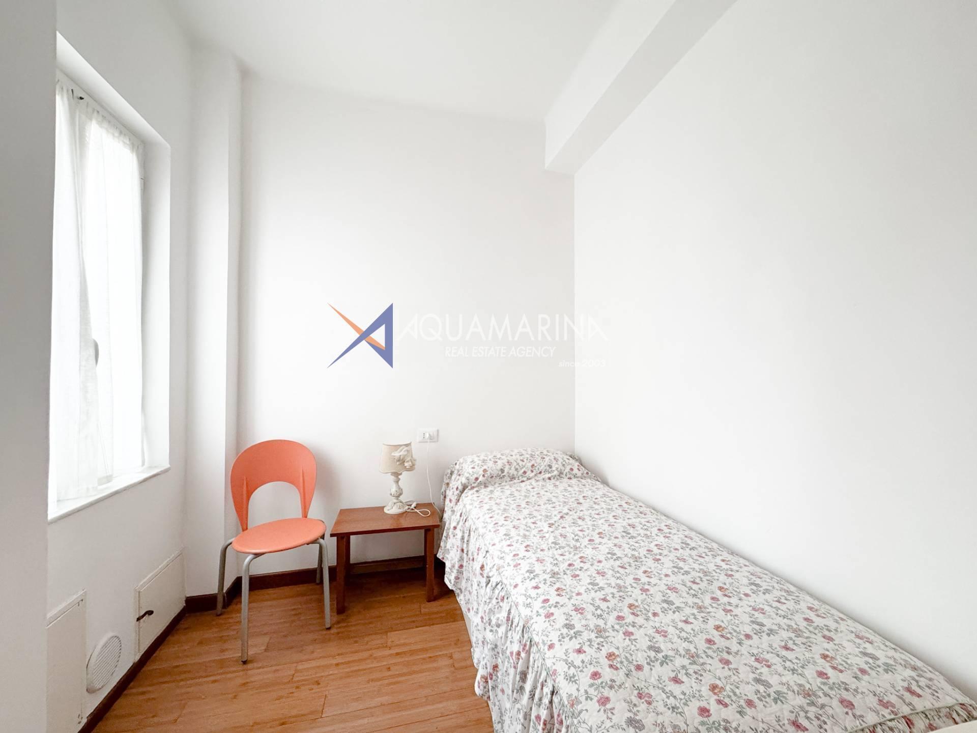 Nur wenige Schritte vom Meer entfernt, in einer ruhigen Gegend an der Via Cesare Balbo und in unmittelbarer Nähe zu allen Annehmlichkeiten, bieten wir eine 59 m² große Wohnung im dritten Stock eines Gebäudes mit Aufzug zur Miete an. Die Wohnung besteht aus einem Eingangsbereich, einem Wohnzimmer mit Schlafcouch und offener Küche, einem Schlafzimmer mit Doppelbett und begehbarem Kleiderschrank, einem Badezimmer mit Dusche und einer Terrasse. Ein Kellerraum steht ebenfalls zur Verfügung.