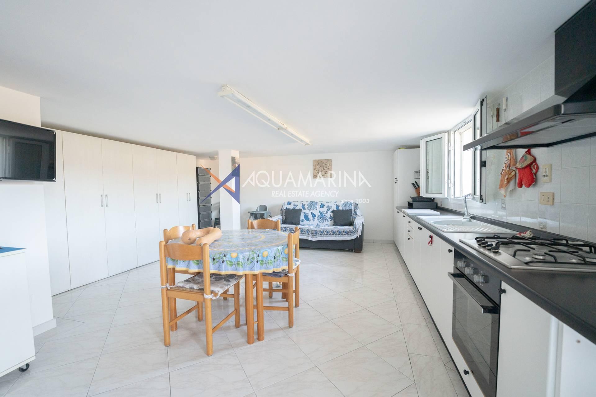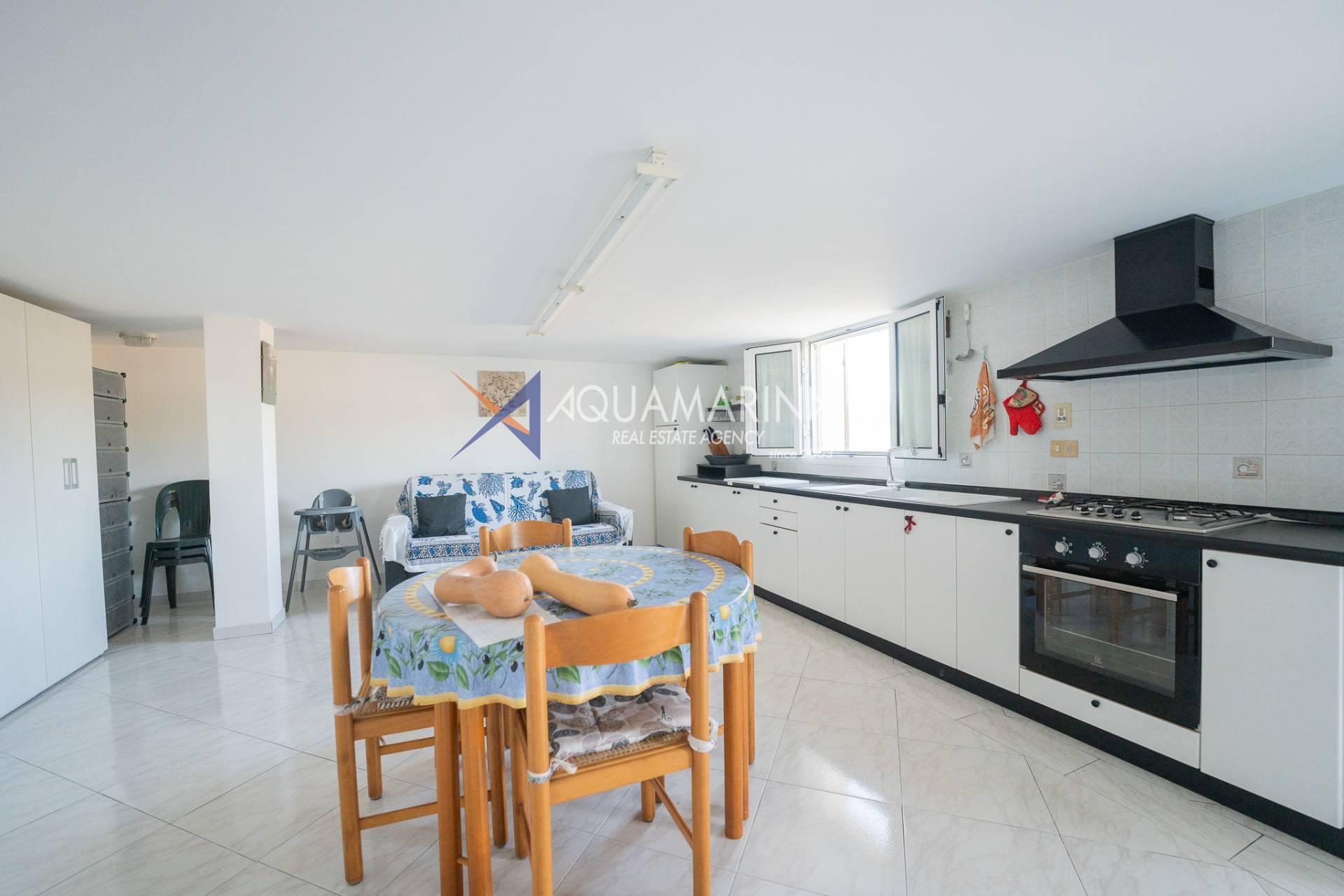Die erste Wohnung von ca. 77 m2 befindet sich im ersten und letzten Stock und besteht aus: Eingangshalle, Wohnzimmer, Küche, zwei Schlafzimmern, Badezimmer, Balkon und Terrasse, Panoramablick auf die Hügel und das Meer;