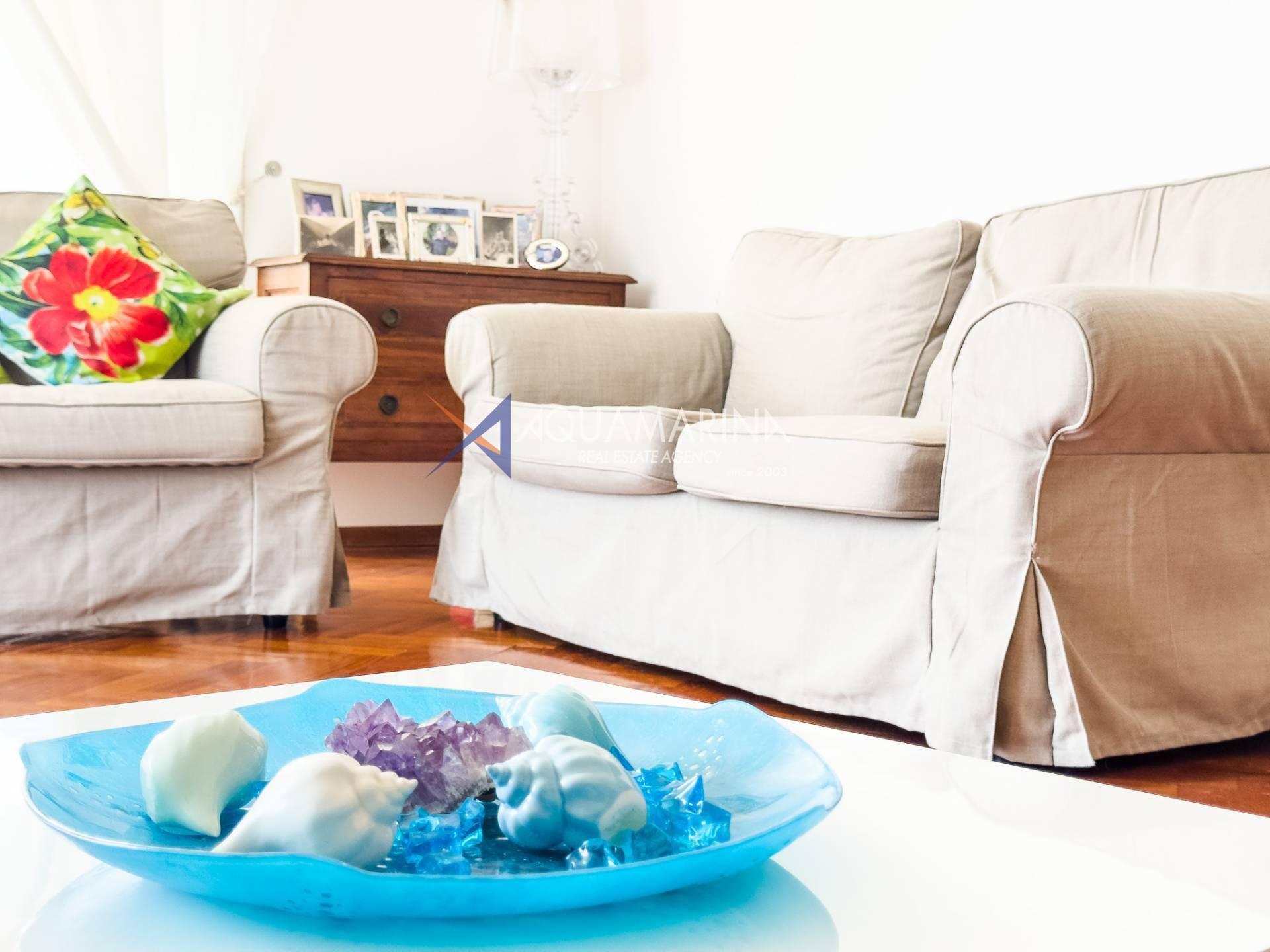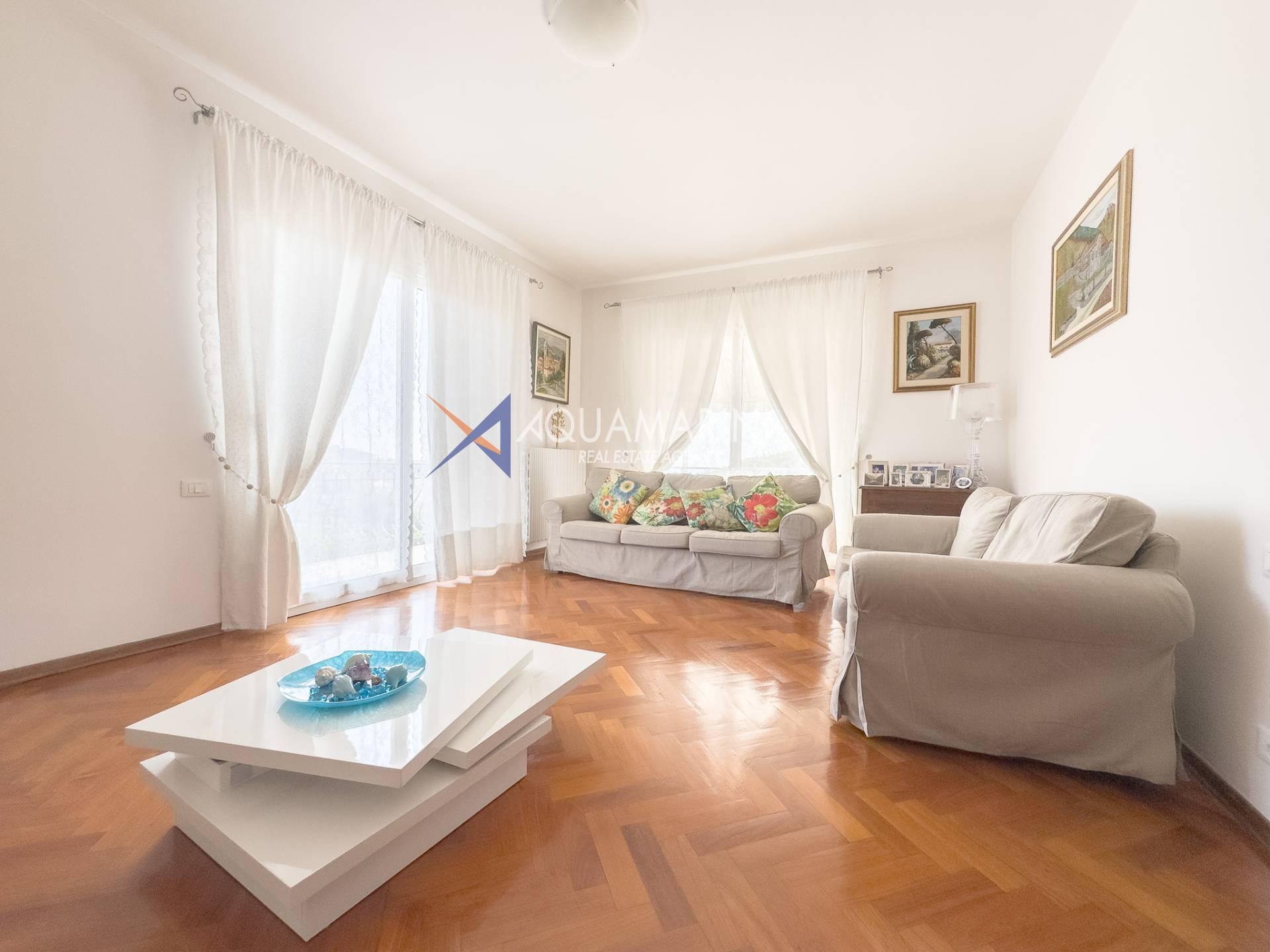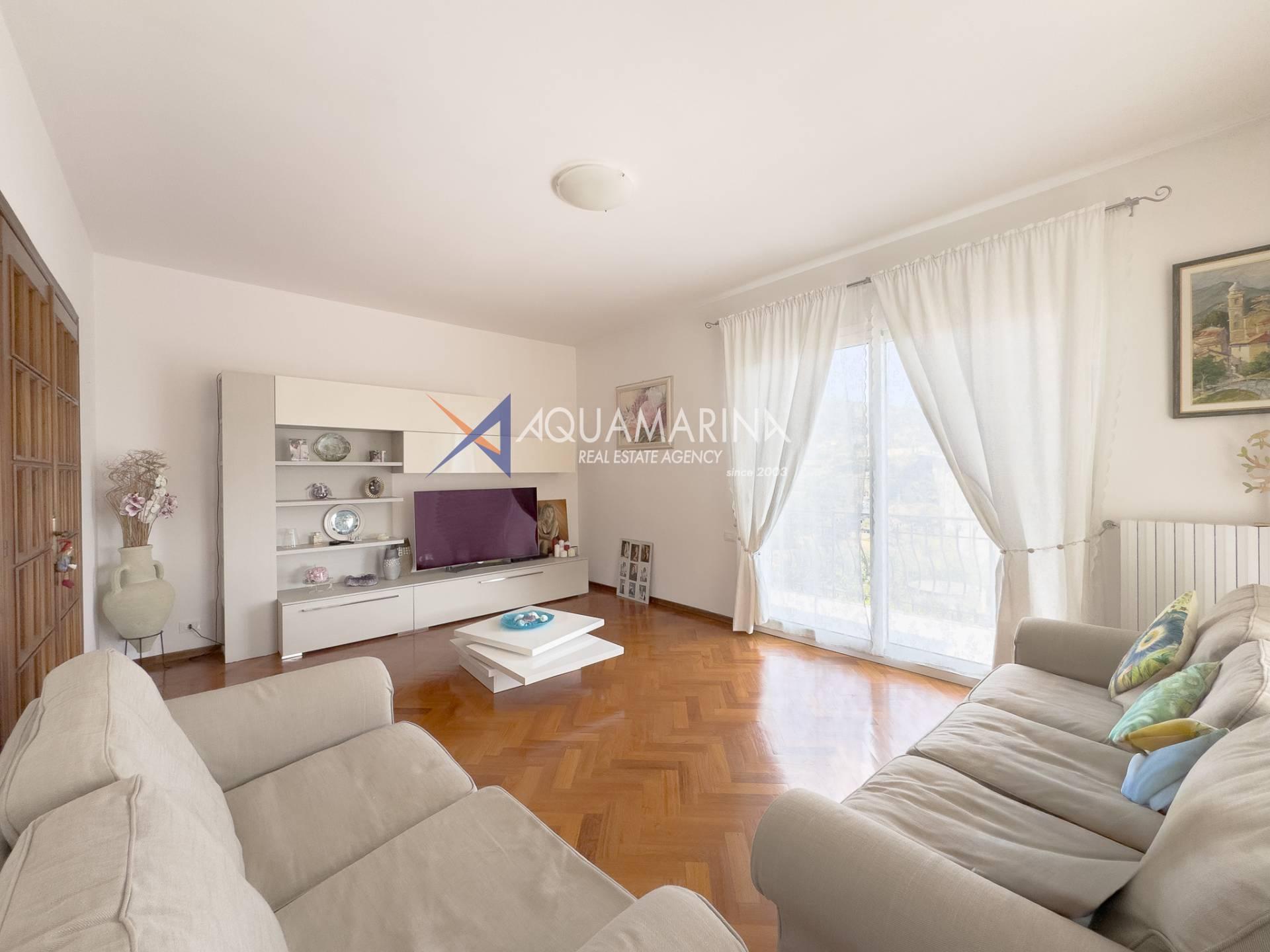 Zum Verkauf steht eine geräumige Wohnung mit ca. 138 Quadratmetern in einem Zweifamilienhaus in Borghetto San Nicoḷ, Bordighera.