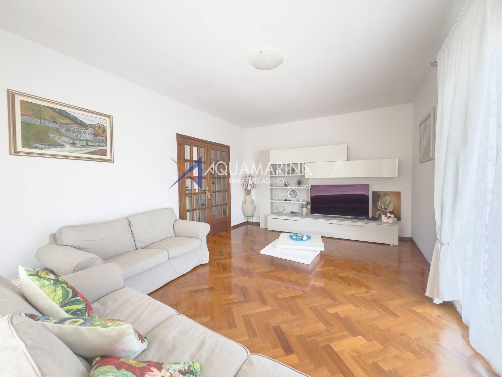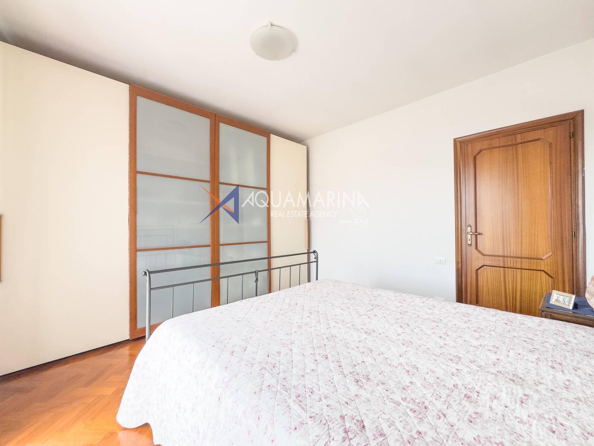 Die Wohnung befindet sich im zweiten und obersten Stockwerk und bietet ca. 138 Quadratmeter mit offener Terrasse und Panoramablick auf das Meer, die Berge und die Umgebung.