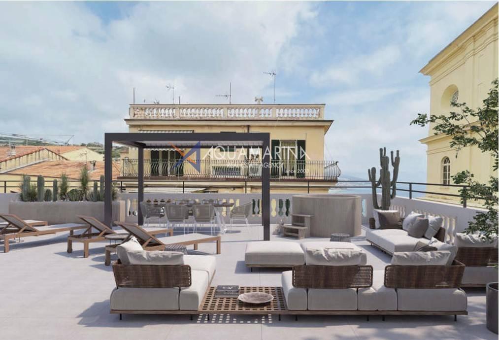 Bussana, Zweizimmerwohnung im zweiten Stock mit großer Panoramaterrasse mit Meerblick und entsprechendem Keller.