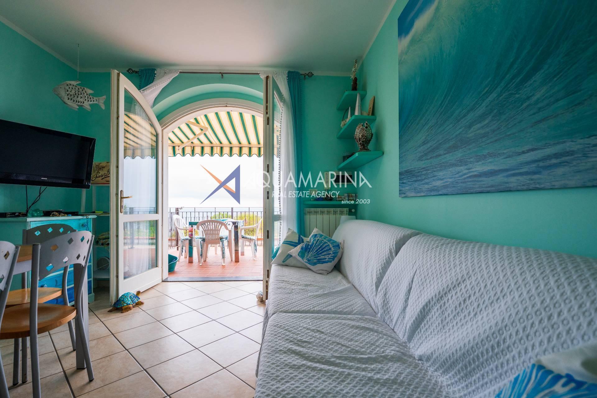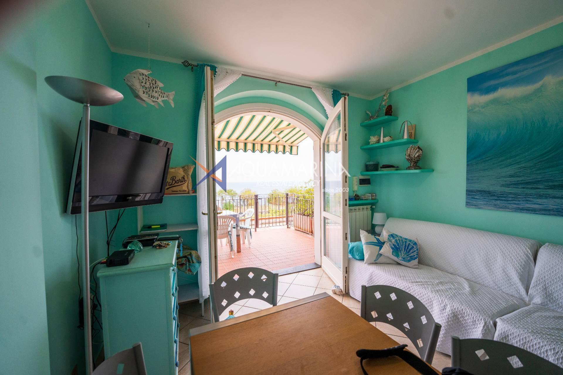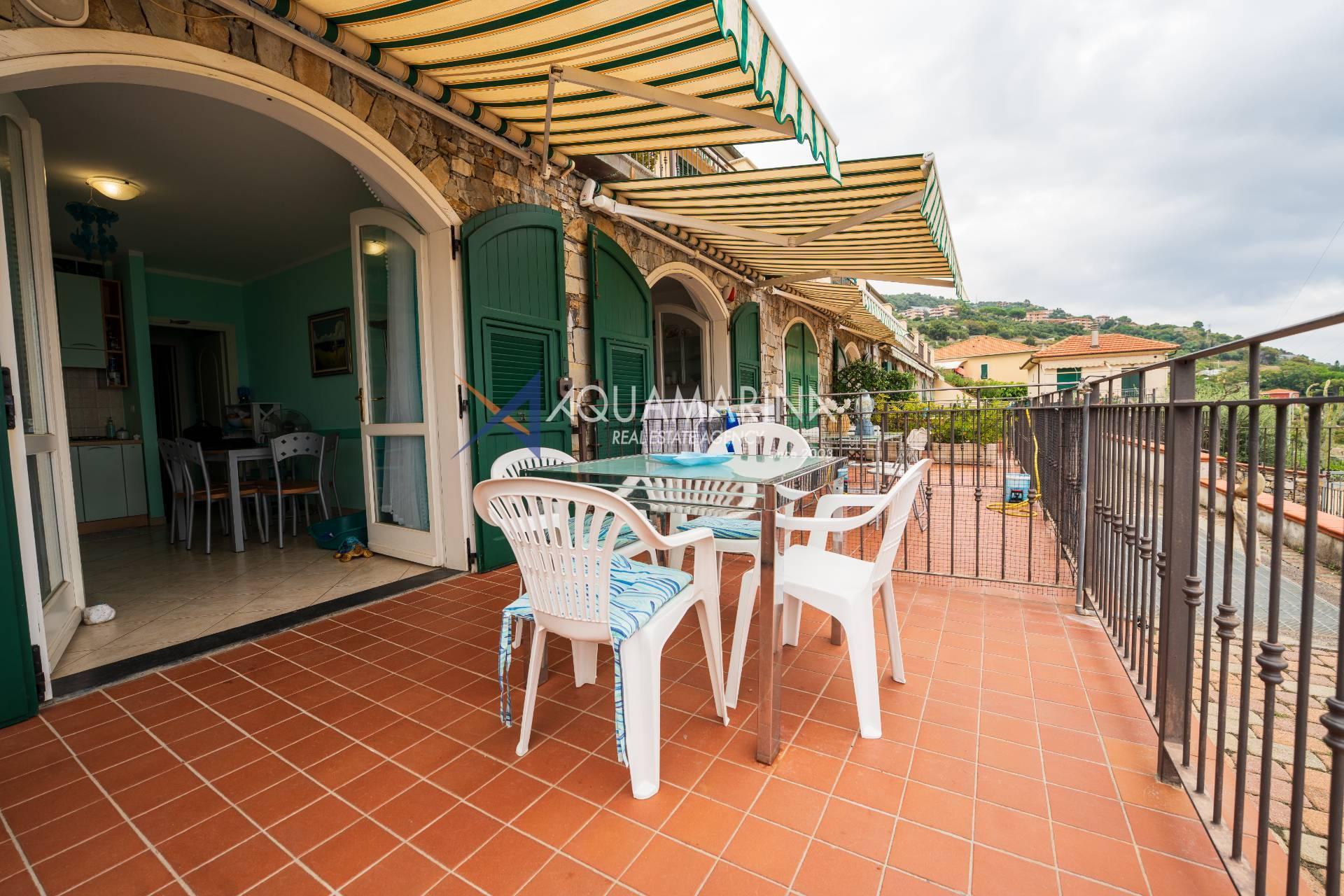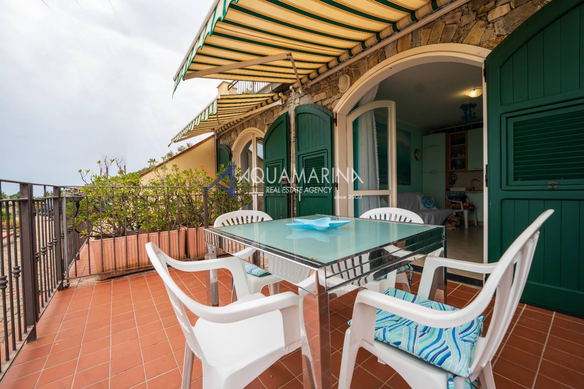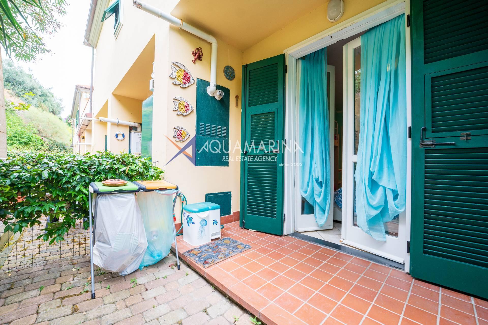Cipressa-Apartment mit Meerblick, 50 Meter vom Meer und dem Radweg entfernt, im Erdgeschoss gelegen. Es befindet sich in einem neuen Wohnkomplex in einer der schönsten Küstengegenden Westliguriens und besteht aus einer Eingangshalle, einem Wohnzimmer mit offener Küche, einem Schlafzimmer, einem großen Badezimmer und einer Doppelbelichtung mit zwei Terrassen.