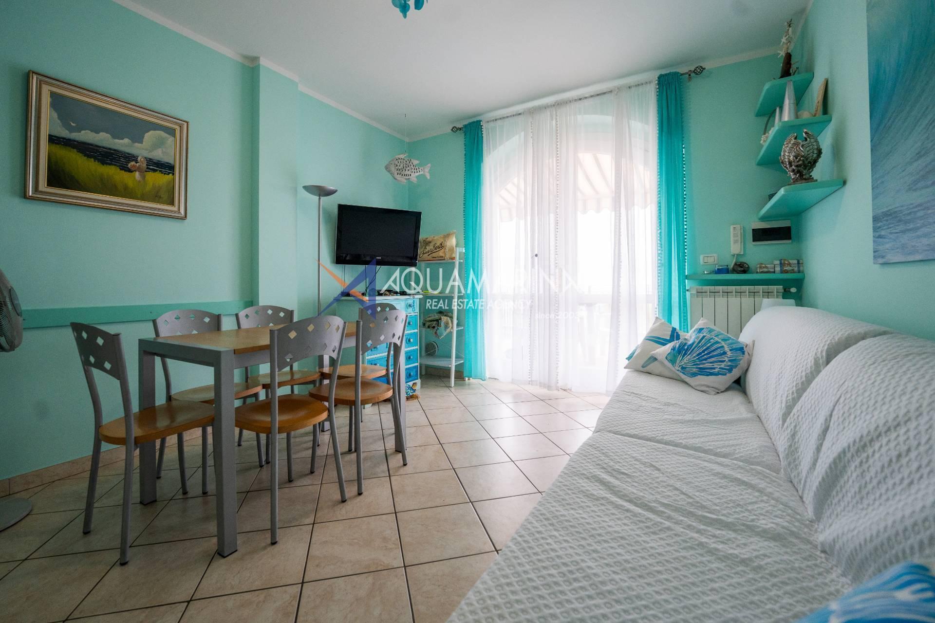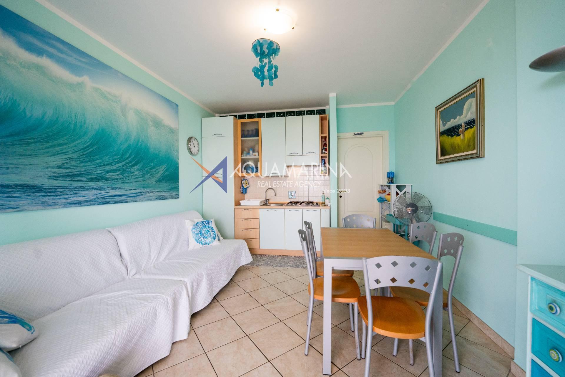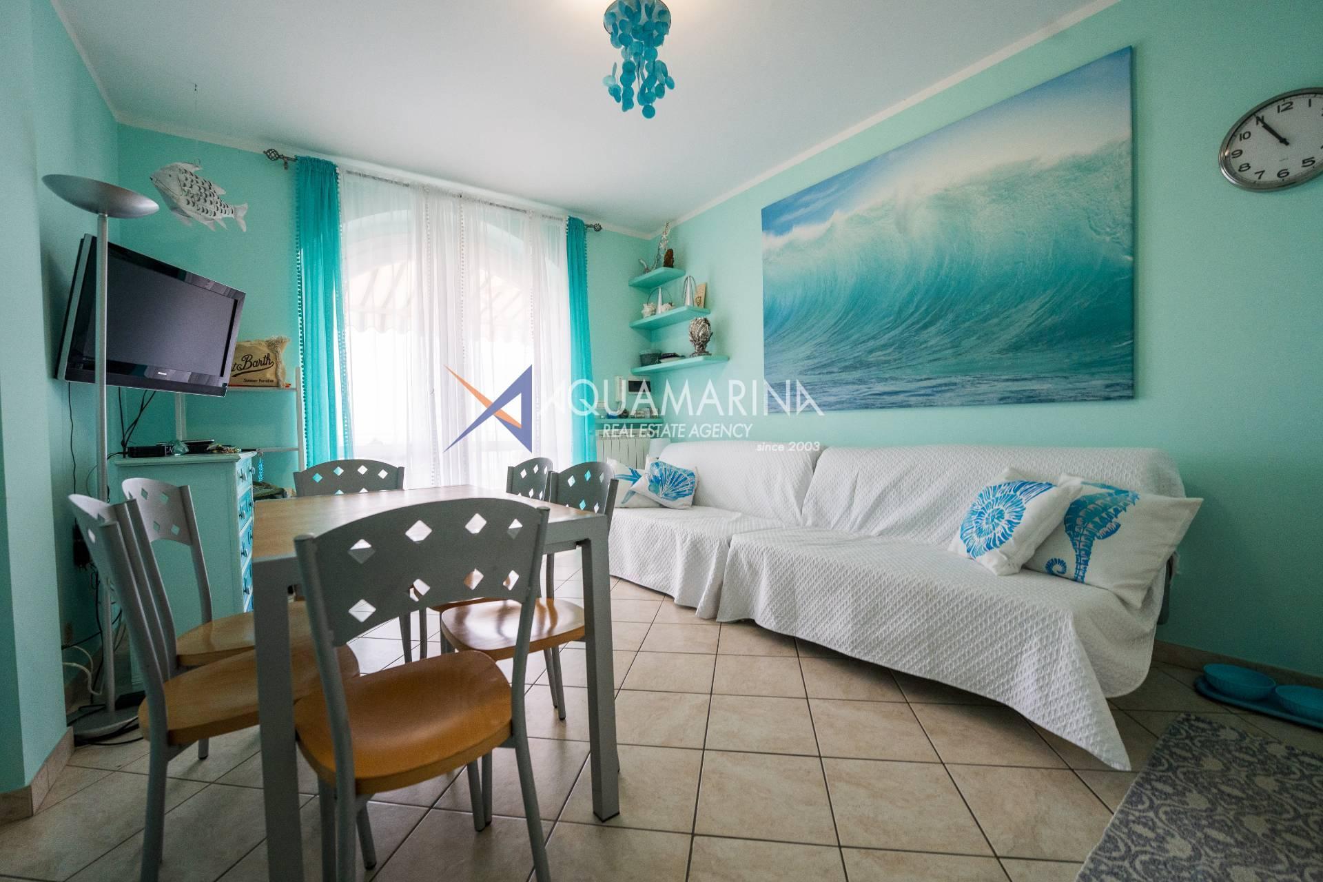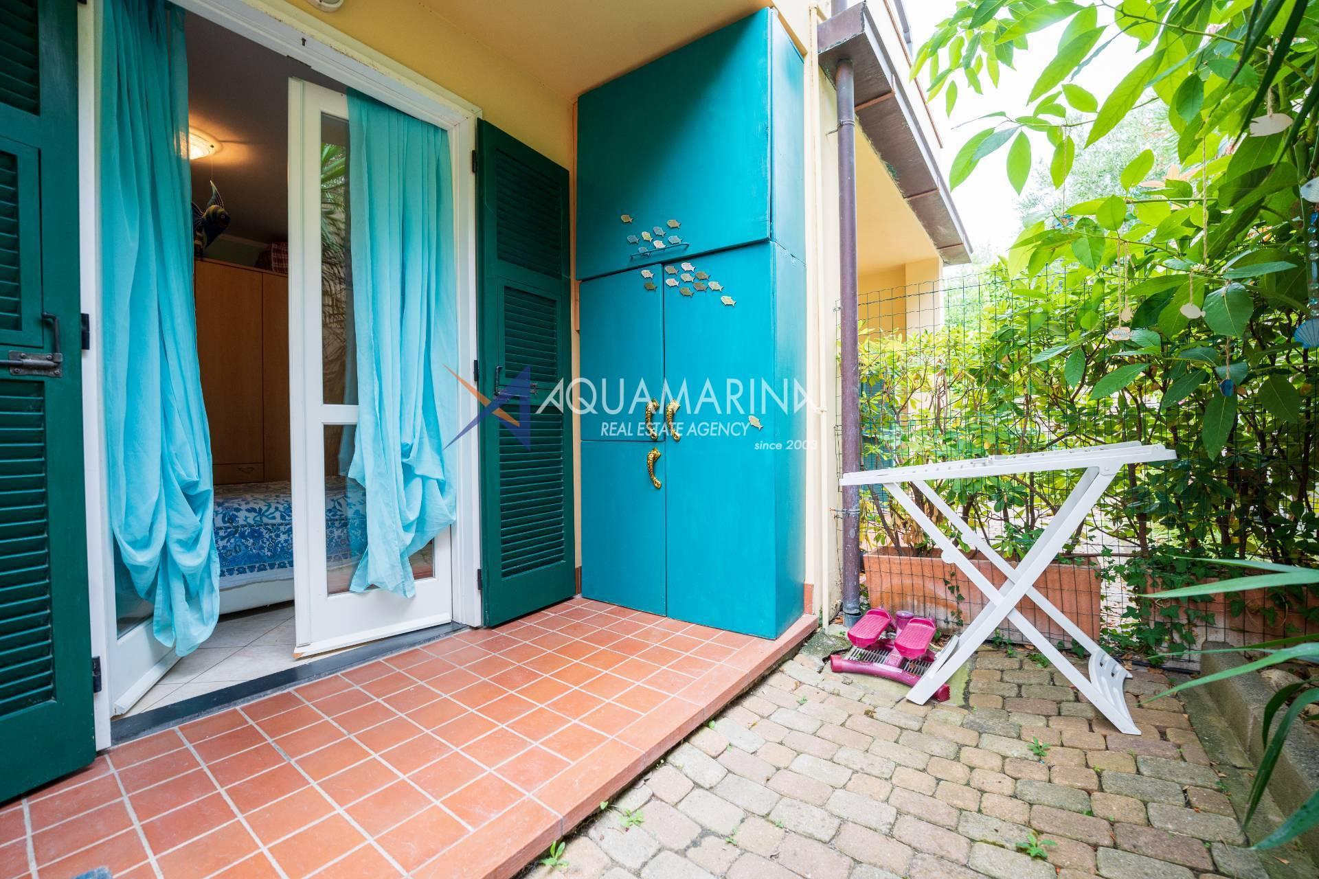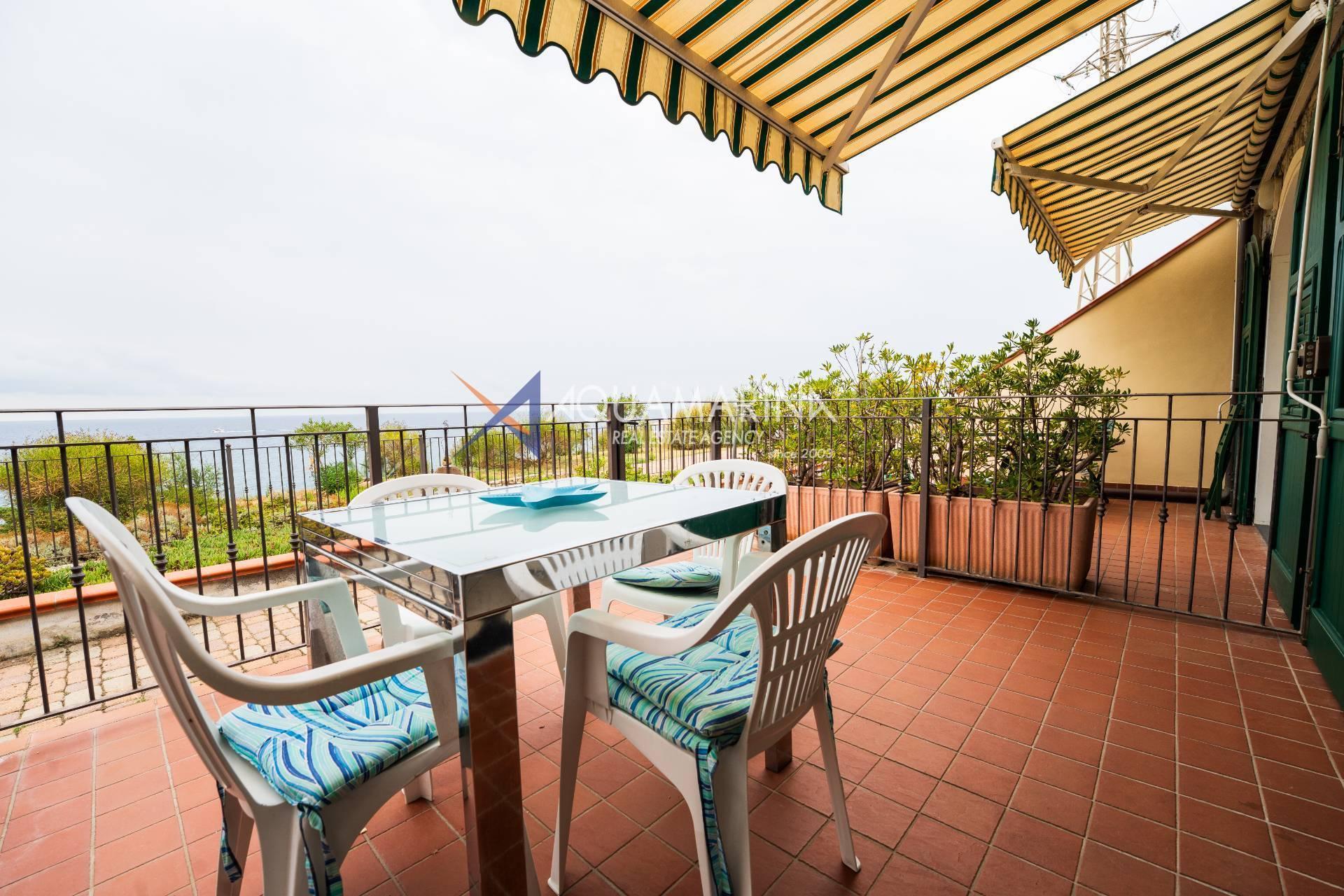 Cipressa-Apartment mit Meerblick, 50 Meter vom Meer und dem Radweg entfernt, im Erdgeschoss gelegen. Es befindet sich in einem neuen Wohnkomplex in einer der schönsten Küstengegenden Westliguriens und besteht aus einer Eingangshalle, einem Wohnzimmer mit offener Küche, einem Schlafzimmer, einem großen Badezimmer und einer Doppelbelichtung mit zwei Terrassen.