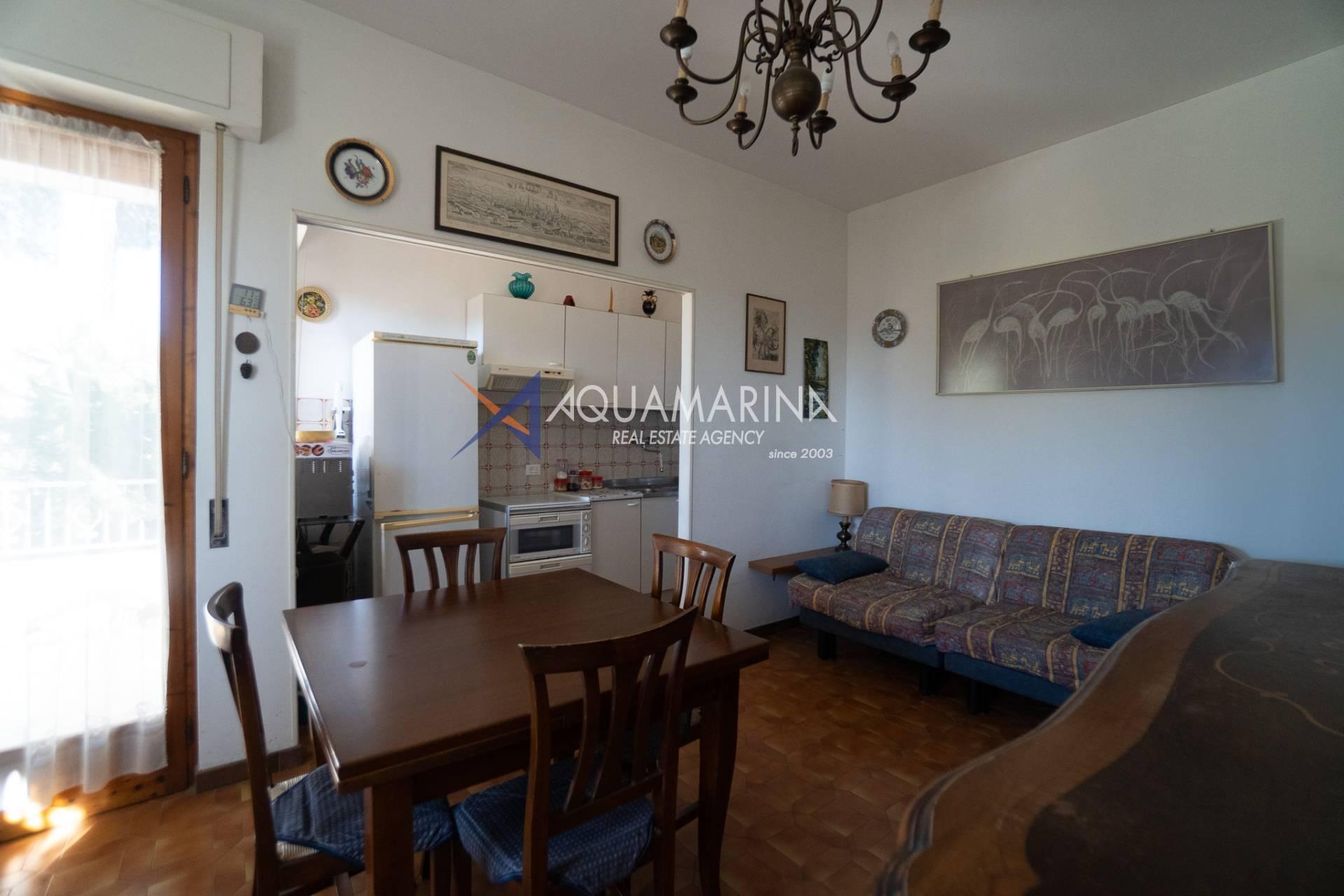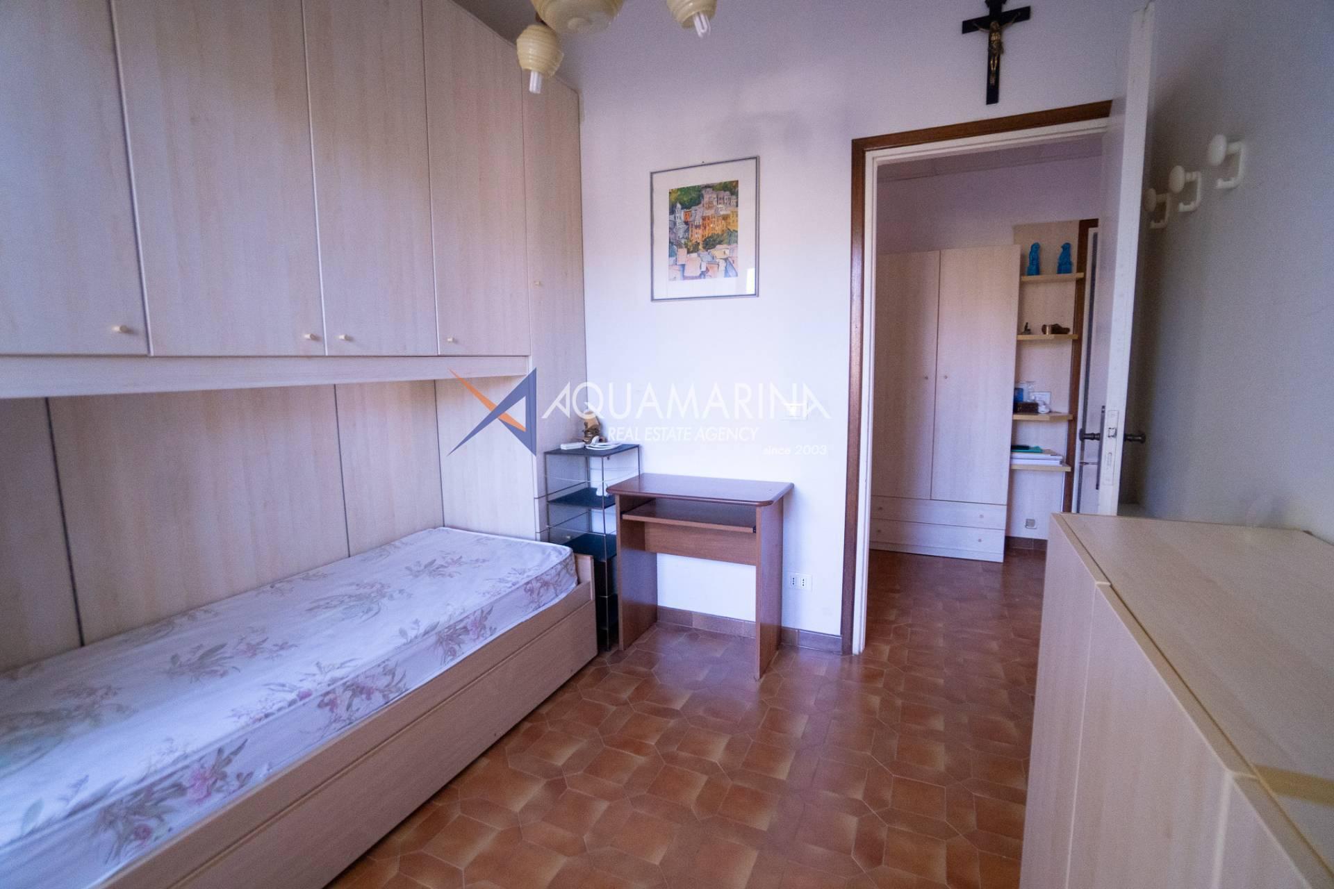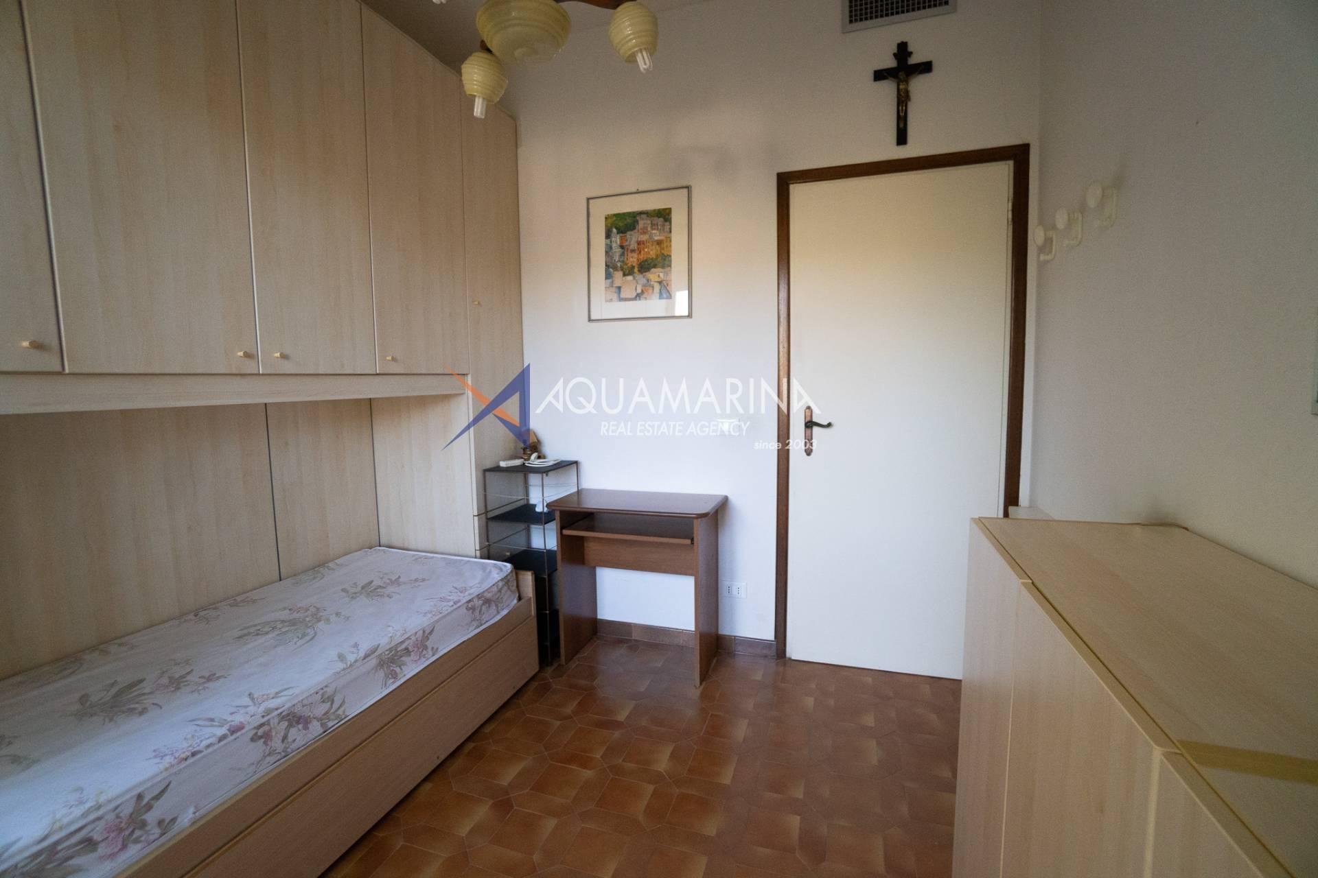 Die Wohnung zeichnet sich durch eine hervorragende Raumaufteilung aus und öffnet sich zu einer funktionalen Eingangshalle, die sich ideal für maßgefertigte Einbauschränke eignet. Von dort gehen die weiteren Räume ab: ein helles Wohnzimmer mit separater Küchenzeile und direktem Zugang zu einer bewohnbaren Terrasse mit Meerblick, zwei Schlafzimmer mit jeweils eigenem Balkon, während das Badezimmer mit Fenster für Komfort und natürliches Licht sorgt.