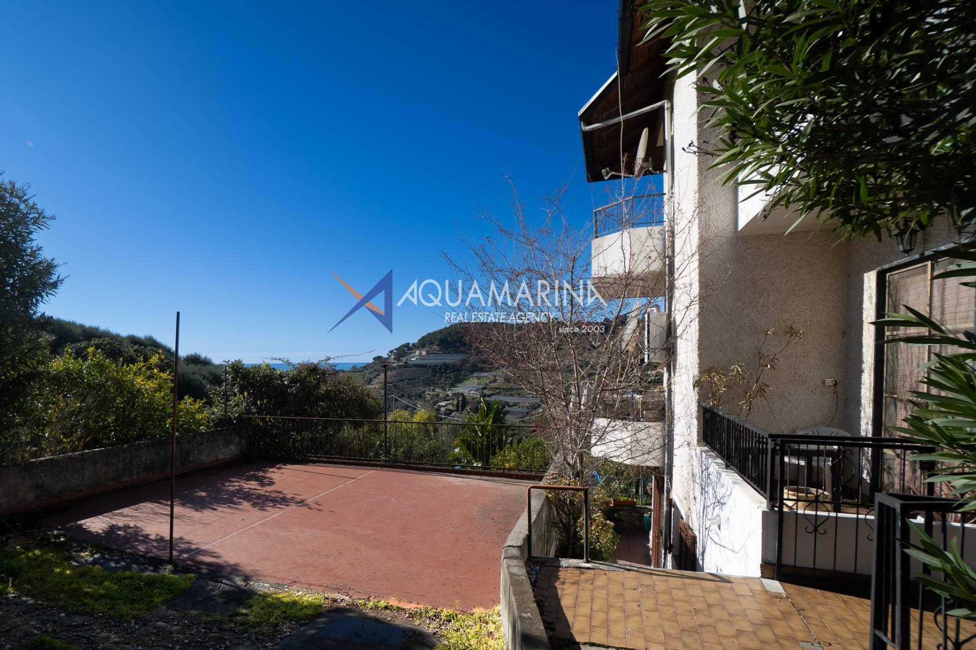 Zum Verkauf steht in Bordighera, in einer ruhigen, leicht hügeligen Gegend, umgeben von grüner mediterraner Macchia, eine Dreizimmerwohnung von ca. 75 Quadratmetern mit Meerblick.
