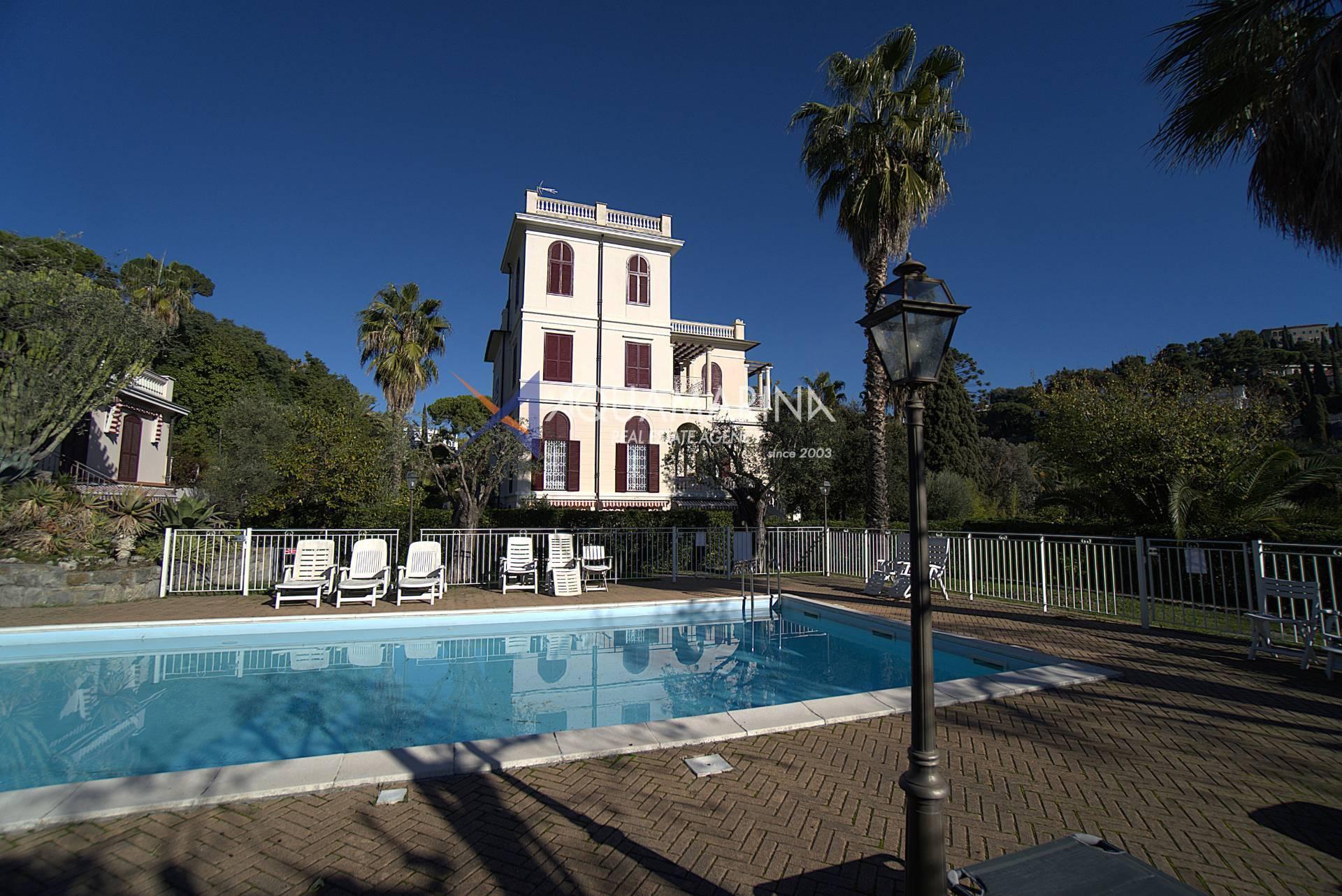 In Bordighera, in einem charmanten und eleganten Ambiente, freuen wir uns, Ihnen eine exklusive Dreizimmerwohnung zum Verkauf anbieten zu können. Sie befindet sich in einem prächtigen Herrenhaus aus dem frühen 20. Jahrhundert, besticht durch feine architektonische Details und ist von einem gepflegten Garten mit Swimmingpool umgeben.