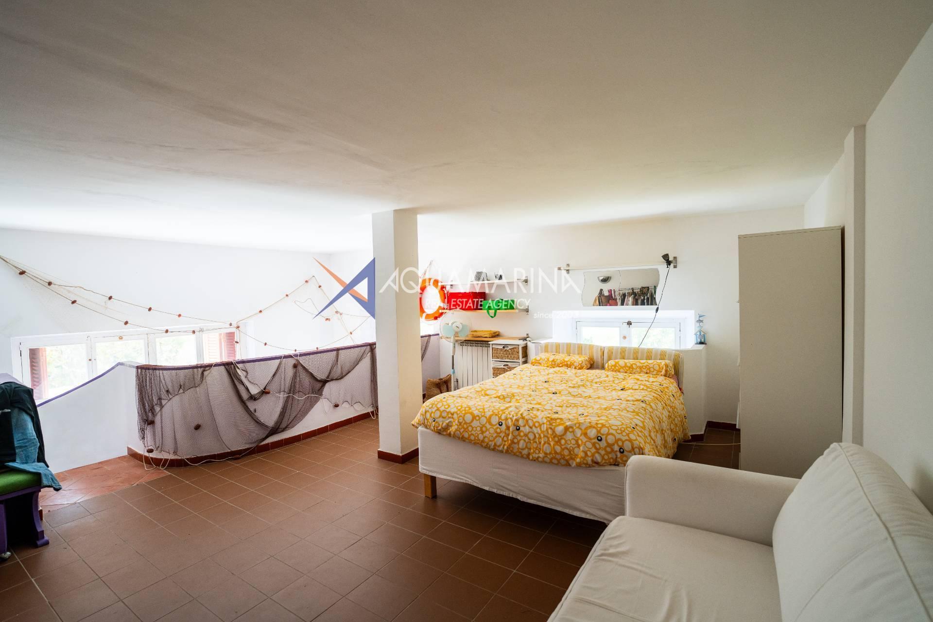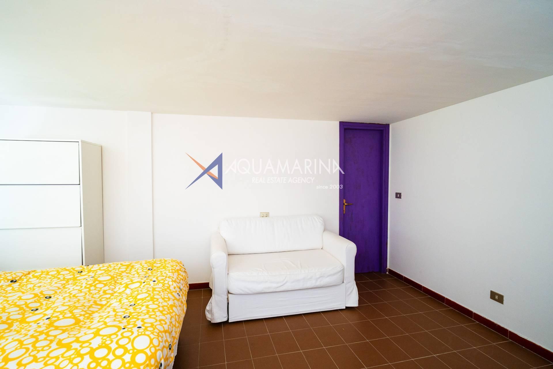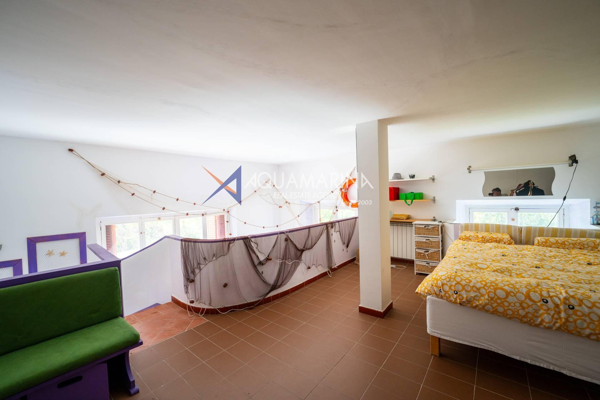 Erdgeschoss (50 m2): Wohnbereich mit zwei Schlafsofas, Badezimmer und großem Schrank. Von hier aus gelangt man auf eine Terrasse mit Blick auf zwei Seiten und teilweisem Blick auf das Meer und den Park. Abgerundet wird dieser Bereich durch einen exklusiven 100 m2 großen Garten, der sich perfekt für Abendessen im Freien und unvergessliche Momente eignet.