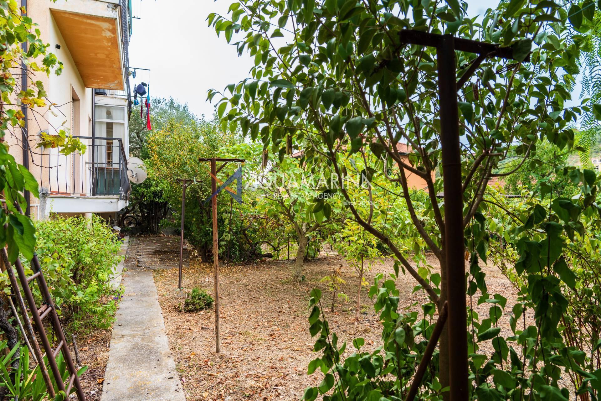 Imperia Caramagna, zweistöckige Wohnung in ruhiger und dennoch zentraler Lage. Zum Verkauf steht ein 110 m² großes Hochparterre mit einem 102 m² großen Kellergeschoss zur Wohnnutzung, das über eine Innentreppe verbunden oder in eine separate Wohnung umgewandelt werden kann. Das Gebäude besteht aus nur drei Wohneinheiten, einem 450 m² großen privaten Garten und einem Innenhof mit einer mit Weinreben bepflanzten Pergola. Parkplätze und eine private Auffahrt sind ebenfalls vorhanden. Das Hochparterre besteht aus Eingangshalle, Wohnküche, Esszimmer, Wohnzimmer, Flur, Bad, zwei Schlafzimmern und drei Balkonen mit Aussicht. Das Kellergeschoss verfügt über einen offenen Grundriss mit eigenem Eingang. Die Zentralheizung erfolgt über Stadtgas mit Heizkörpern. Es fallen keine Eigentumswohnungsgebühren an, und die Lage eignet sich ideal für verschiedene Zwecke: Wohnen, Kapitalanlage oder Zweitwohnsitz. Die Gegend bietet zahlreiche Annehmlichkeiten und ist nur einen kurzen Spaziergang von Porto Maurizio entfernt. Lassen Sie sich diese Gelegenheit nicht entgehen und kontaktieren Sie uns für einen Besichtigungstermin.