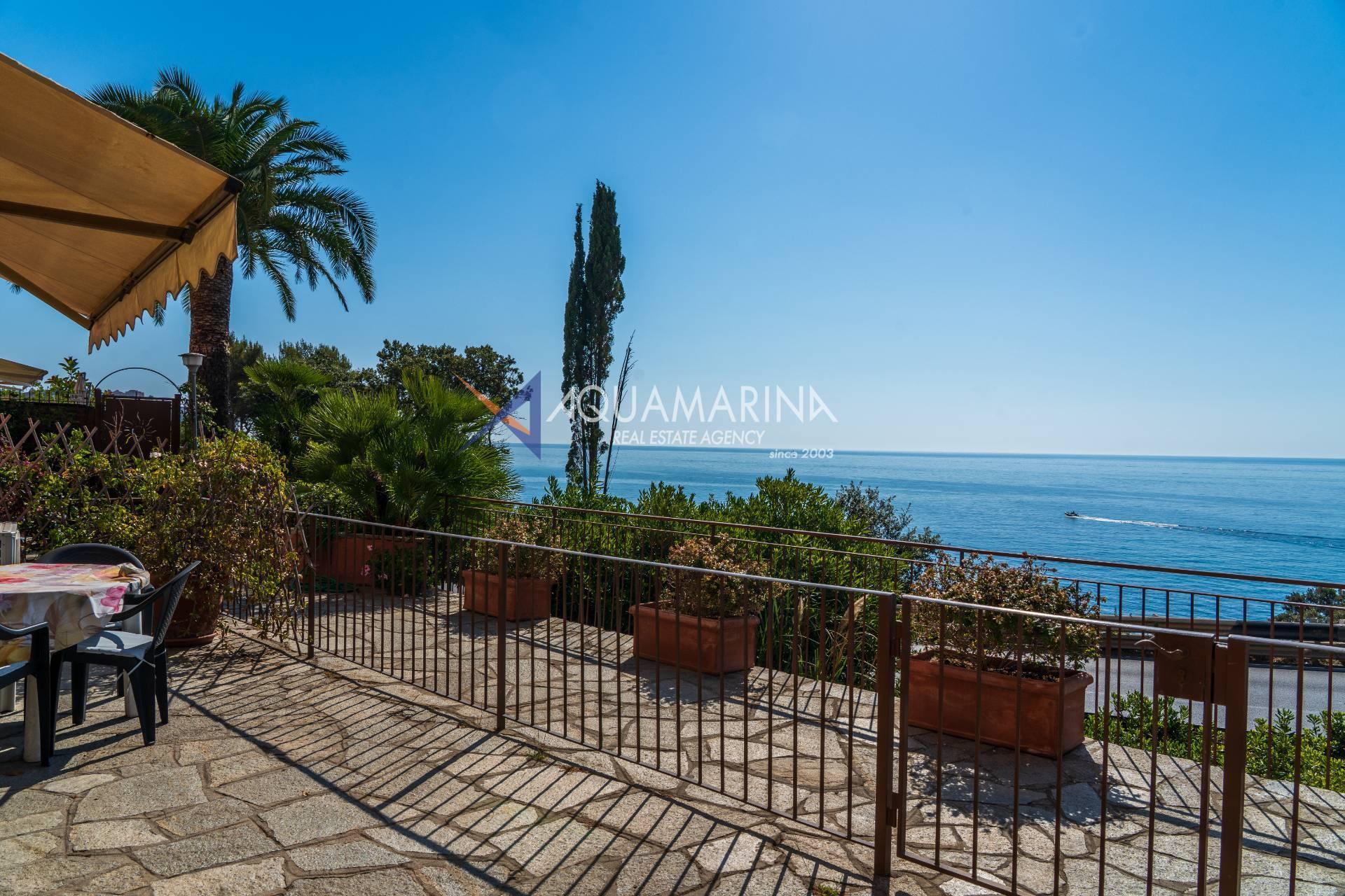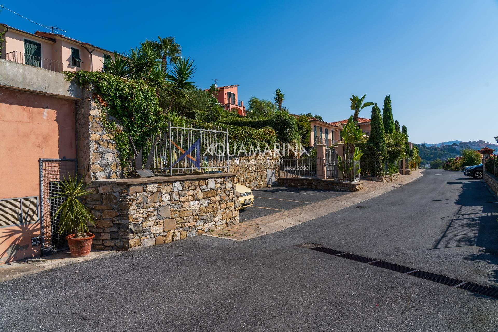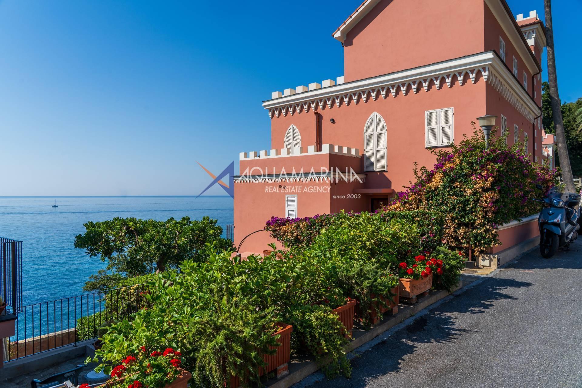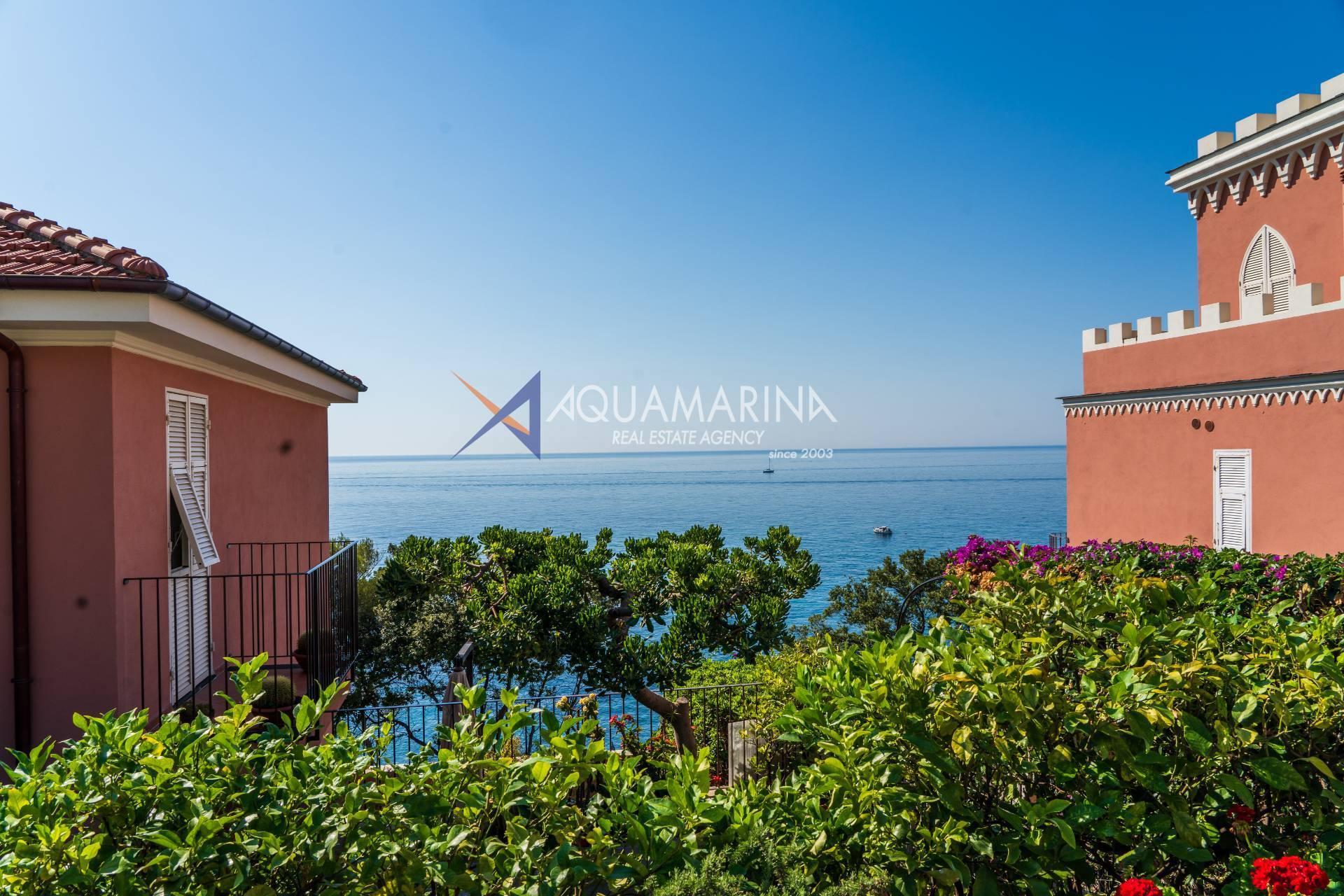Imperia Meerblick-Apartment. Dieses exklusive Apartment bietet einen Panoramablick auf das Meer und einen privaten Innenhof in einer einzigartigen Umgebung. Das Anwesen befindet sich in der Villa Ludovici, einer kürzlich restaurierten historischen Residenz aus den 1900er Jahren. Es besticht durch seine exquisiten architektonischen Details, darunter Türme, Fenster und Spitzbogentüren, die an die ursprüngliche Zeit erinnern.