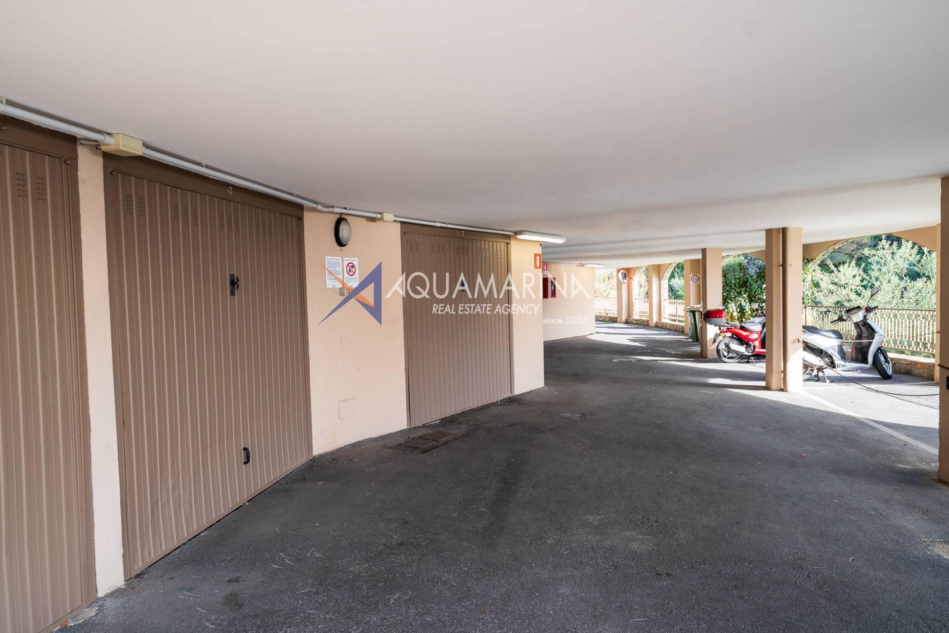 Die Residenz ist von viel Grün umgeben und verfügt über makellos gepflegte und bepflanzte Gemeinschaftsbereiche. Ein Panoramapool mit Meerblick ist bequem über die Aufzüge des Komplexes erreichbar. Ein großer öffentlicher Parkplatz befindet sich nur wenige Meter vom Gebäude entfernt und eignet sich ideal für Gäste oder ein Zweitfahrzeug.