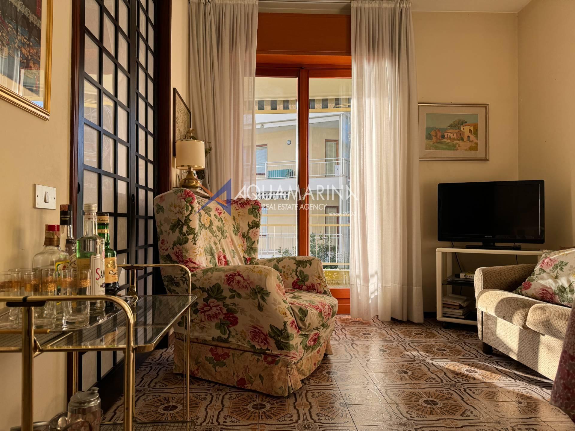 Ospedaletti, 500 Meter von den Stränden entfernt, bieten wir zum Verkauf eine charmante Wohnung mit Meerblick von etwa 63 Quadratmetern an, die aus folgenden Räumlichkeiten besteht: Eingang, Wohnzimmer mit Zugang zur Meerblickterrasse, Kochnische, Schlafzimmer mit Doppelbett ebenfalls mit Zugang zur Terrasse, Badezimmer mit Fenster, geschlossener Balkon zur Nutzung als Wäscheraum und ein privater überdachter Parkplatz.