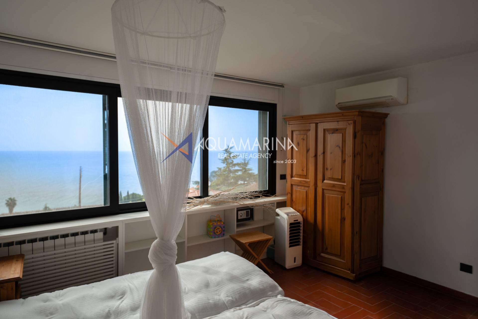 In der ersten grünen und panoramischen Hügellage befindet sich diese prächtige Villa mit außergewöhnlichem Meerblick. Die Wohnfläche von 400 m² verteilt sich auf 12 Zimmer über zwei Etagen. Im Außenbereich gibt es einen Garten, in dem die Möglichkeit besteht, einen großen Pool zu bauen. Die Villa bietet die Möglichkeit, in drei separaten Wohneinheiten bewohnt zu werden, was absolute Privatsphäre für alle Gäste garantiert. Es gibt drei Zufahrten für Fußgänger und Fahrzeuge. Im obersten Bereich können zwei Autos geparkt werden. Im ersten Stock befindet sich eine Wohnung mit Wohnzimmer und Kochnische, Schlafzimmer, Bad und großer Terrasse. In der unteren Etage gibt es einen großen Wohnbereich mit einer weiten Terrasse mit Meerblick, 3 Schlafzimmer, 2 Bäder sowie 2 Wohnzimmer mit Kochnischen. Im Erdgeschoss befinden sich ein Doppelwohnzimmer, eine Küche, 2 Schlafzimmer, 2 Bäder und eine Garage. Insgesamt stehen 8 Parkplätze zur Verfügung, davon 3 überdacht. Zögern Sie nicht, uns für weitere Informationen zu kontaktieren und eine Besichtigung zu vereinbaren.