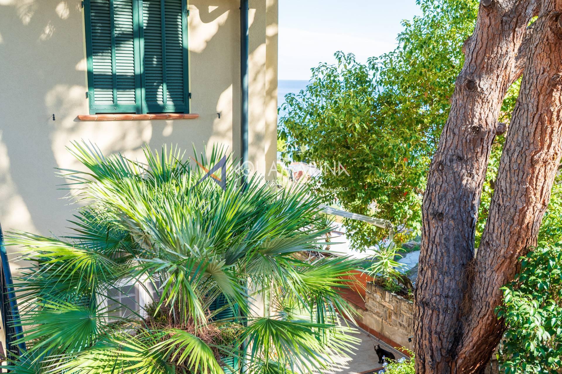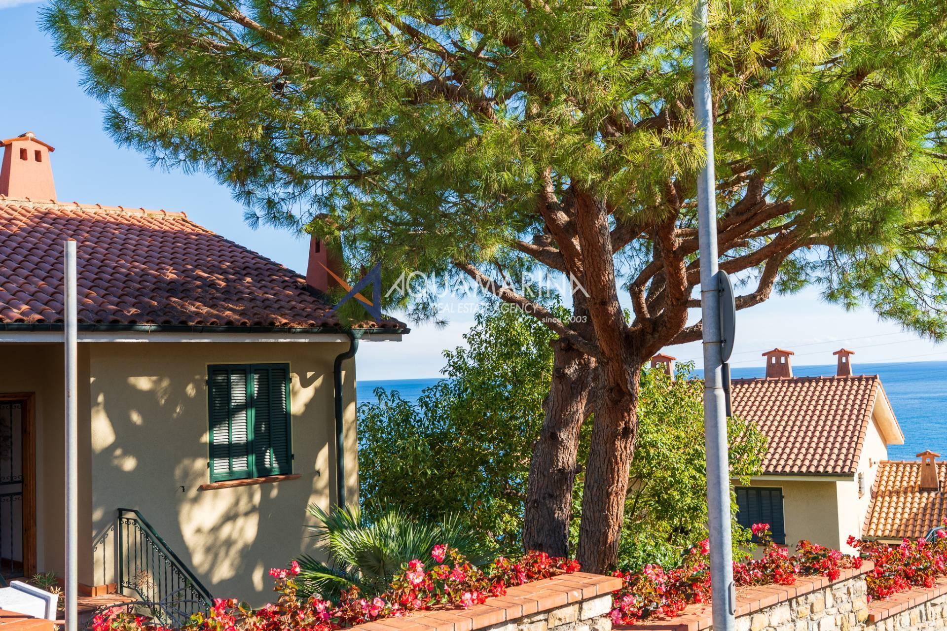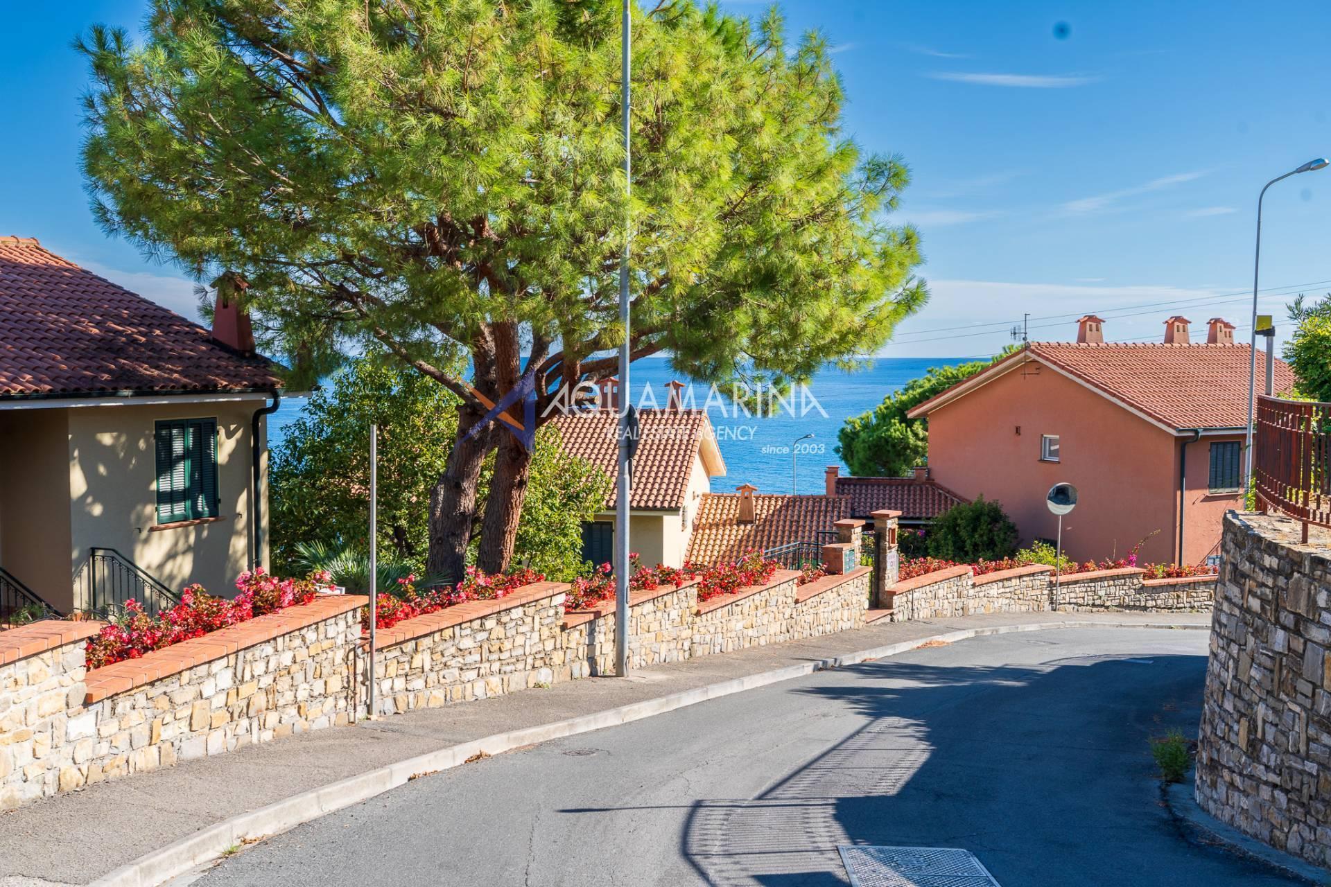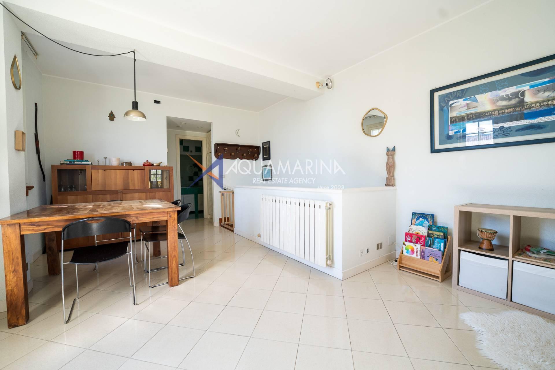 Ospedaletti Meerblick-Wohnung. In exklusiver Lage mit unvergleichlichem Meerblick, umgeben vom Meer und jahrhundertealten Strandkiefern, in einem Reihenhaus in der Wohnanlage Solenzara, bieten wir eine zweistöckige Wohnung, Erdgeschoss und Untergeschoss, mit zwei unabhängigen Eingängen, einem Garten und einer Terrasse mit Meerblick sowie Gemeinschaftsparkplätzen zum Verkauf an. Das Anwesen umfasst: Unabhängigen Zugang von der Strada Valdirodi; im Erdgeschoss führt eine Eingangshalle zu einem geräumigen und hellen Wohnzimmer mit doppelter Südausrichtung, einer Küche, einem Badezimmer, einem Abstellraum und einer Treppe, die in die untere Ebene führt; im Untergeschoss befinden sich ein Flur, drei Schlafzimmer, drei Badezimmer (zwei mit Fenstern) und ein privater Inneneingang von den Gemeinschaftsparkplätzen. Die Wohnung ist mit einer unabhängigen Erdgasheizung mit Heizkörpern und Warmwasser ausgestattet. Das Anwesen aus den 2000er Jahren ist in gutem Zustand und bezugsfertig. Lassen Sie sich diese Gelegenheit nicht entgehen!
