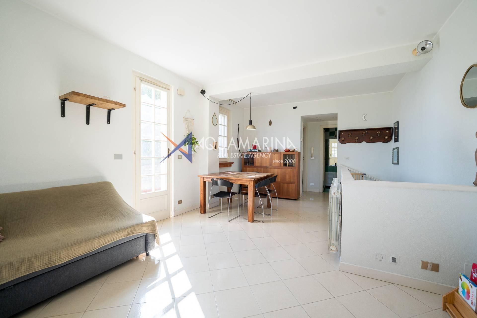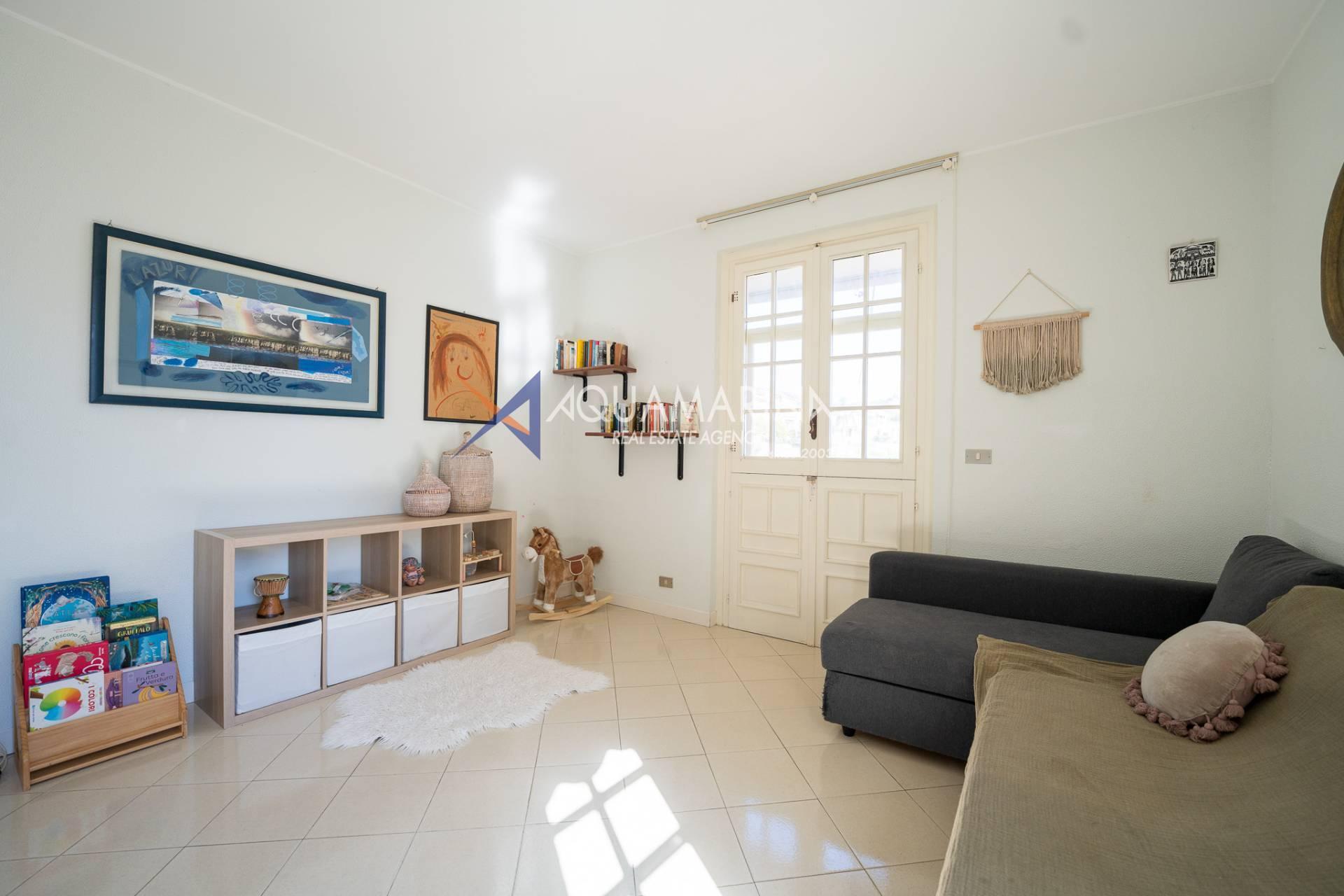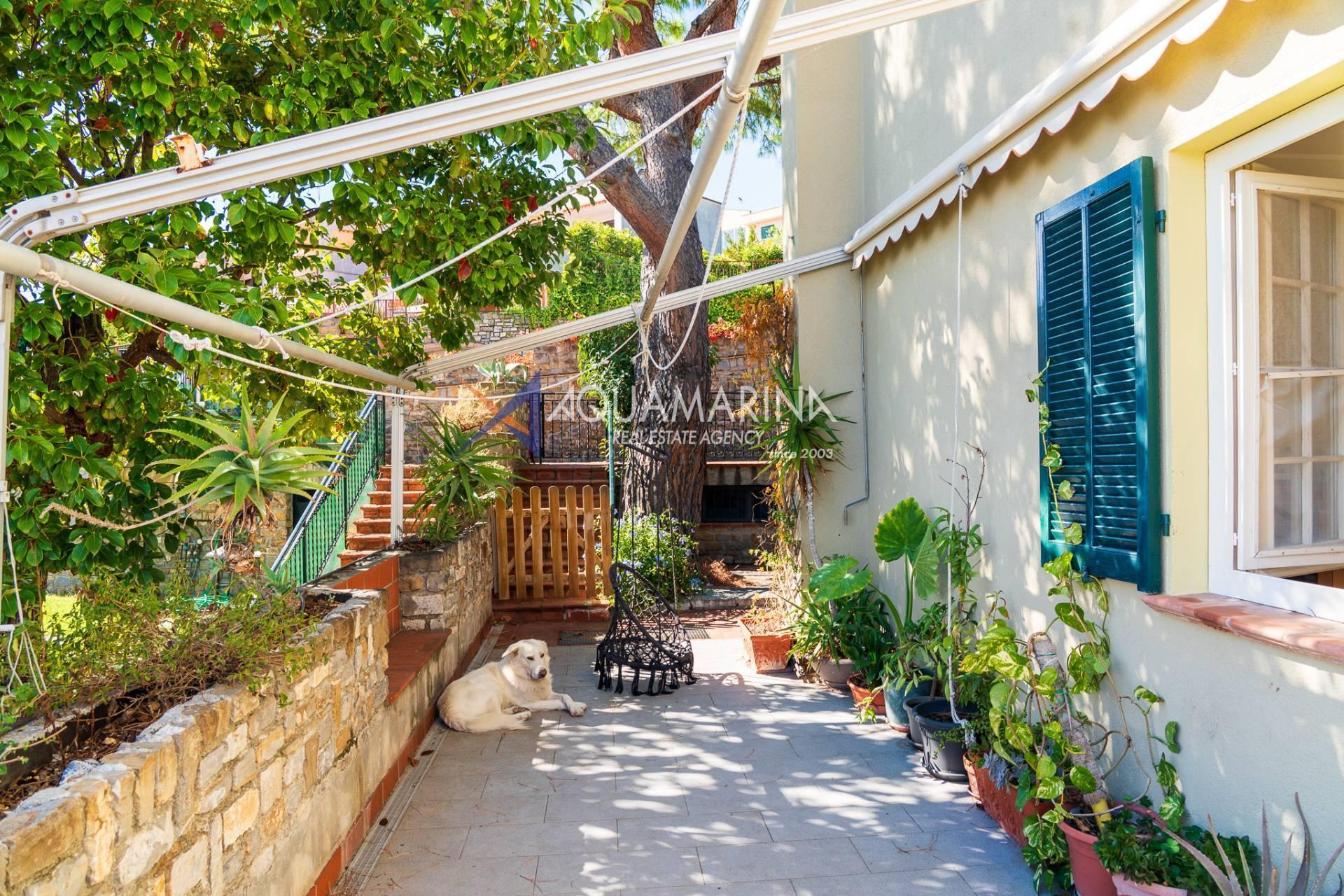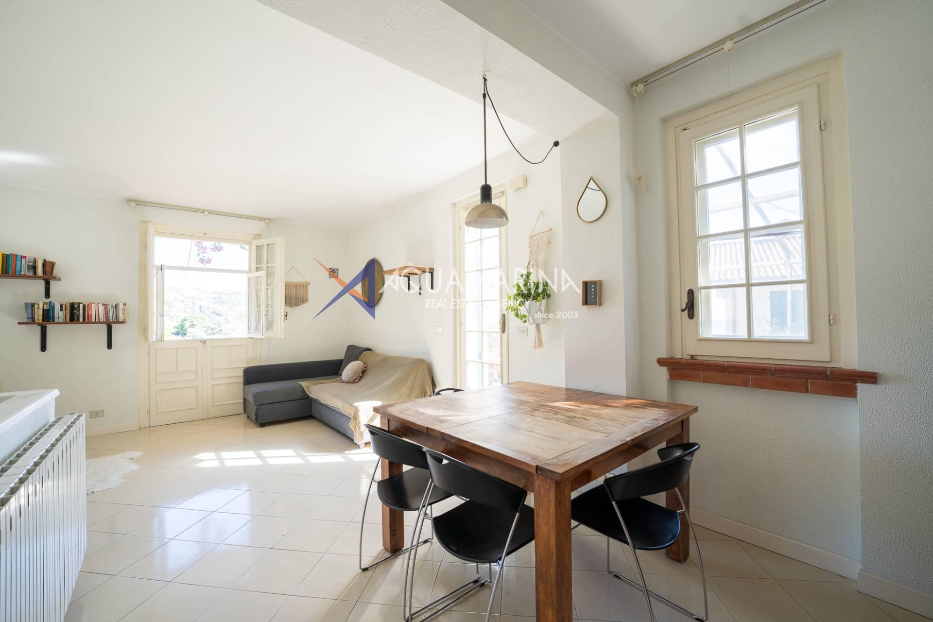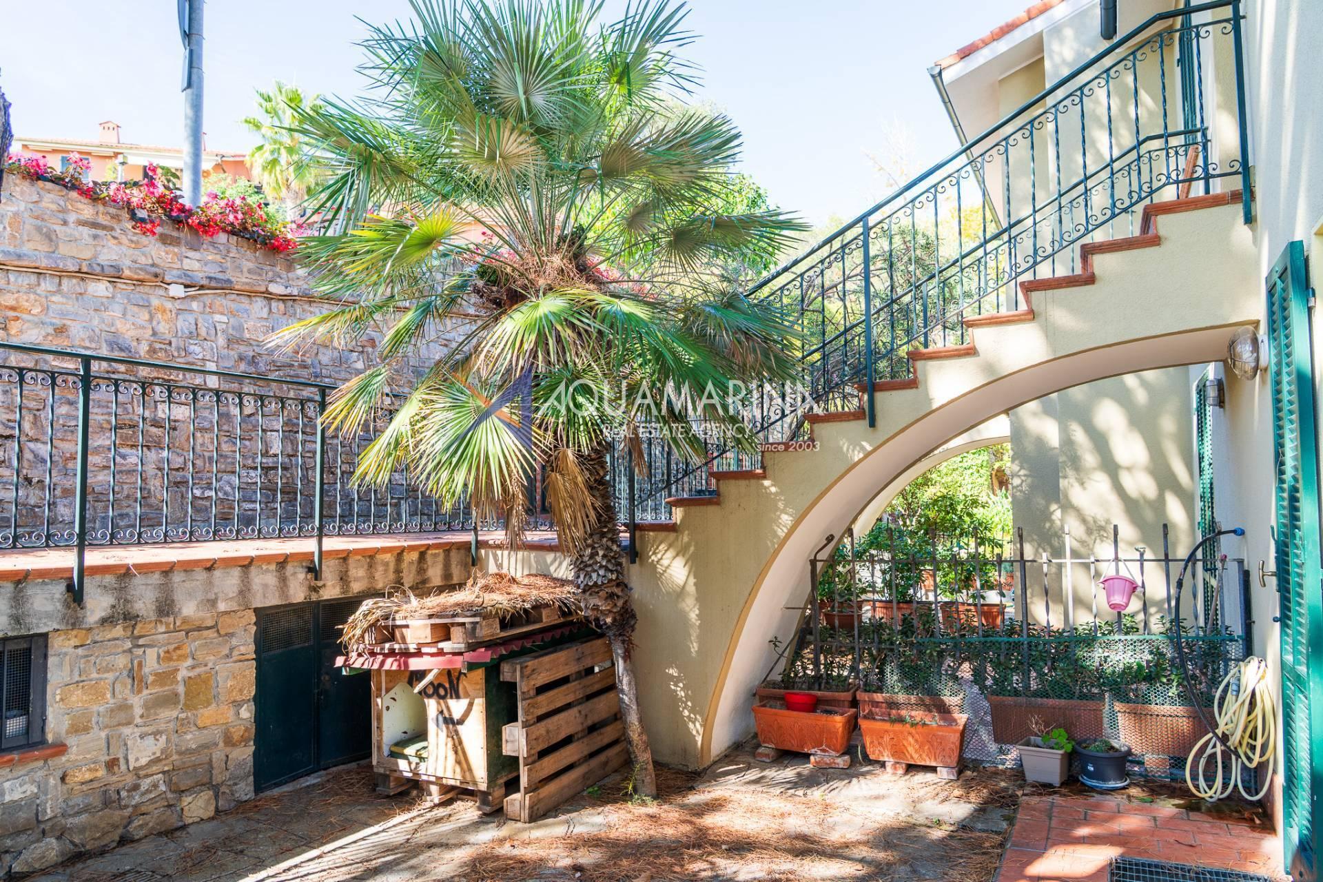 Ospedaletti Meerblick-Wohnung. In exklusiver Lage mit unvergleichlichem Meerblick, umgeben vom Meer und jahrhundertealten Strandkiefern, in einem Reihenhaus in der Wohnanlage Solenzara, bieten wir eine zweistöckige Wohnung, Erdgeschoss und Untergeschoss, mit zwei unabhängigen Eingängen, einem Garten und einer Terrasse mit Meerblick sowie Gemeinschaftsparkplätzen zum Verkauf an. Das Anwesen umfasst: Unabhängigen Zugang von der Strada Valdirodi; im Erdgeschoss führt eine Eingangshalle zu einem geräumigen und hellen Wohnzimmer mit doppelter Südausrichtung, einer Küche, einem Badezimmer, einem Abstellraum und einer Treppe, die in die untere Ebene führt; im Untergeschoss befinden sich ein Flur, drei Schlafzimmer, drei Badezimmer (zwei mit Fenstern) und ein privater Inneneingang von den Gemeinschaftsparkplätzen. Die Wohnung ist mit einer unabhängigen Erdgasheizung mit Heizkörpern und Warmwasser ausgestattet. Das Anwesen aus den 2000er Jahren ist in gutem Zustand und bezugsfertig. Lassen Sie sich diese Gelegenheit nicht entgehen!