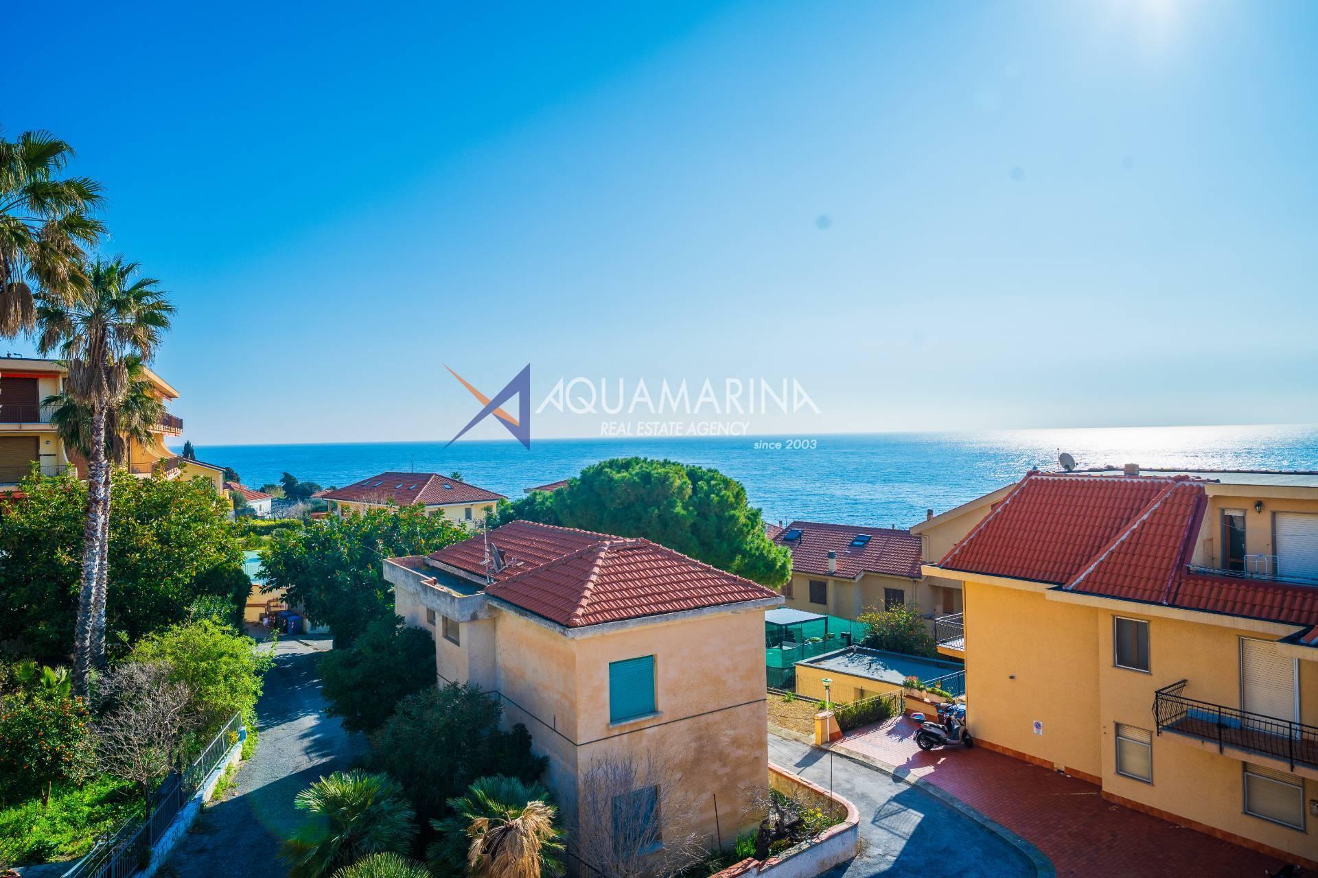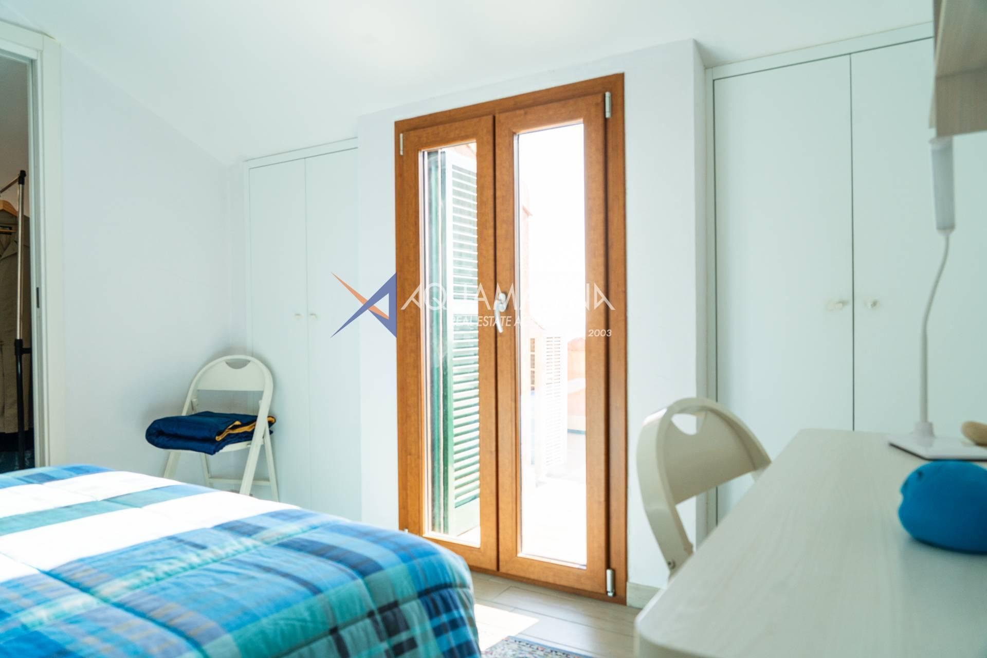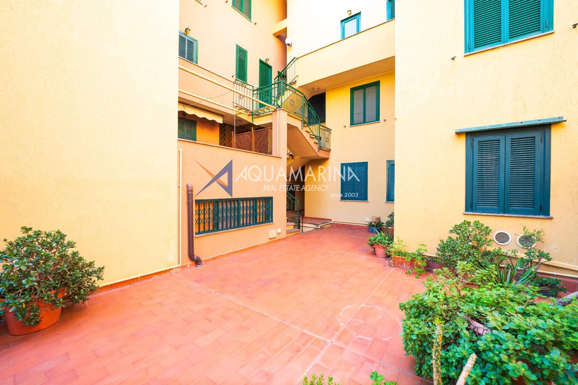 Wir präsentieren Ihnen eine exklusive Wohnung in einer eleganten Umgebung, nur 200 Meter vom Meer und dem berühmtesten Radweg Liguriens entfernt, der Imperia und Ospedaletti verbindet, sowie 800 Meter vom Zentrum von San Lorenzo al Mare. Diese Vierzimmerwohnung mit separatem Eingang erstreckt sich über zwei Ebenen: