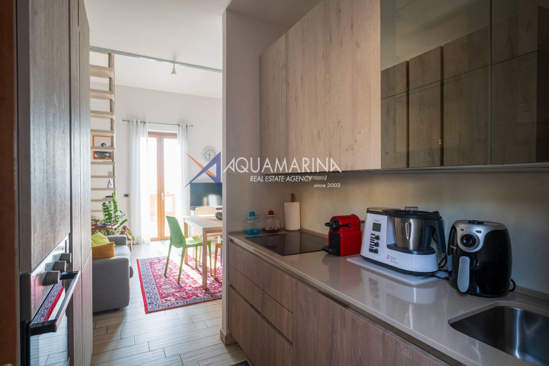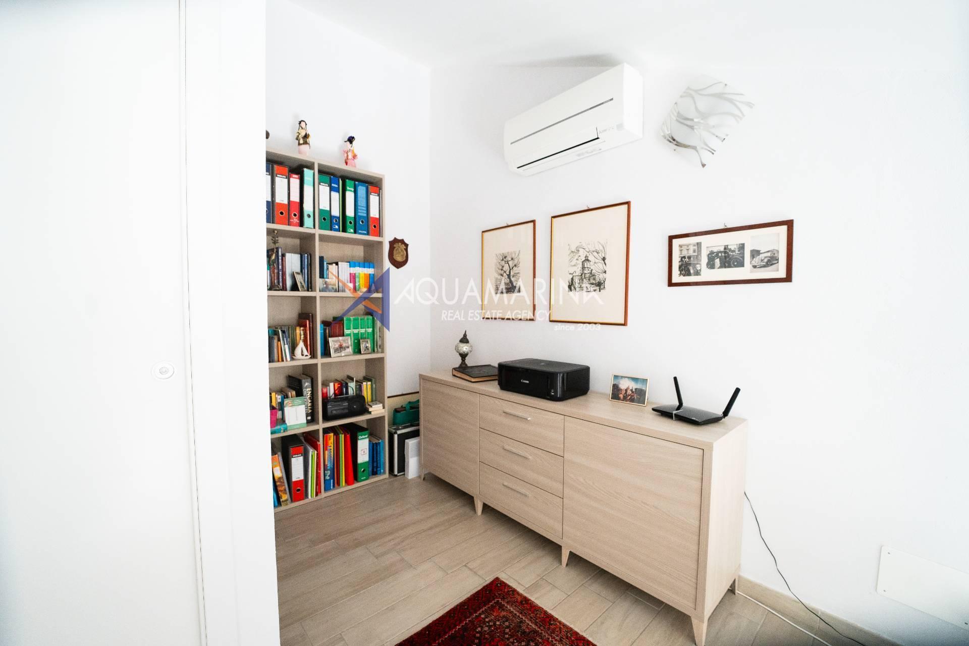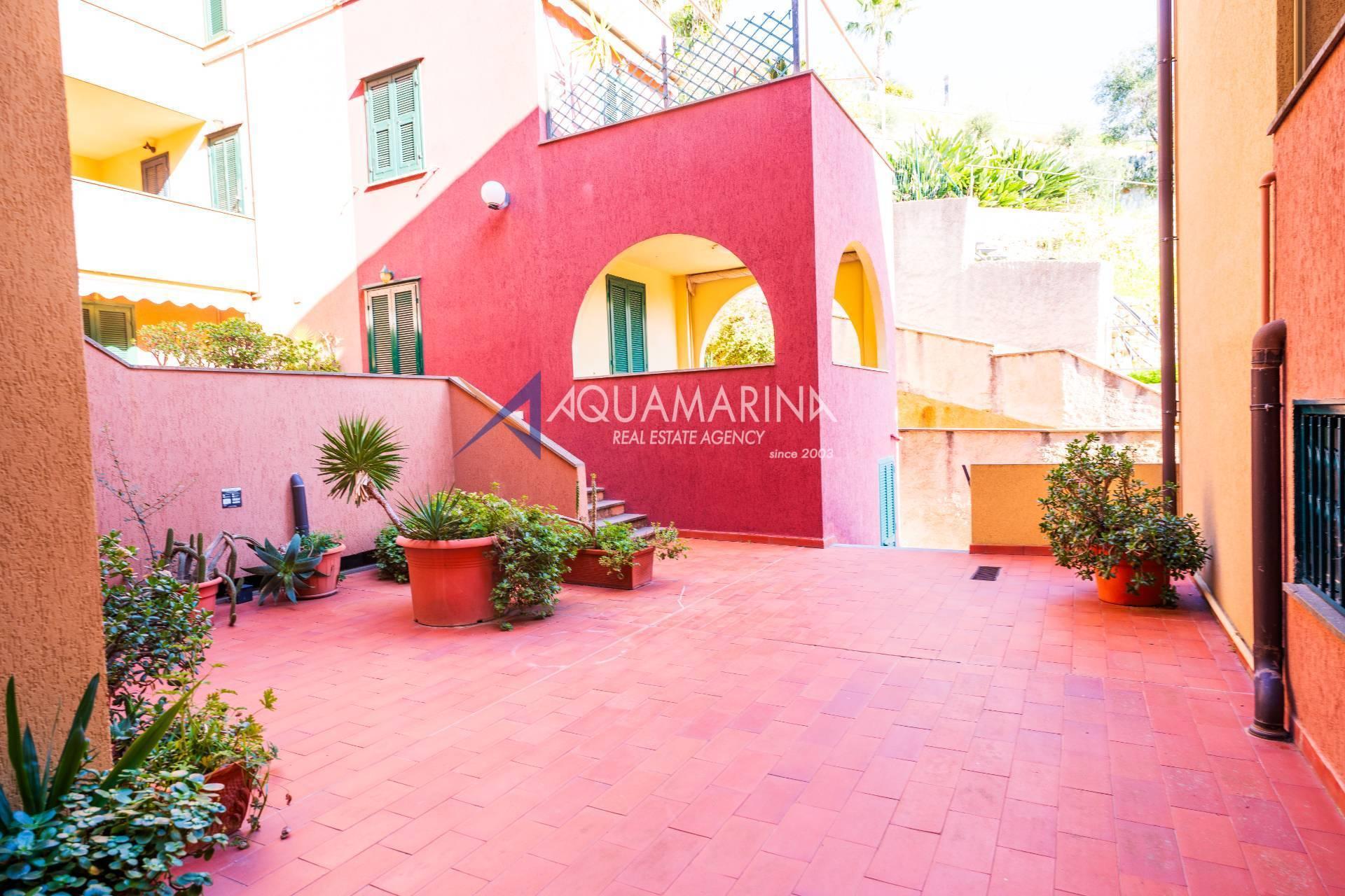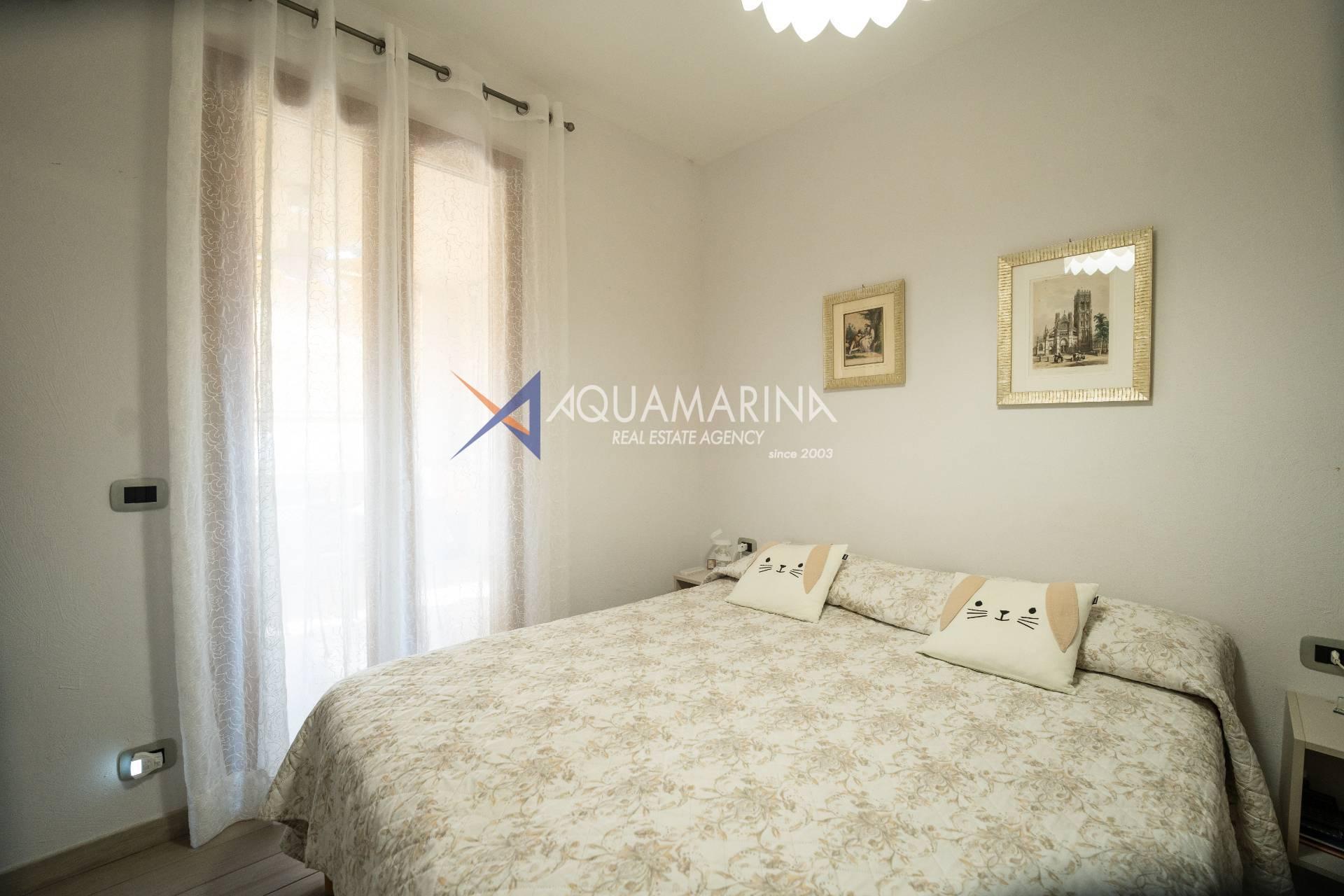 Wir präsentieren Ihnen eine exklusive Wohnung in einer eleganten Umgebung, nur 200 Meter vom Meer und dem berühmtesten Radweg Liguriens entfernt, der Imperia und Ospedaletti verbindet, sowie 800 Meter vom Zentrum von San Lorenzo al Mare. Diese Vierzimmerwohnung mit separatem Eingang erstreckt sich über zwei Ebenen: