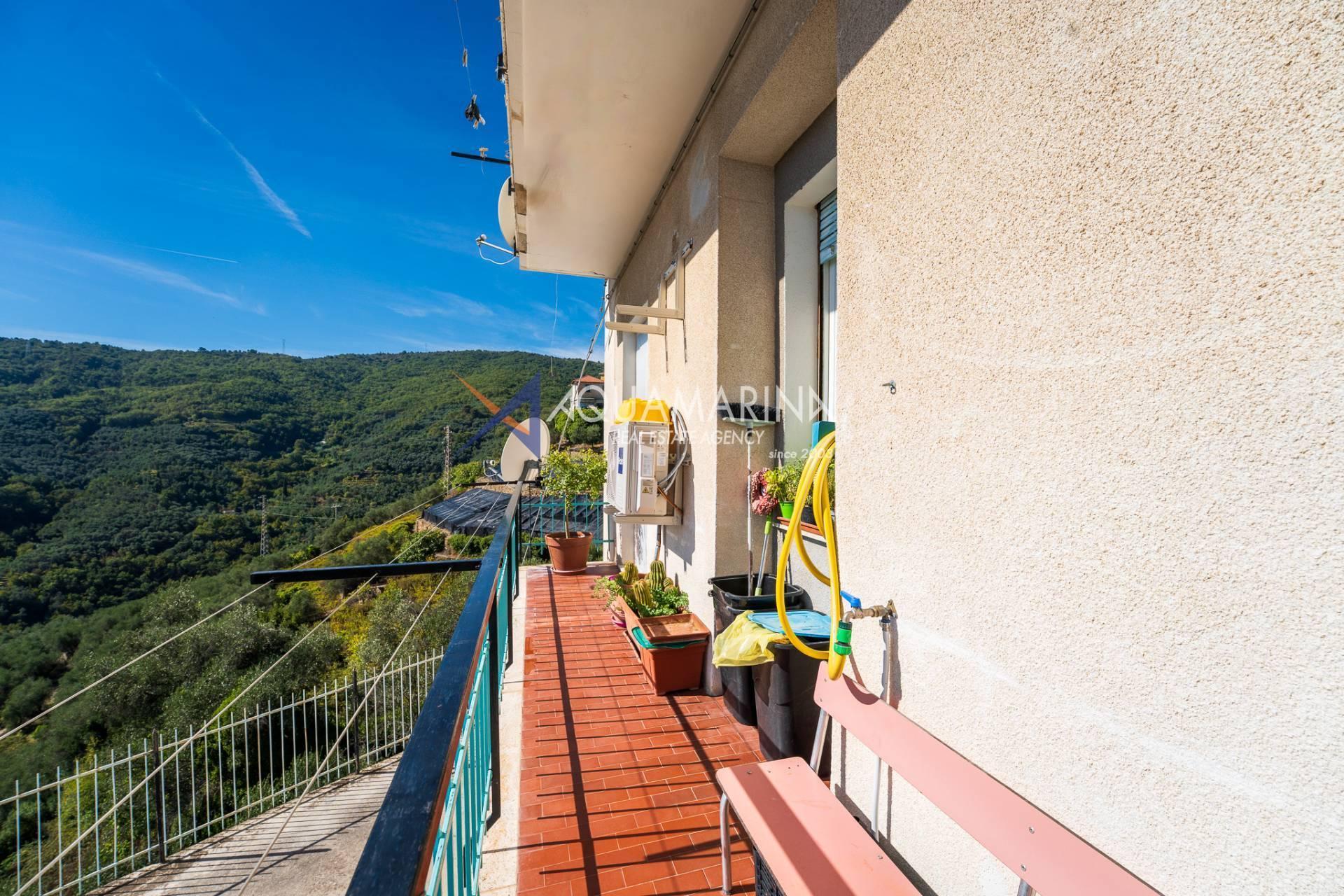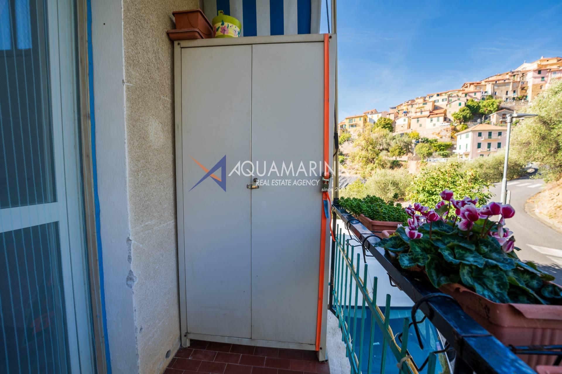 Pietrabruna Apartment mit Meerblick, gelegen im charmanten mittelalterlichen Dorf San Lorenzo al Mare, nur 9 Kilometer vom Meer entfernt. Diese geräumige Vierzimmerwohnung mit 95 m² (970 sq ft) bietet dreifache Ausrichtung. Komplett renoviert, bietet dieses Anwesen eine einzigartige Gelegenheit, in einer ruhigen und charmanten Umgebung zu leben. Die helle Wohnung besticht durch ihre Terrassen mit offenem Panoramablick auf das Meer und die Olivenhaine, die typisch für diese bezaubernde Gegend sind.