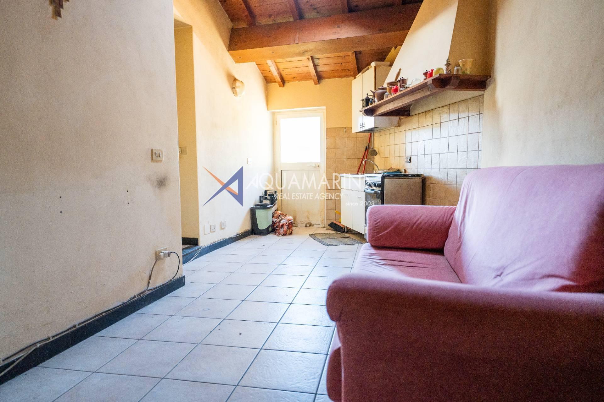 Pietrabruna, freistehendes Haus mit Garten und Meerblick. Im Herzen des charmanten mittelalterlichen Dorfes Pietrabruna bieten wir ein freistehendes Haus mit privatem Garten und Meerblick zum Verkauf an. Es befindet sich in einer charakteristischen historischen Gasse. Die Lage ist ideal für alle, die ein authentisches und ruhiges Ambiente suchen, nur 9 km von den Stränden von San Lorenzo al Mare entfernt. Das helle Haus besticht durch seinen privaten Garten mit freiem Panoramablick, der sich vom Dorf bis zum Meer erstreckt und die typischen Olivenhaine der Region einschließt. Vor dem Eingang befindet sich ein privater Innenhof. Das Haus erstreckt sich über zwei Etagen: Im Erdgeschoss befinden sich eine Eingangshalle, die in ein Wohnzimmer mit offener Küche, ein Badezimmer, zwei Schlafzimmer und direkten Zugang zum Garten führt. Im Obergeschoss befindet sich ein weiterer Raum mit faszinierenden mittelalterlichen Architekturelementen, der sich ideal als Taverne, Arbeitszimmer oder Mehrzweckraum eignet. Die Gesamtfläche beträgt ca. 100 Quadratmeter, zuzüglich eines 30 Quadratmeter großen Gartens. Das Dach wurde kürzlich erneuert und durch freiliegende Dachsparren aufgewertet, die dem Haus zusätzlichen Charakter verleihen. Pietrabruna ist ein typisch ligurisches Dorf, bekannt für seine Oliven und die Produktion von nativem Olivenöl extra, eingebettet in eine charmante und traditionsreiche Landschaft. Es eignet sich ideal als Hauptwohnsitz, Ferienhaus, Bed & Breakfast oder als Kapitalanlage. Eine einzigartige Gelegenheit für alle, die den authentischen Charme eines ligurischen Dorfes erleben möchten, ohne auf die Annehmlichkeiten der Meeresnähe verzichten zu müssen.