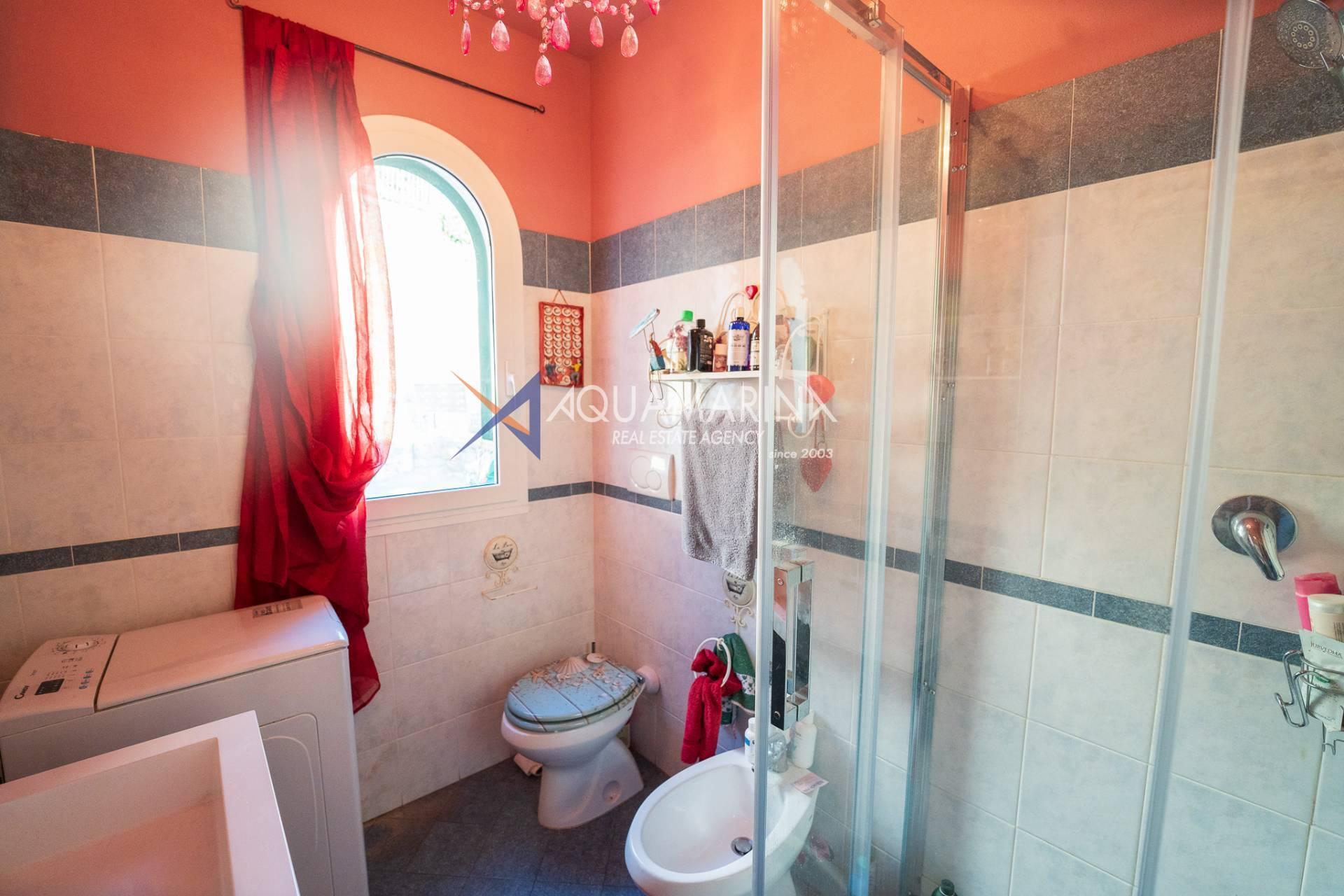 Der Eingang öffnet sich zu einem hellen Wohnbereich mit Küchenzeile, gefolgt von einem Schlafzimmer mit Doppelbett, einem Badezimmer mit Fenster und zwei großen Terrassen mit Meerblick, die sich ideal zum Entspannen oder Essen im Freien eignen. Das Anwesen verfügt außerdem über einen praktischen Keller und die Möglichkeit, ein oder mehrere Autos auf den Gemeinschaftsflächen zu parken.
