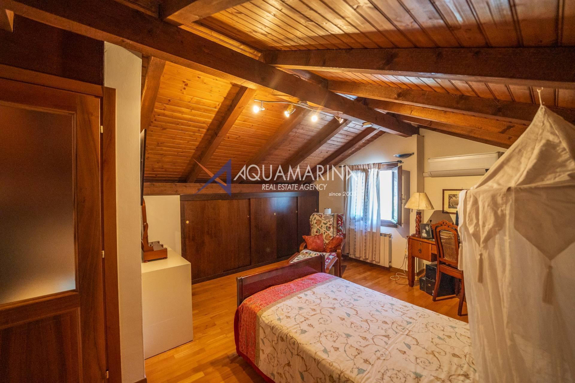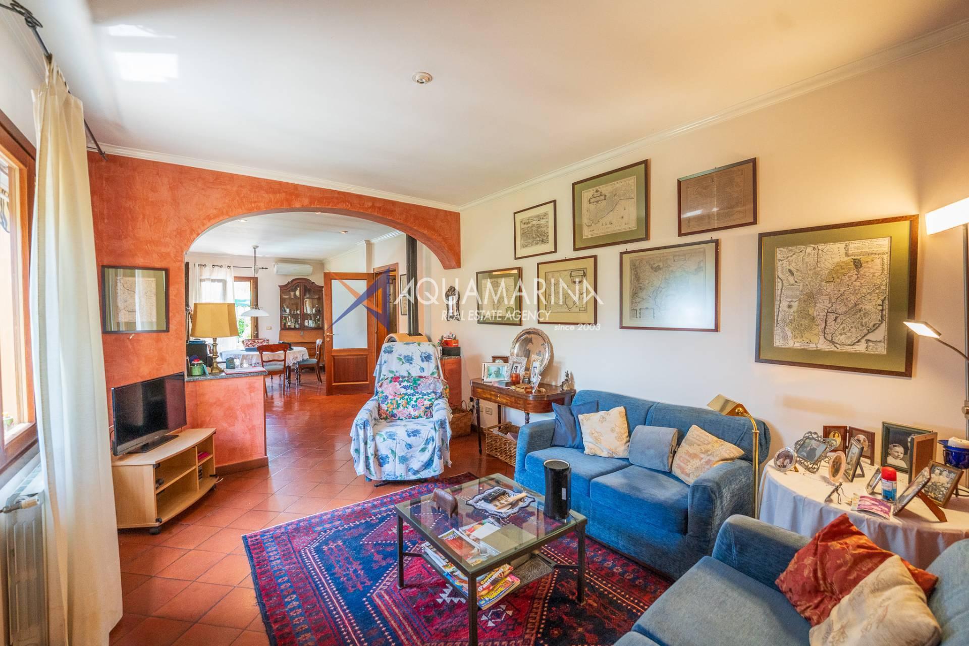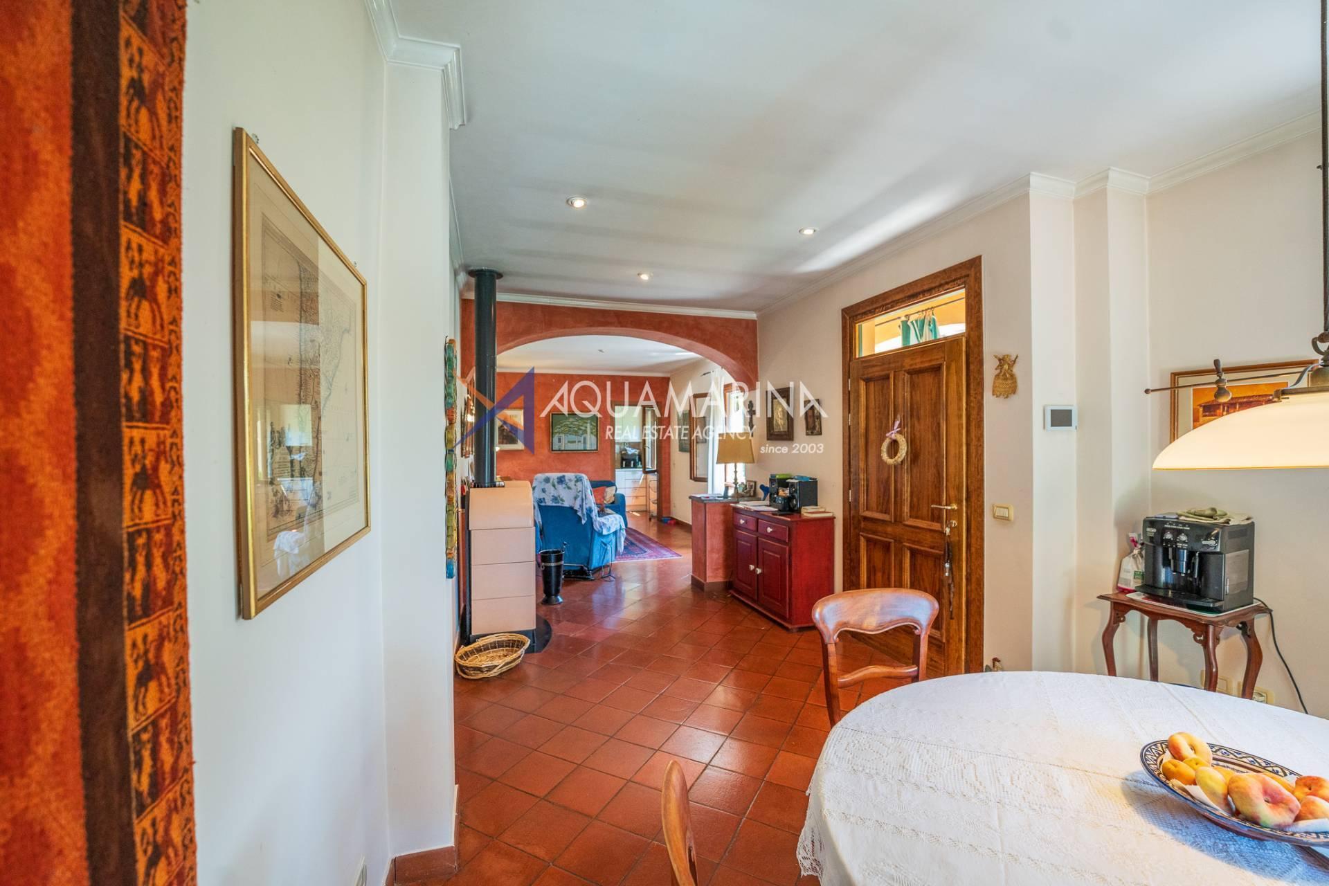 Das Anwesen befindet sich in ausgezeichnetem Zustand und ist von einem großen Grundstück mit einem Olivenhain, Obstbäumen, einem gepflegten Garten und einem herrlichen Panorama-Swimmingpool umgeben.