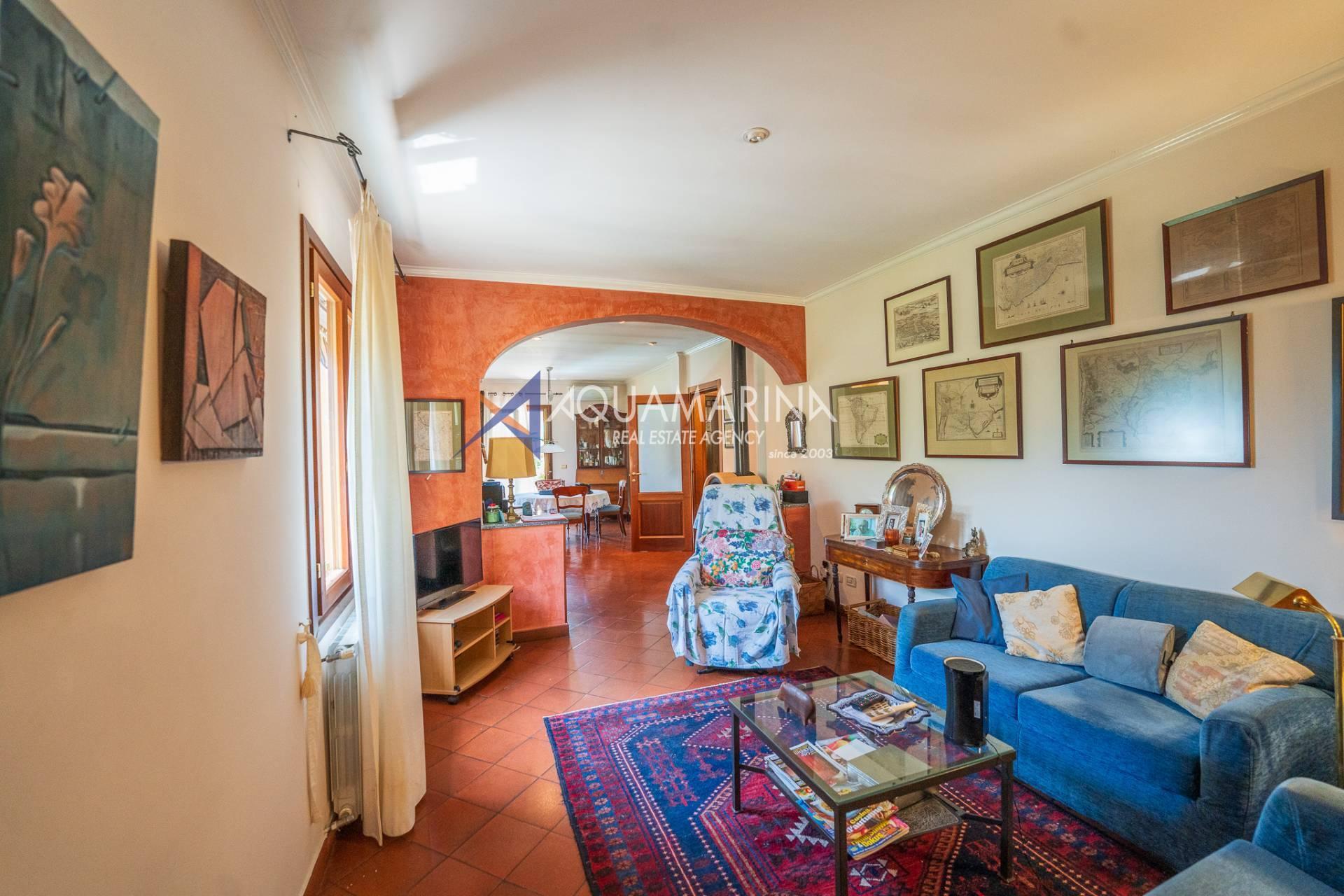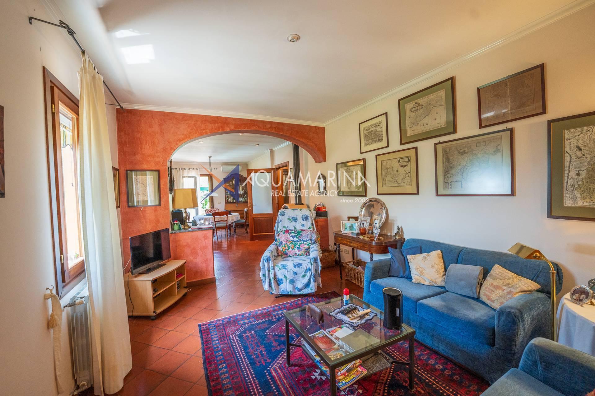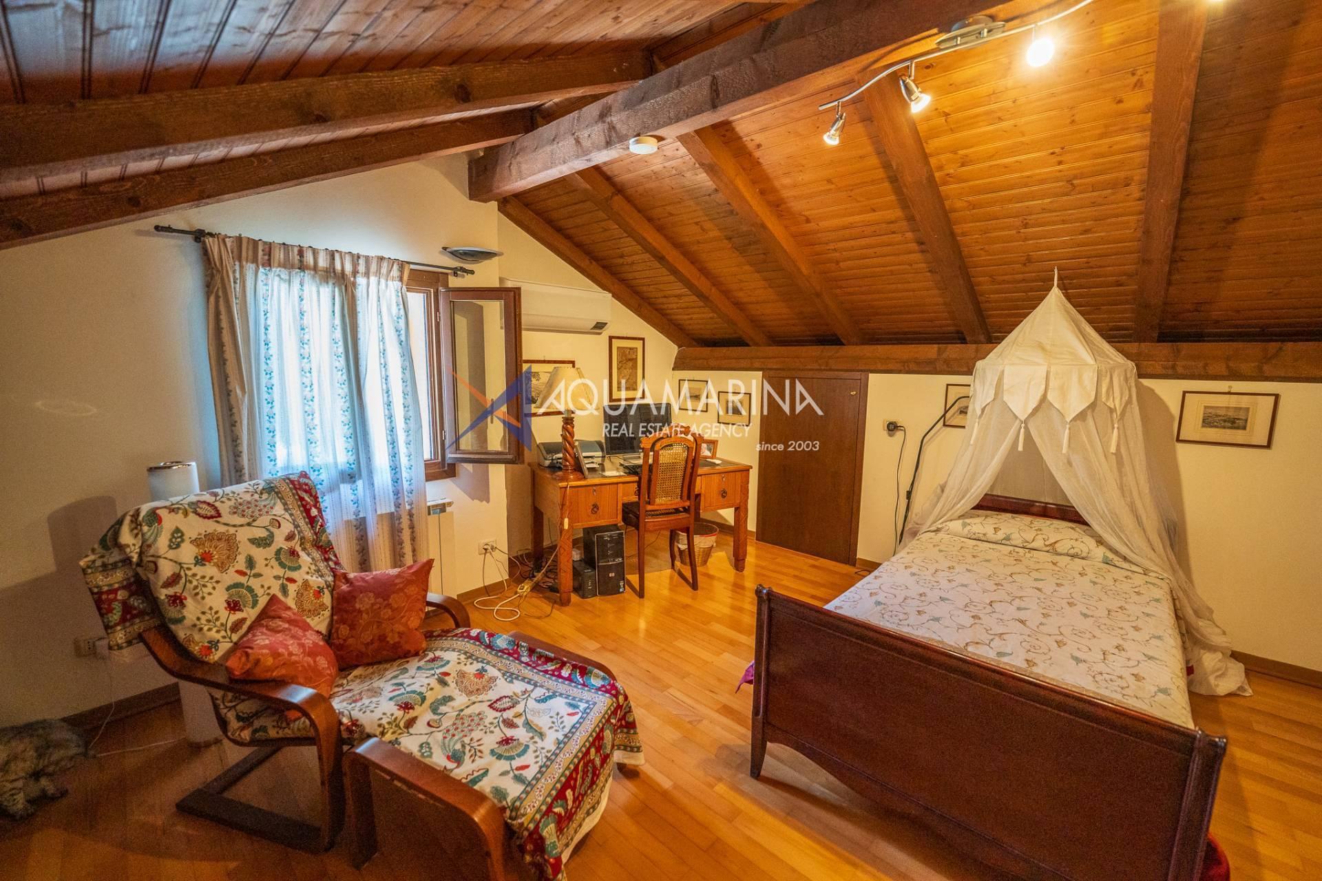 Das Anwesen befindet sich in ausgezeichnetem Zustand und ist von einem großen Grundstück mit einem Olivenhain, Obstbäumen, einem gepflegten Garten und einem herrlichen Panorama-Swimmingpool umgeben.