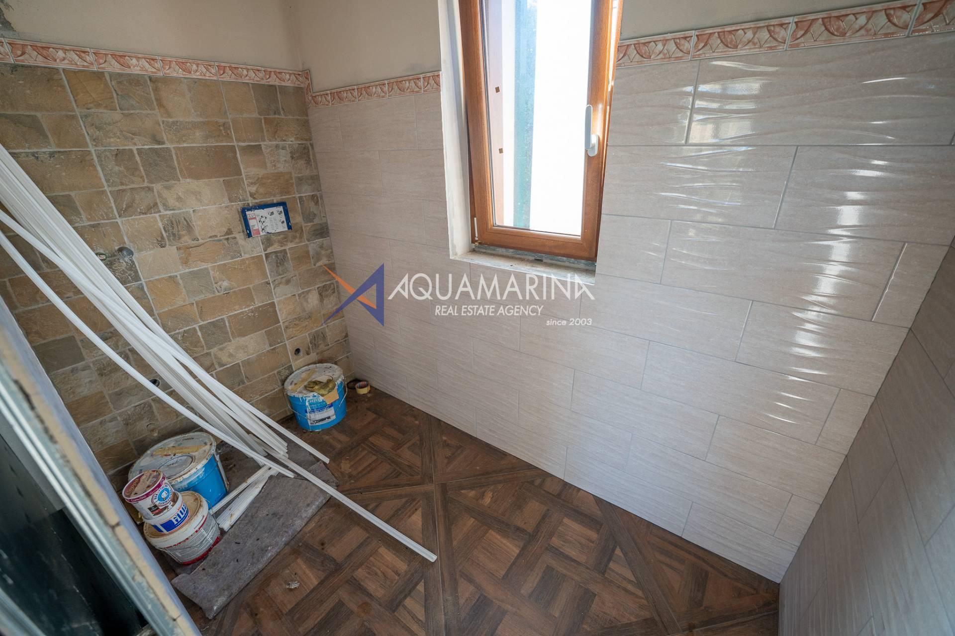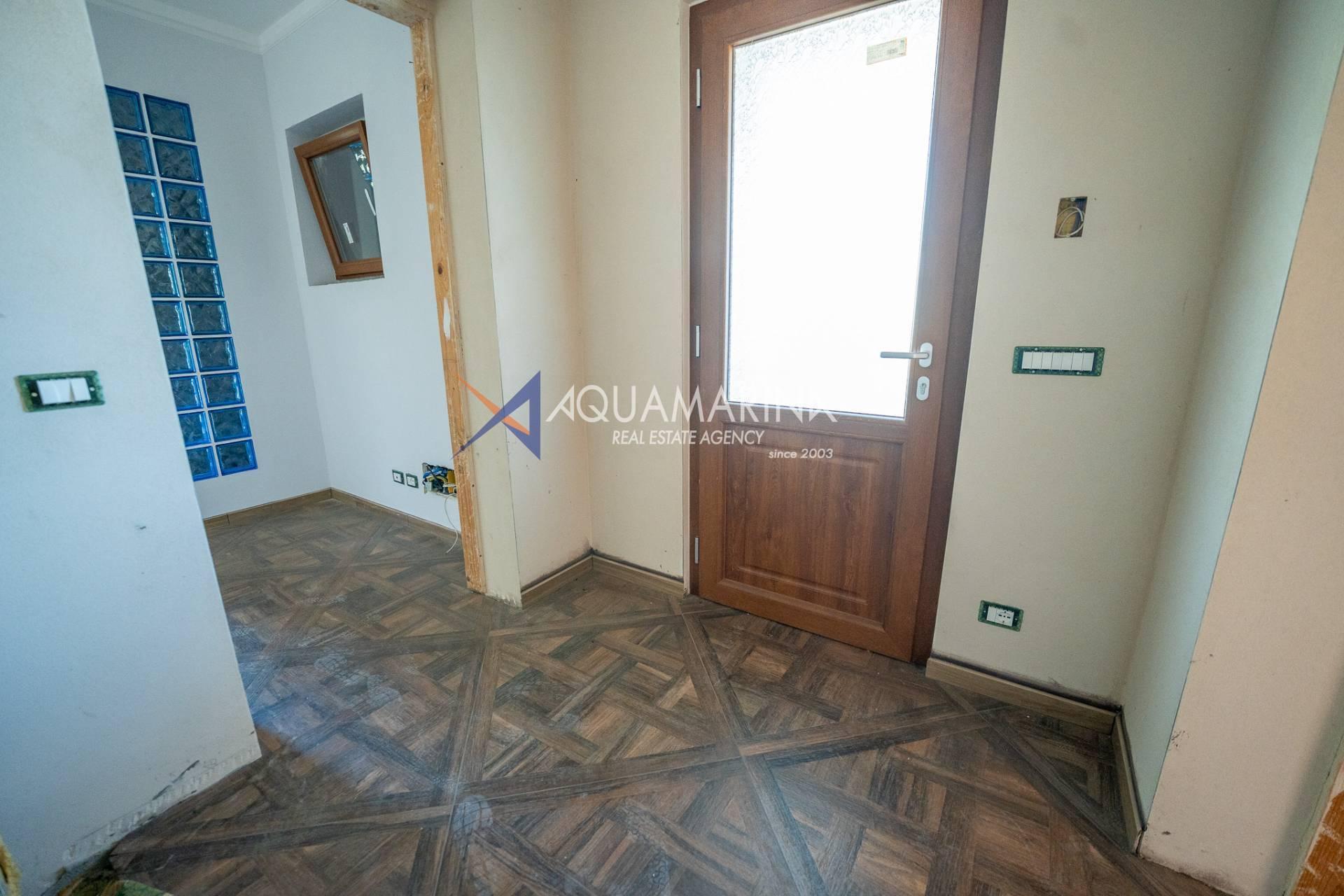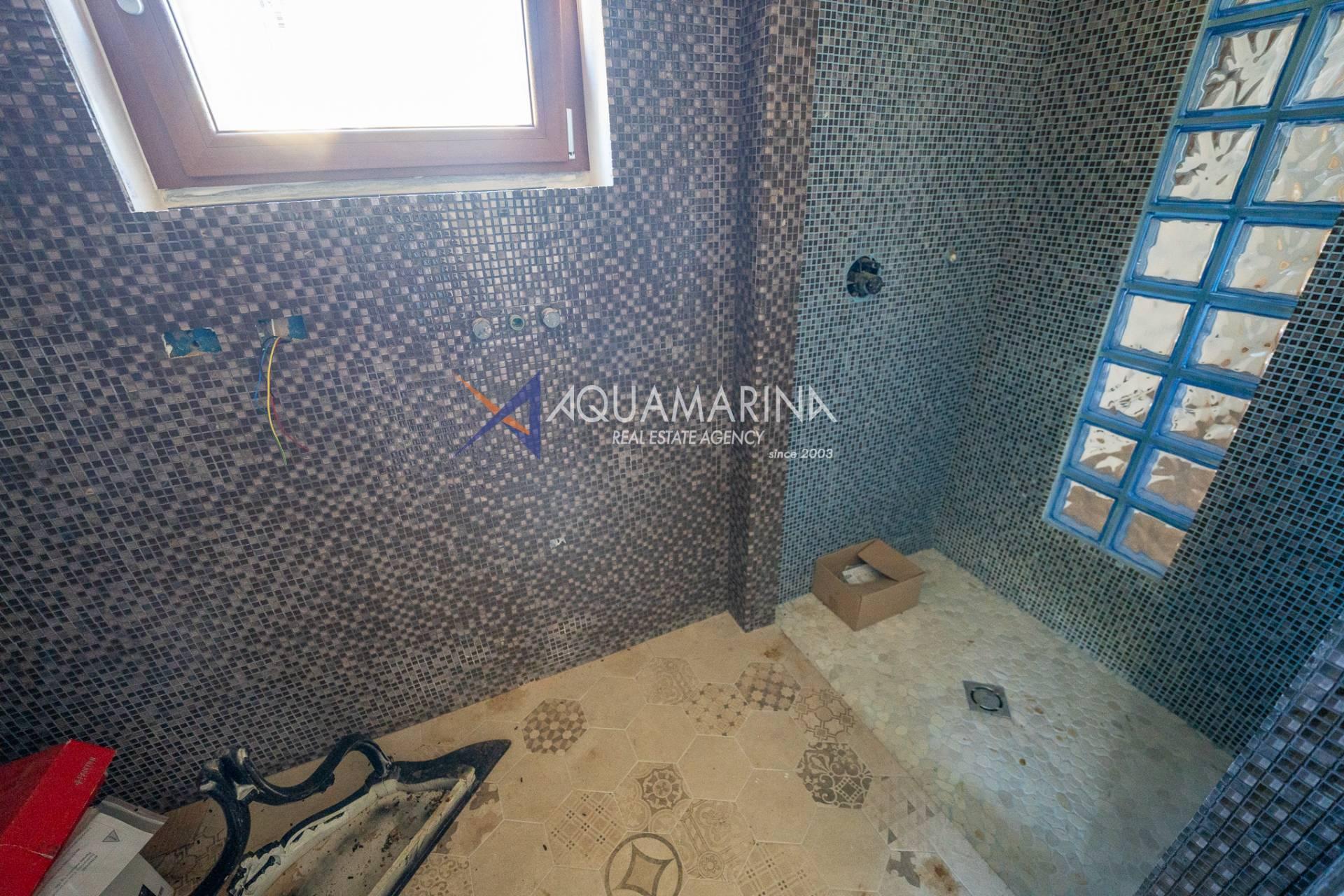 Das Haus öffnet sich zu einem hellen Wohnzimmer, das mit einer Wohnküche verbunden ist, die Funktionalität und Ästhetik vereint. Der Schlafbereich umfasst ein großzügiges Doppelzimmer und zwei Badezimmer, die beide mit hochwertigen Materialien ausgestattet sind.