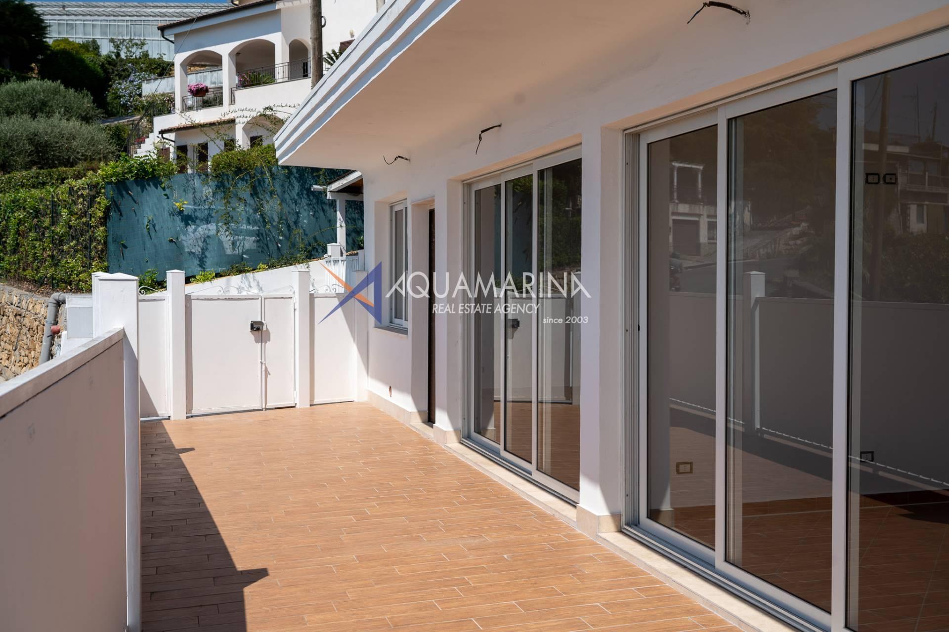 Wenn wir die Außentreppe hinaufgehen, finden wir eine riesige Terrasse mit Meerblick und einen privaten Garten von etwa 500 Metern.