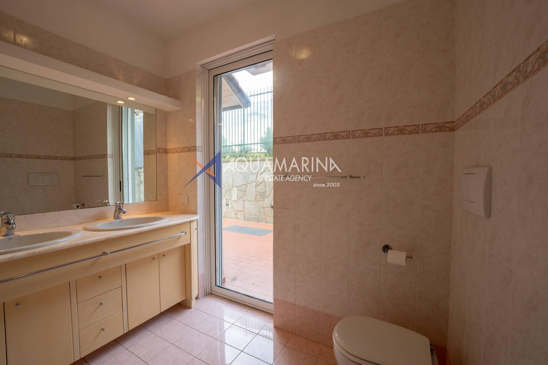 Die elegant eingerichtete Wohnung besteht aus Eingangshalle, Wohnzimmer, Küche, drei Schlafzimmern, zwei Badezimmern, drittem Badezimmer mit Flur und Schlafzimmern im Untergeschoss, schönem privaten Garten von 250 m2 mit Veranda und direktem Zugang zu einer großen Garage.