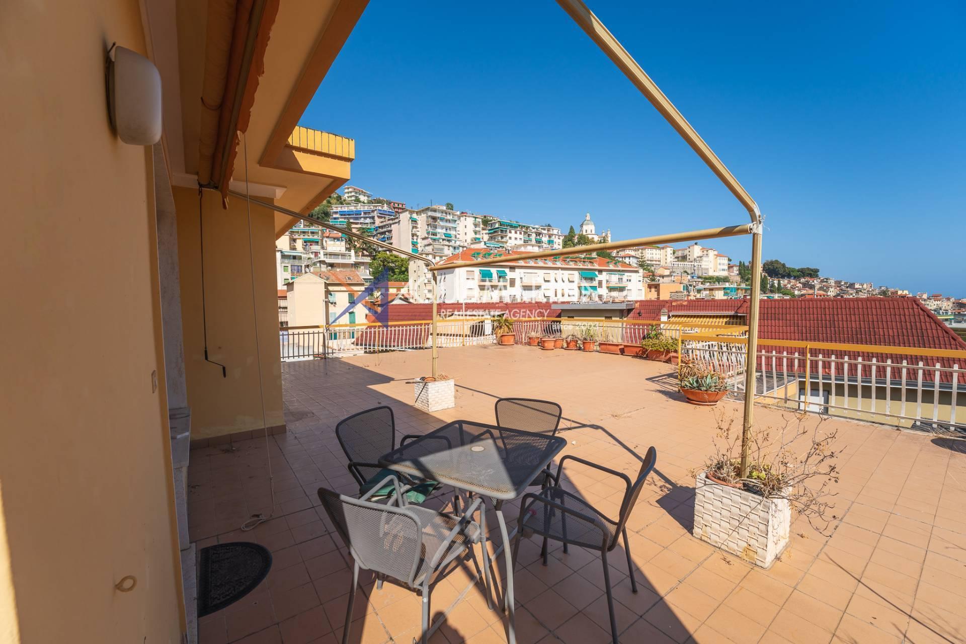 Sanremo, nur wenige Minuten vom Stadtzentrum und den Stränden entfernt, bieten wir ein geräumiges Penthouse mit einer herrlichen Terrasse mit Meerblick zum Verkauf an.