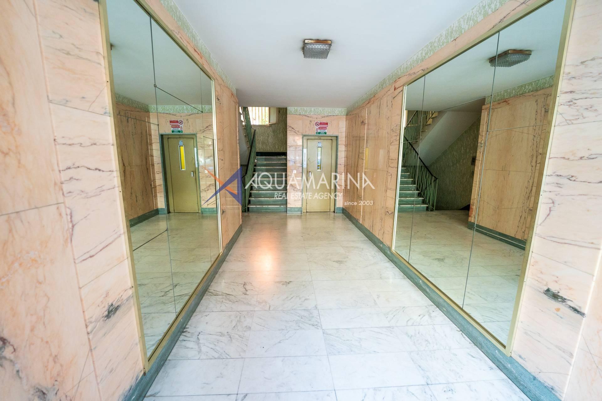 Die Immobilie wird durch eine große Terrasse von etwa 120 Quadratmetern mit einem herrlichen, freien Blick auf das Meer, zwei kleinere Balkone, einen Keller und eine geräumige Garage ergänzt.