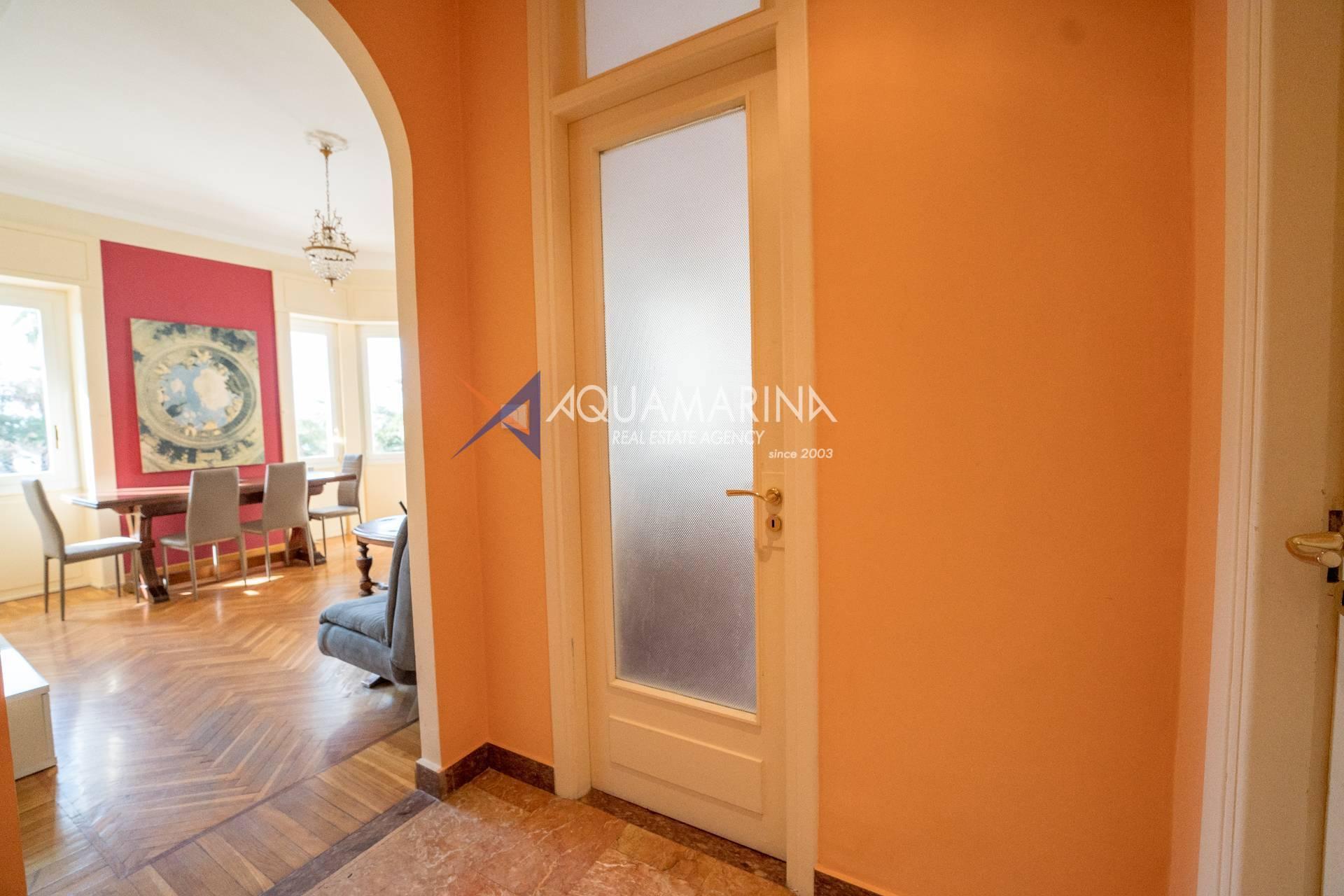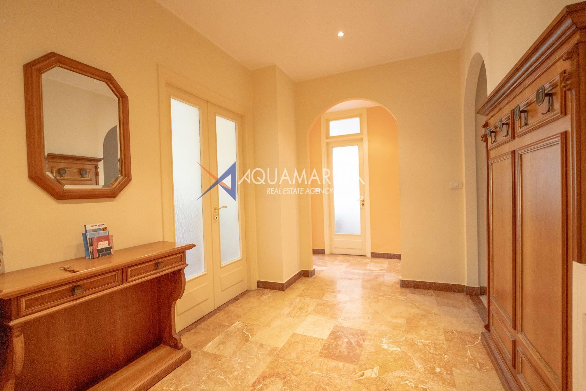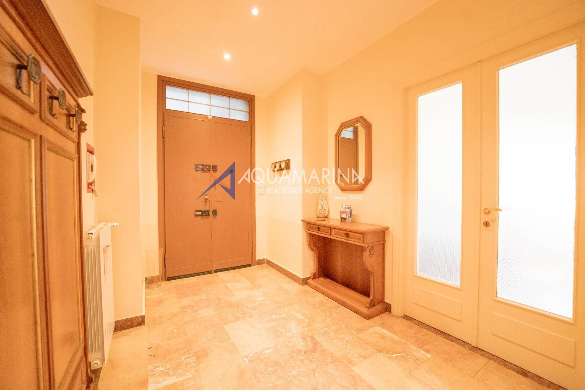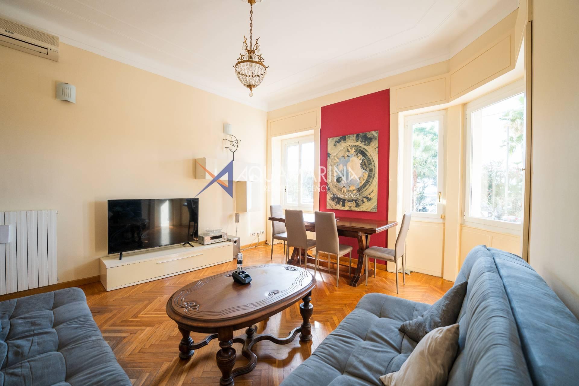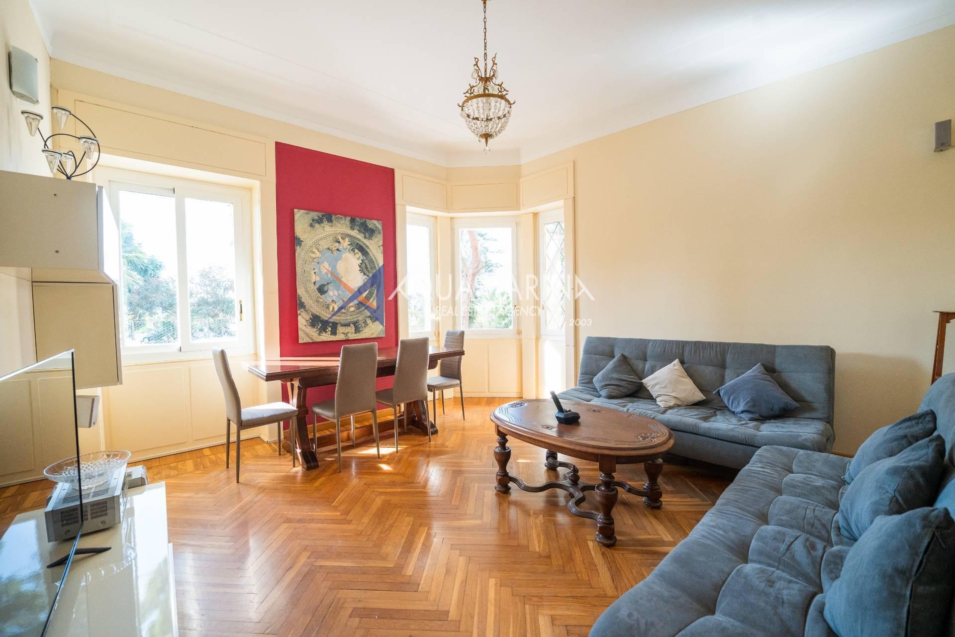 Sanremo: Wohnung mit Blick aufs Meer und den Radweg. Wir verkaufen eine repräsentative, renovierte Wohnung am Corso Orazio Raimondo mit Blick aufs Meer, den Radweg und Porto Sole. Wir befinden uns in einer der renommiertesten Gegenden von Sanremo, direkt im Zentrum und mit allen Annehmlichkeiten in unmittelbarer Nähe, sodass Sie keine öffentlichen Verkehrsmittel benötigen. Die Wohnung befindet sich in einem stattlichen, eleganten und repräsentativen Gebäude mit Video-Gegensprechanlage, elektrischem Tor und einem durch eine Schranke abgeschirmten Gemeinschaftsparkplatz. Die Fassadensanierung wurde gerade abgeschlossen. Die Wohnung befindet sich im Hochparterre und verfügt über zwei Eingänge, sodass sie in zwei Wohnungen umgewandelt werden kann. Die Innenausstattung ist hochwertig, mit Marmor- und Parkettböden, und die Außenfenster bestehen aus doppelt verglastem Aluminium. Der Eingang öffnet sich zu einem großen Flur, einem Wohnzimmer mit Doppeltüren, einem weiteren großen Wohnzimmer mit Erkerfenstern, einem Badezimmer mit Fenster und Badewanne sowie einem Schlafzimmer. Weiter geht es zu einem weiteren Flur mit einem großen Doppelschrank, einem großen Schlafzimmer mit Zugang zum Außenbalkon, einem Badezimmer mit Fenster und Dusche, einer Wohnküche mit Glastüren zum Innenhofbalkon und einer Waschküche auf dem Balkon, die in ein drittes Badezimmer umgewandelt werden kann. Die Wohnung ist nach Süden ausgerichtet und bietet viel Tageslicht und Meerblick. Sie verfügt über eine unabhängige Heizkörperheizung und eine Klimaanlage für den Sommer. Auf Anfrage stehen außerdem ein Keller und ein Parkplatz (separat erhältlich) zur Verfügung.