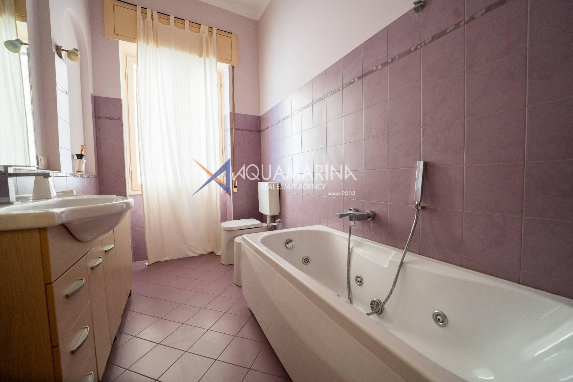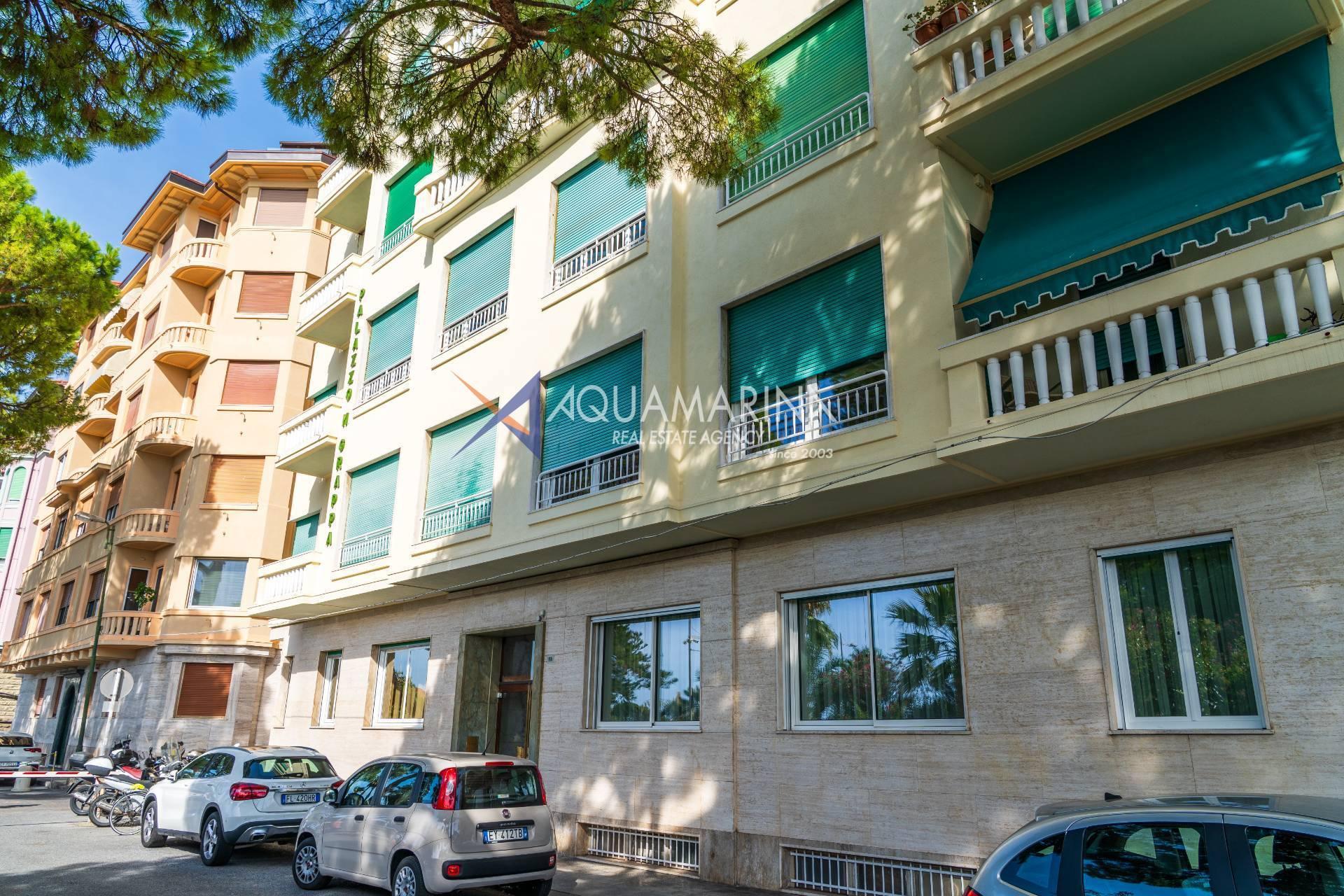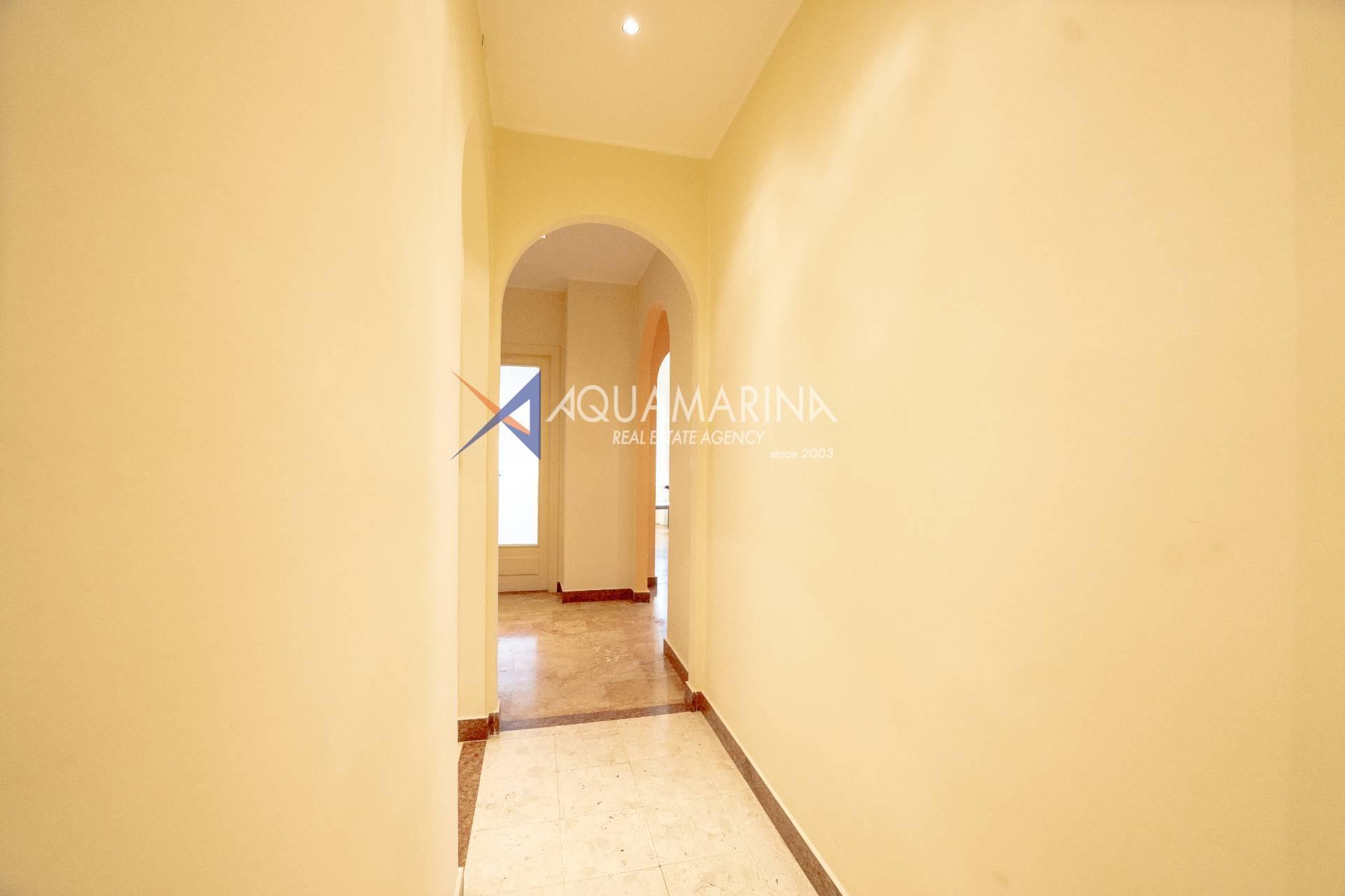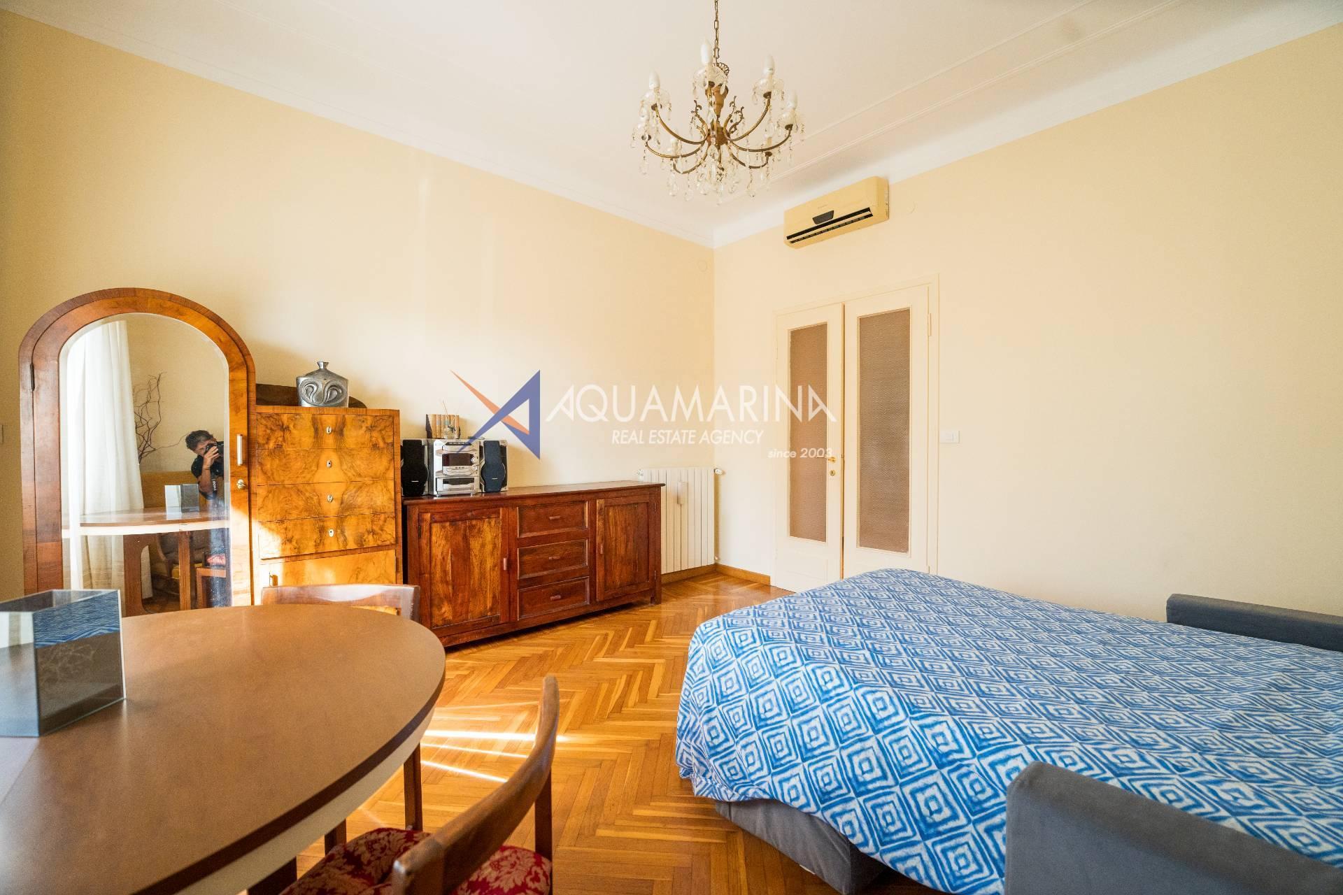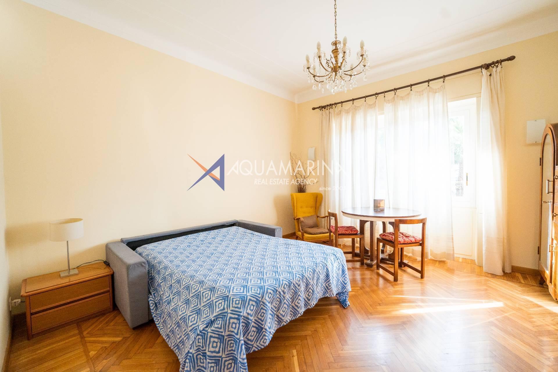 Sanremo: Wohnung mit Blick aufs Meer und den Radweg. Wir verkaufen eine repräsentative, renovierte Wohnung am Corso Orazio Raimondo mit Blick aufs Meer, den Radweg und Porto Sole. Wir befinden uns in einer der renommiertesten Gegenden von Sanremo, direkt im Zentrum und mit allen Annehmlichkeiten in unmittelbarer Nähe, sodass Sie keine öffentlichen Verkehrsmittel benötigen. Die Wohnung befindet sich in einem stattlichen, eleganten und repräsentativen Gebäude mit Video-Gegensprechanlage, elektrischem Tor und einem durch eine Schranke abgeschirmten Gemeinschaftsparkplatz. Die Fassadensanierung wurde gerade abgeschlossen. Die Wohnung befindet sich im Hochparterre und verfügt über zwei Eingänge, sodass sie in zwei Wohnungen umgewandelt werden kann. Die Innenausstattung ist hochwertig, mit Marmor- und Parkettböden, und die Außenfenster bestehen aus doppelt verglastem Aluminium. Der Eingang öffnet sich zu einem großen Flur, einem Wohnzimmer mit Doppeltüren, einem weiteren großen Wohnzimmer mit Erkerfenstern, einem Badezimmer mit Fenster und Badewanne sowie einem Schlafzimmer. Weiter geht es zu einem weiteren Flur mit einem großen Doppelschrank, einem großen Schlafzimmer mit Zugang zum Außenbalkon, einem Badezimmer mit Fenster und Dusche, einer Wohnküche mit Glastüren zum Innenhofbalkon und einer Waschküche auf dem Balkon, die in ein drittes Badezimmer umgewandelt werden kann. Die Wohnung ist nach Süden ausgerichtet und bietet viel Tageslicht und Meerblick. Sie verfügt über eine unabhängige Heizkörperheizung und eine Klimaanlage für den Sommer. Auf Anfrage stehen außerdem ein Keller und ein Parkplatz (separat erhältlich) zur Verfügung.