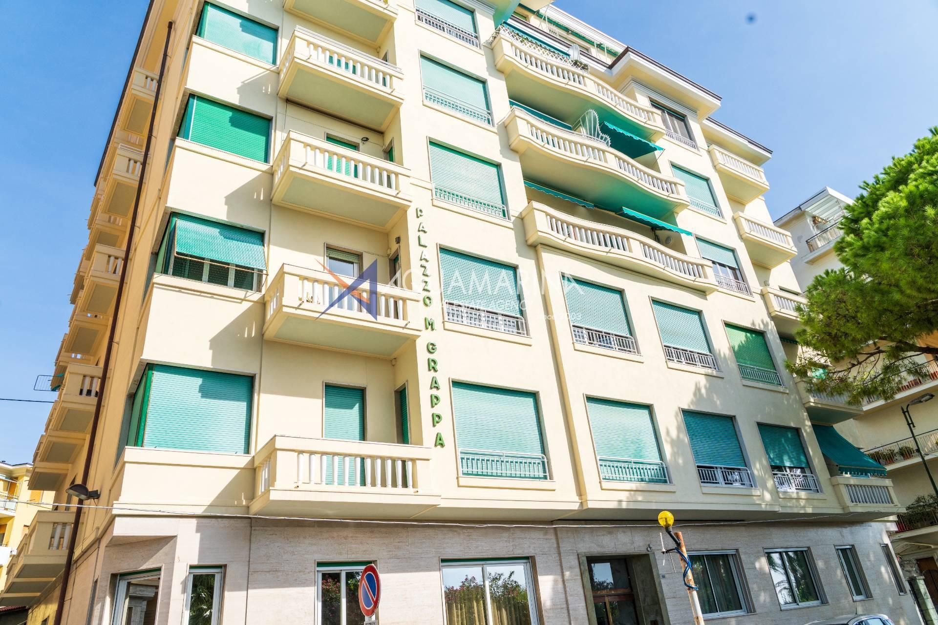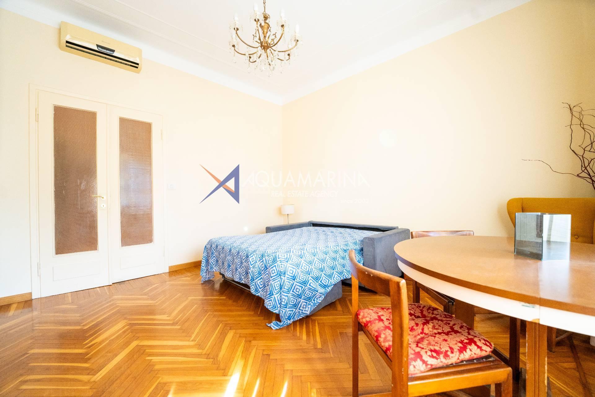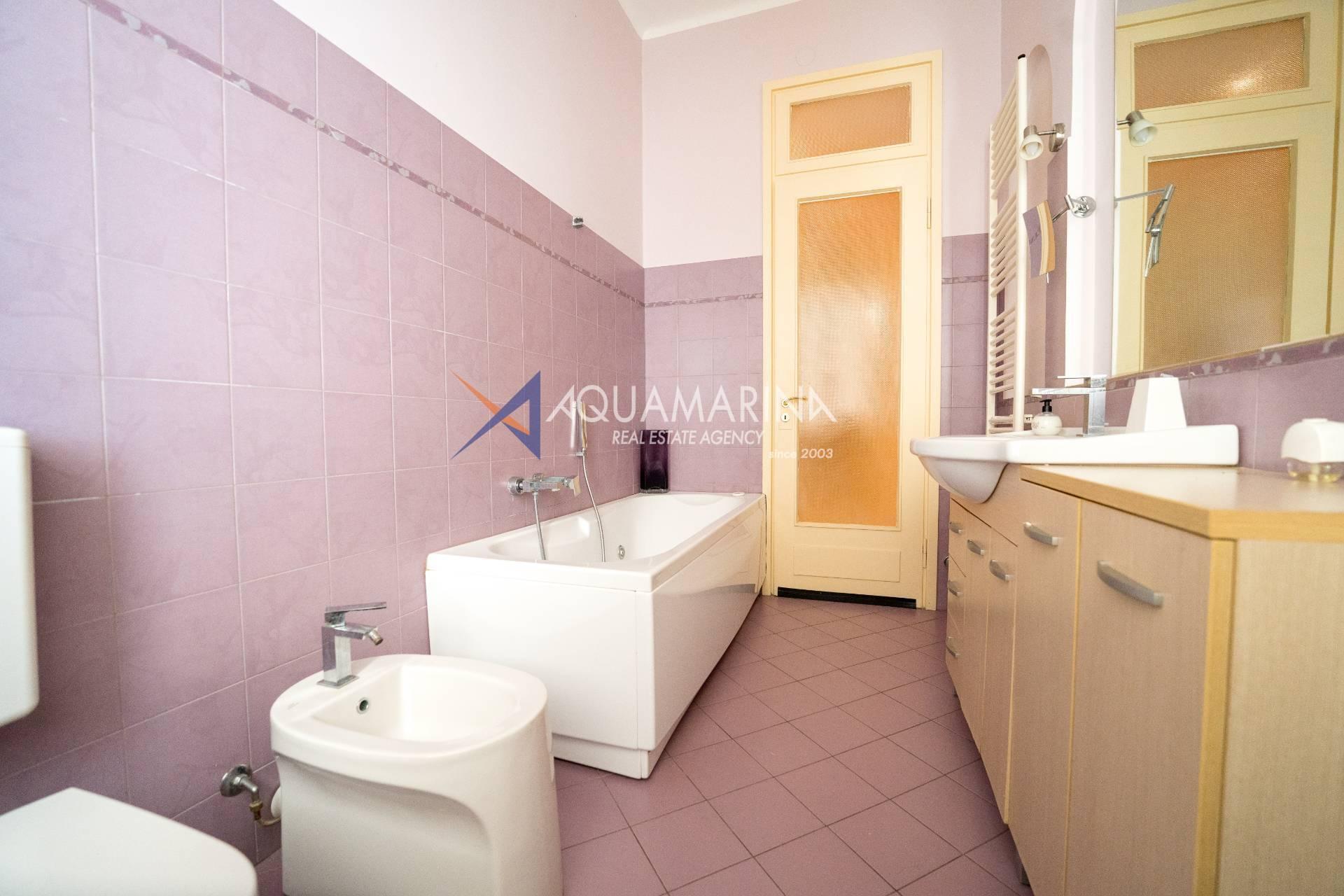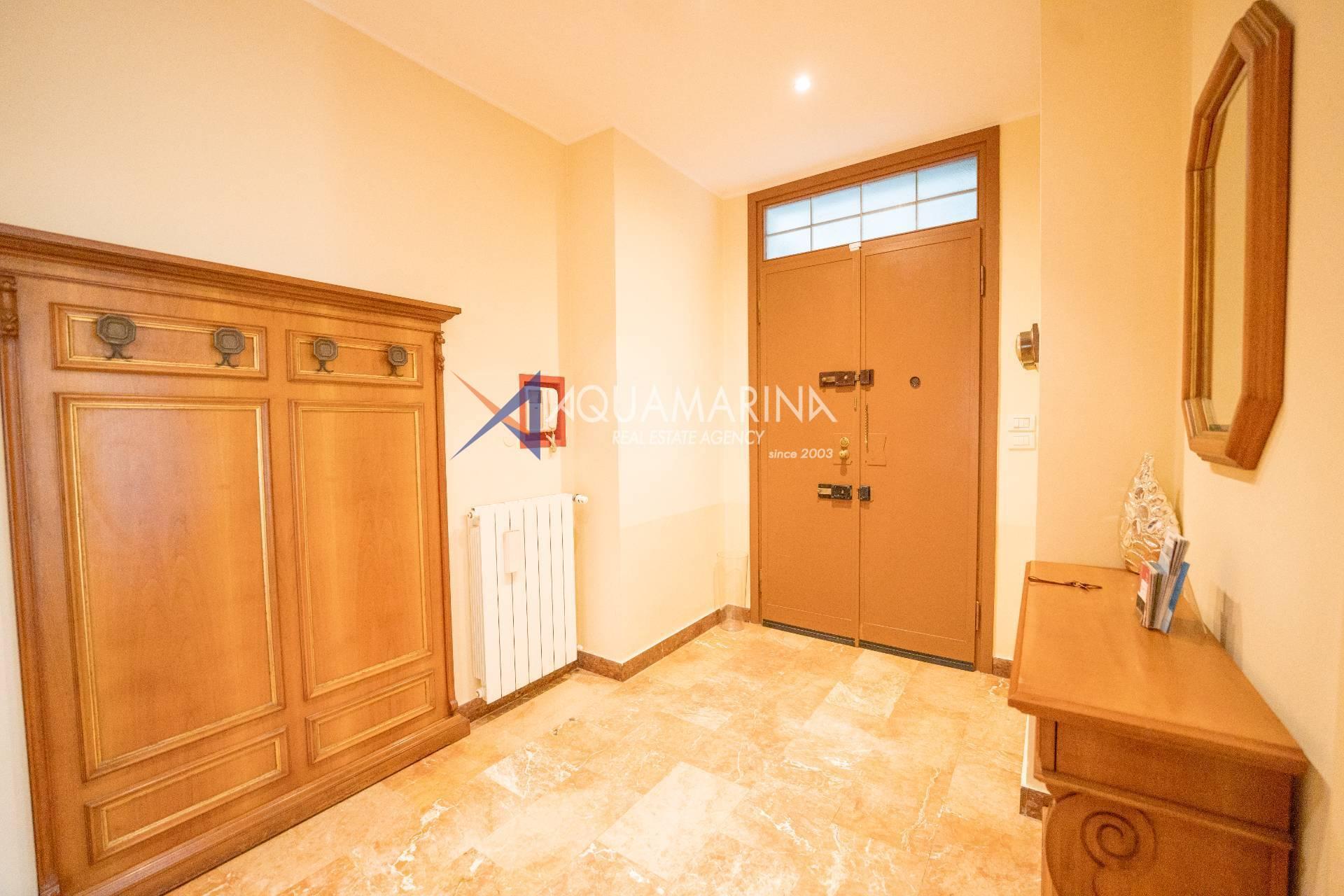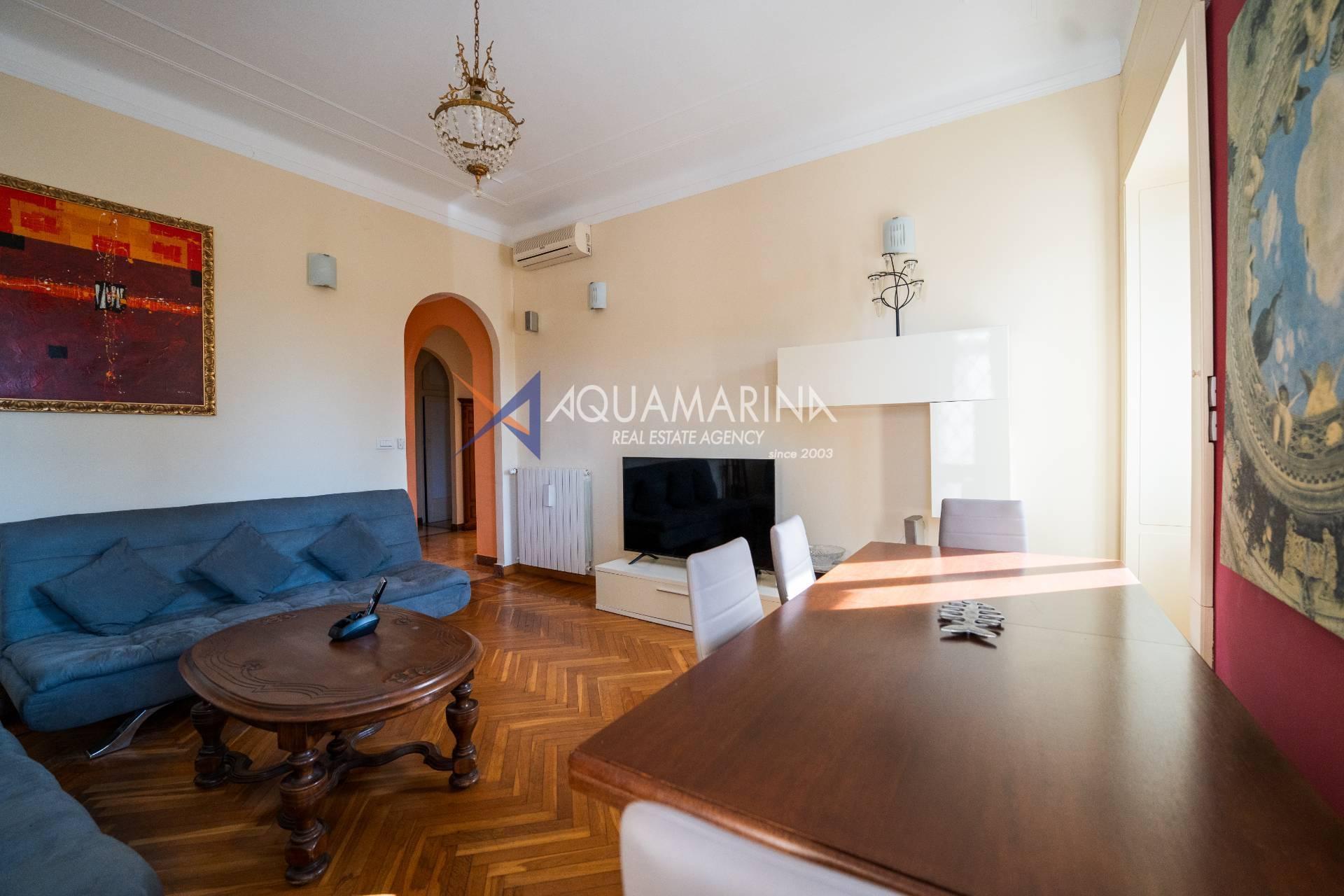 Sanremo: Wohnung mit Blick aufs Meer und den Radweg. Wir verkaufen eine repräsentative, renovierte Wohnung am Corso Orazio Raimondo mit Blick aufs Meer, den Radweg und Porto Sole. Wir befinden uns in einer der renommiertesten Gegenden von Sanremo, direkt im Zentrum und mit allen Annehmlichkeiten in unmittelbarer Nähe, sodass Sie keine öffentlichen Verkehrsmittel benötigen. Die Wohnung befindet sich in einem stattlichen, eleganten und repräsentativen Gebäude mit Video-Gegensprechanlage, elektrischem Tor und einem durch eine Schranke abgeschirmten Gemeinschaftsparkplatz. Die Fassadensanierung wurde gerade abgeschlossen. Die Wohnung befindet sich im Hochparterre und verfügt über zwei Eingänge, sodass sie in zwei Wohnungen umgewandelt werden kann. Die Innenausstattung ist hochwertig, mit Marmor- und Parkettböden, und die Außenfenster bestehen aus doppelt verglastem Aluminium. Der Eingang öffnet sich zu einem großen Flur, einem Wohnzimmer mit Doppeltüren, einem weiteren großen Wohnzimmer mit Erkerfenstern, einem Badezimmer mit Fenster und Badewanne sowie einem Schlafzimmer. Weiter geht es zu einem weiteren Flur mit einem großen Doppelschrank, einem großen Schlafzimmer mit Zugang zum Außenbalkon, einem Badezimmer mit Fenster und Dusche, einer Wohnküche mit Glastüren zum Innenhofbalkon und einer Waschküche auf dem Balkon, die in ein drittes Badezimmer umgewandelt werden kann. Die Wohnung ist nach Süden ausgerichtet und bietet viel Tageslicht und Meerblick. Sie verfügt über eine unabhängige Heizkörperheizung und eine Klimaanlage für den Sommer. Auf Anfrage stehen außerdem ein Keller und ein Parkplatz (separat erhältlich) zur Verfügung.