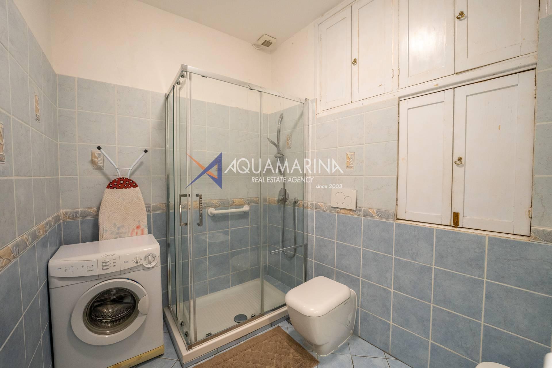 Meerblick und geräumiges Badezimmer mit Dusche.