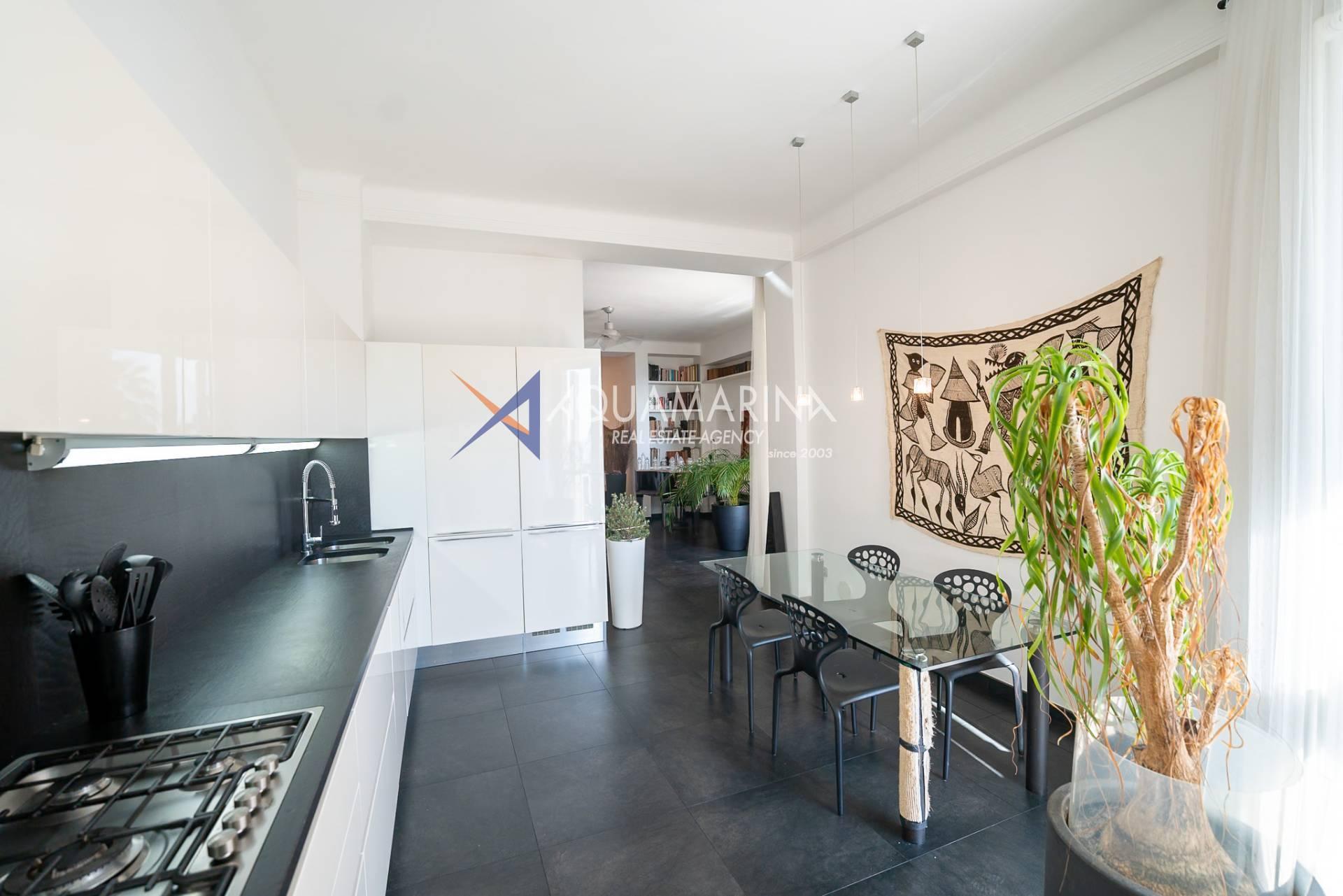 Ein Zuhause mit viel Platz und zeitlosem Charme. Die Wohnung zeichnet sich durch eine harmonische Raumaufteilung und hochwertige Ausstattung aus und öffnet sich zu einer großen Eingangshalle, die zu einem hellen Doppelwohnzimmer führt, das sich perfekt für Momente der Entspannung oder Geselligkeit eignet. Die geräumige und funktionale Wohnküche erfüllt die Bedürfnisse derjenigen, die gerne kochen und das Haus mit Familie und Freunden bewohnen.