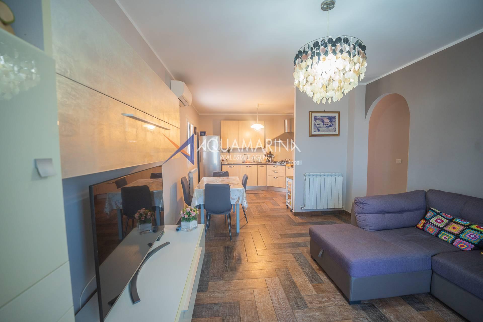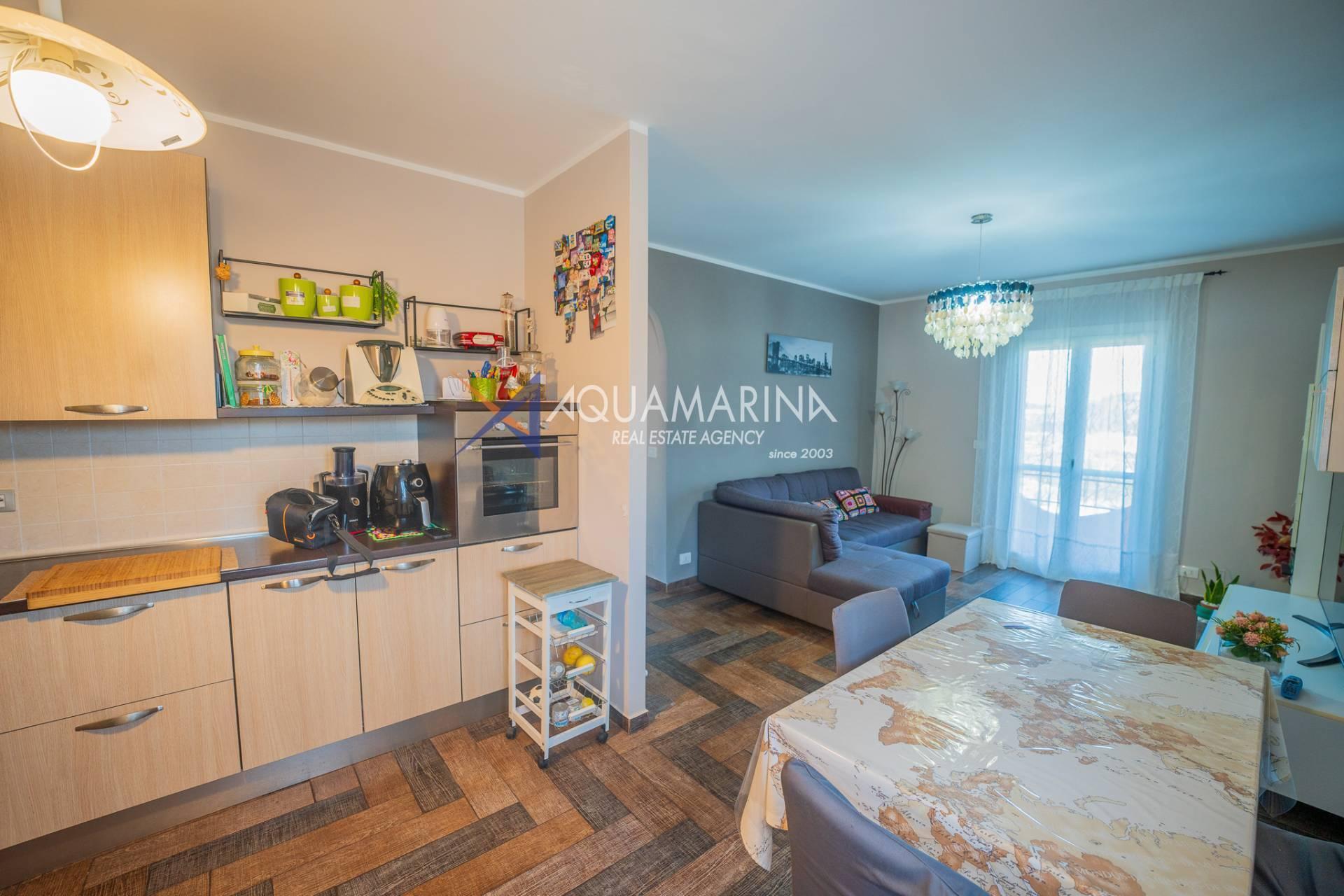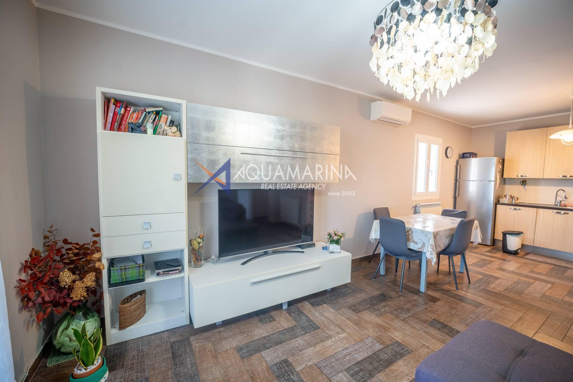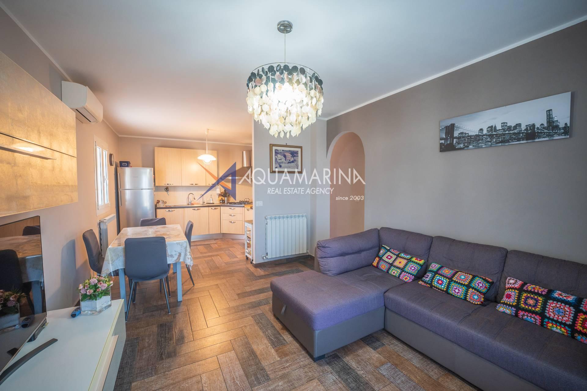 Die Immobilie, die sich im Erdgeschoss befindet, ist in ausgezeichnetem Zustand und besteht aus: einem Wohnzimmer mit offener Küche und Zugang zur Terrasse, zwei großen Schlafzimmern und einem Badezimmer mit Fenster.